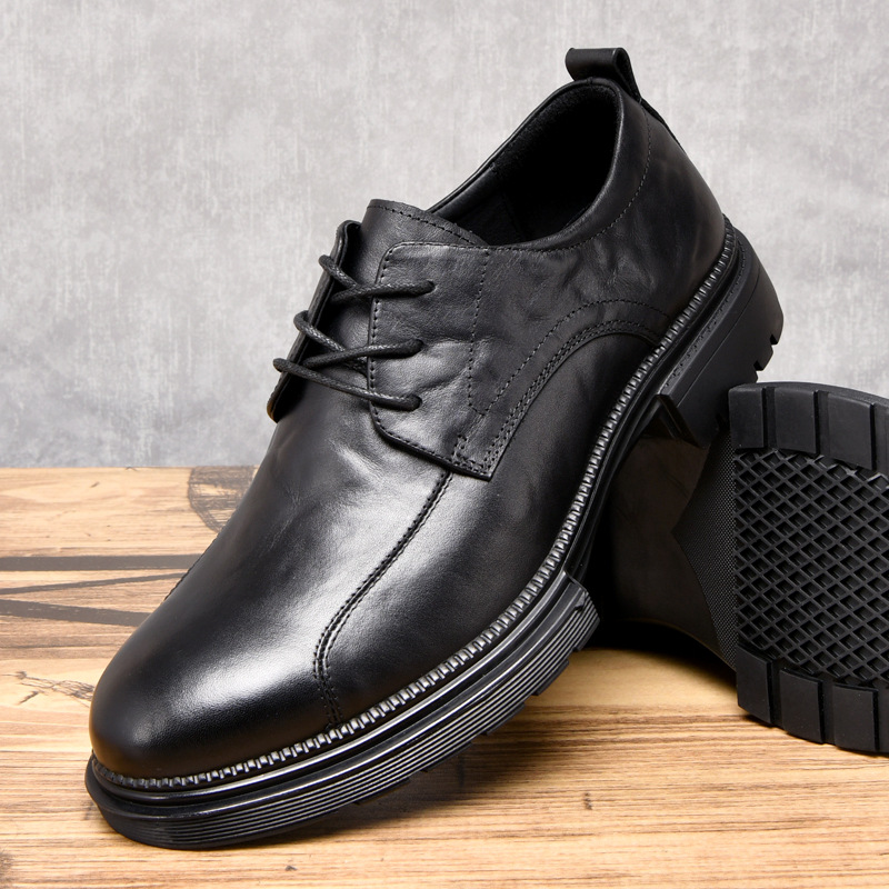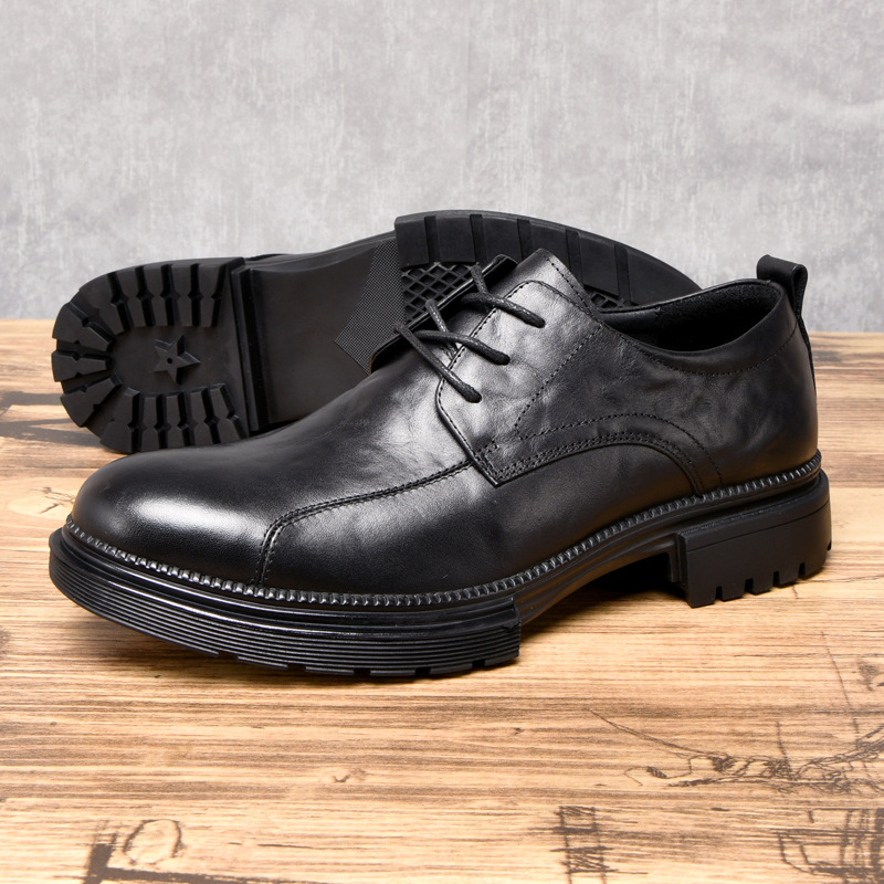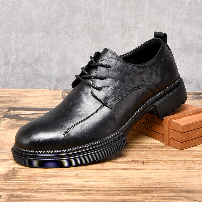 정품 가죽 영국 스타일 비즈니스 원피스 라운드 발가락 트렌디 남성 가죽 신발 두꺼운 단독 레이스 업 라운드 발가락 캐주얼 신발 빈티지 더비 신발스토어 가기