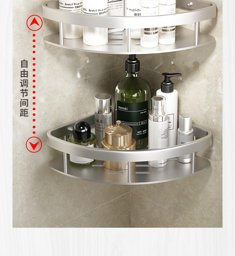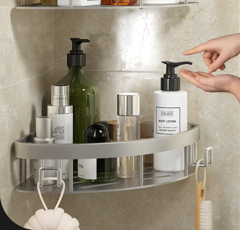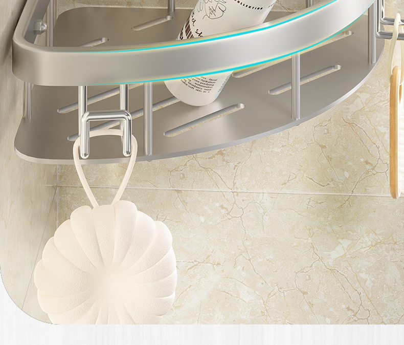 위생 천공 벽에 장착 된 단층 화장실 후크 화장실 무료 욕실 코너 저장 삼각형 벽 알루미늄 보관 랙스토어 가기