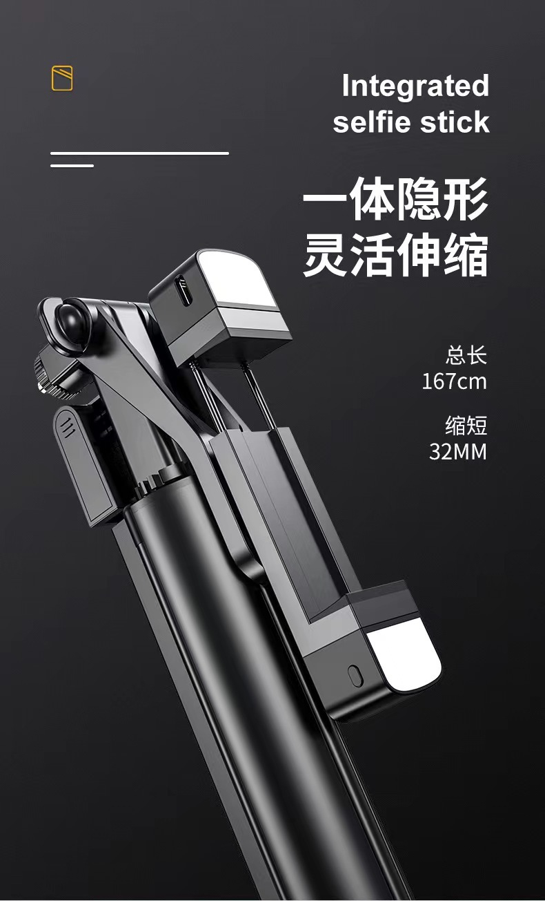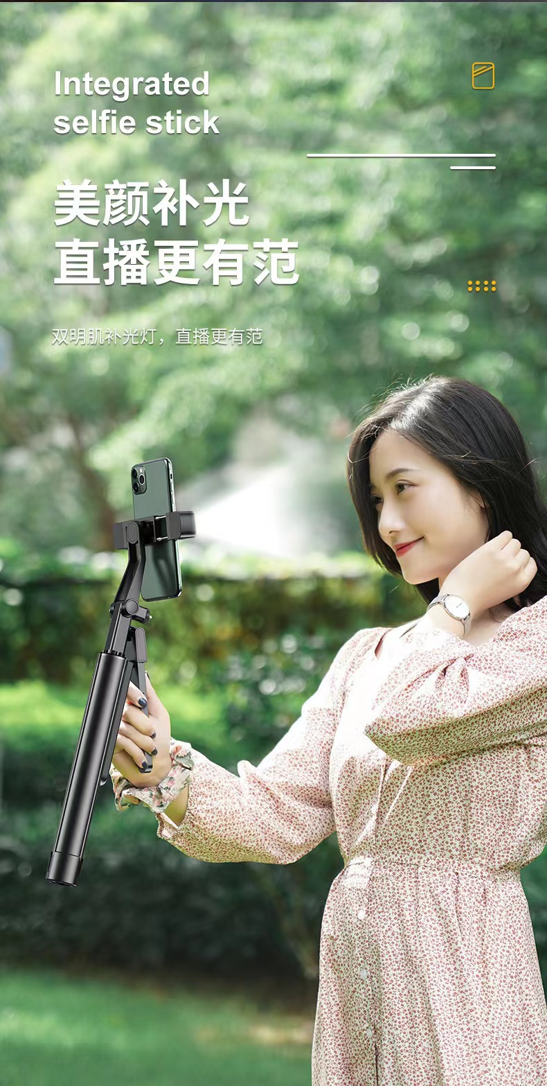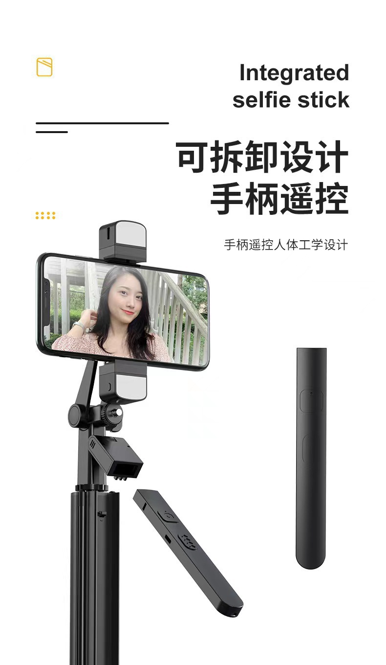 1.7 m 휴대 전화 블루투스 셀카 스틱 블루투스 원격 제어 채우기 빛 통합 다기능 삼각대 셀카 스틱