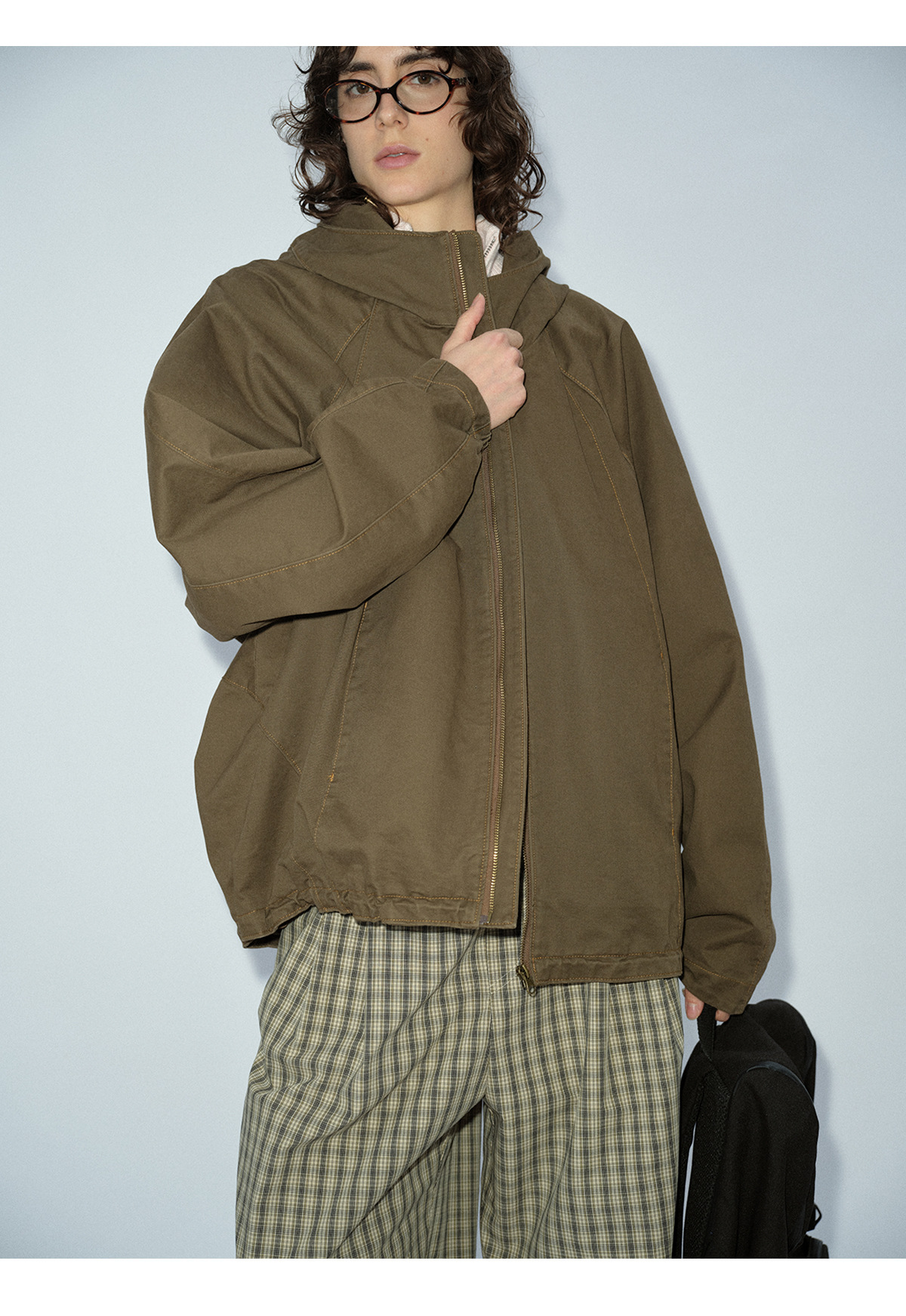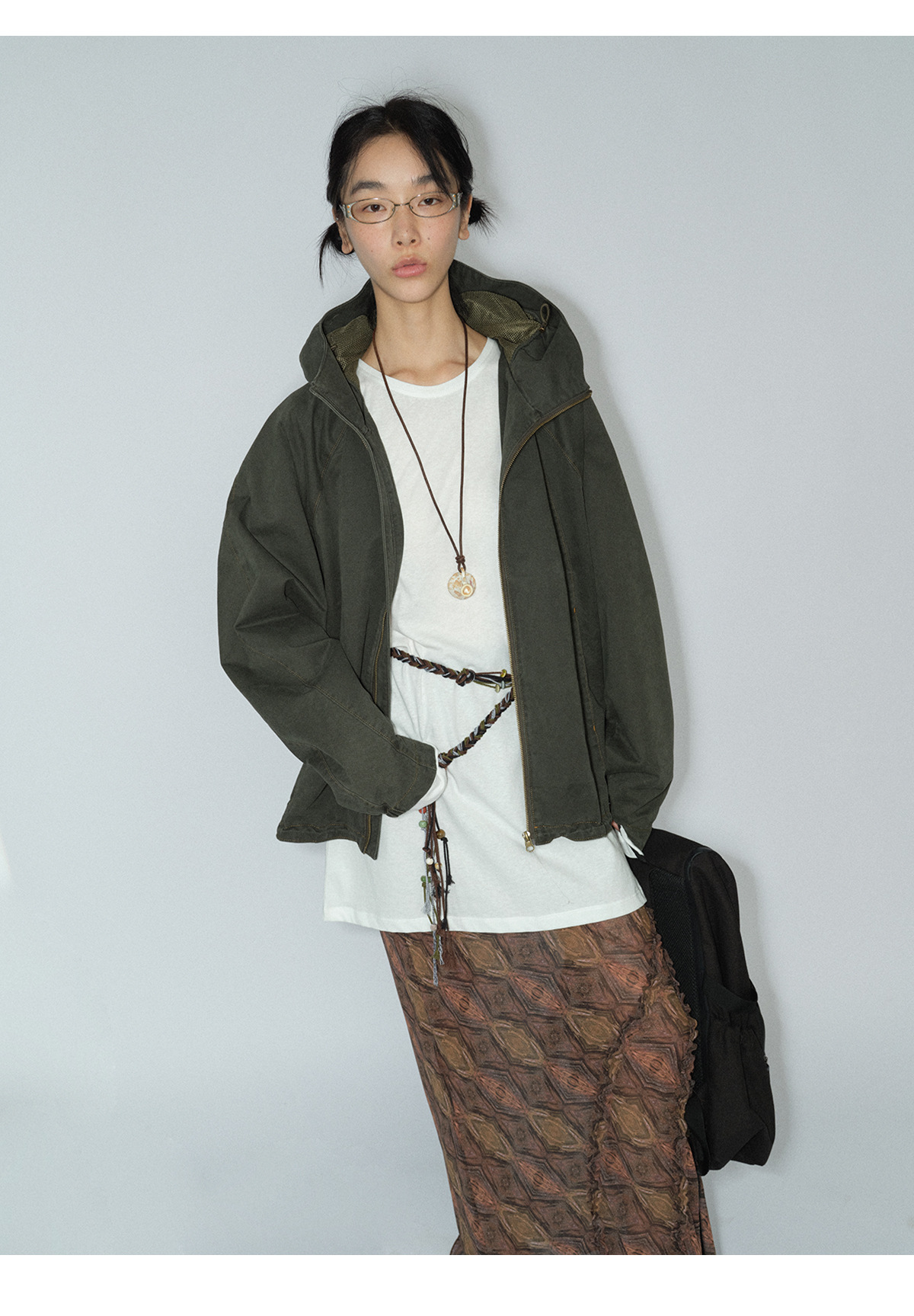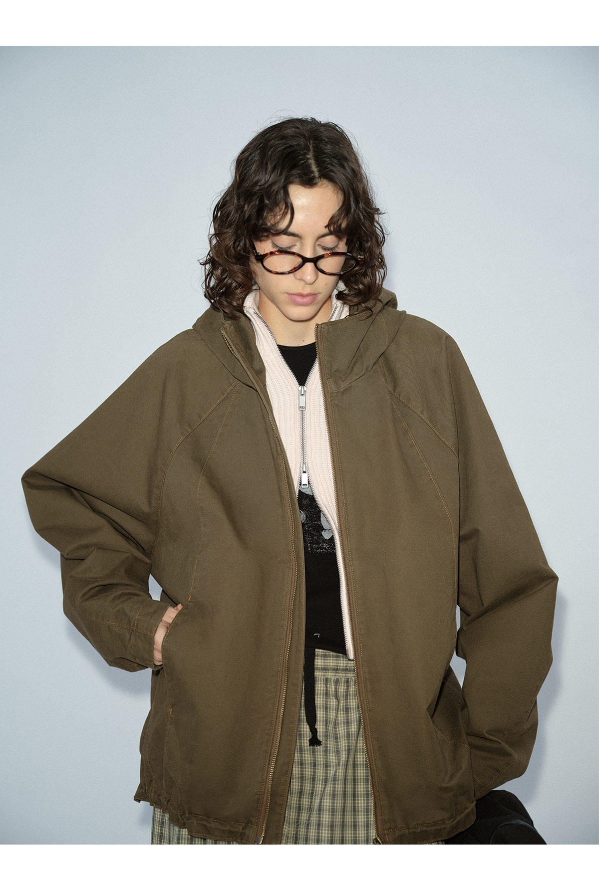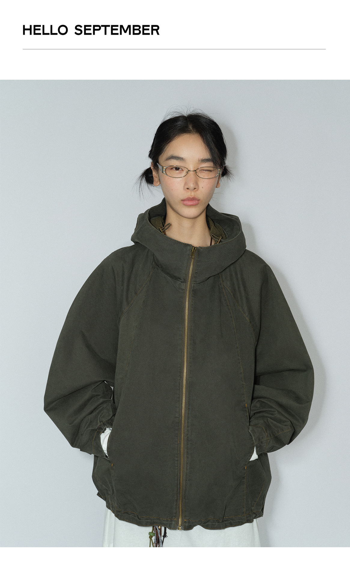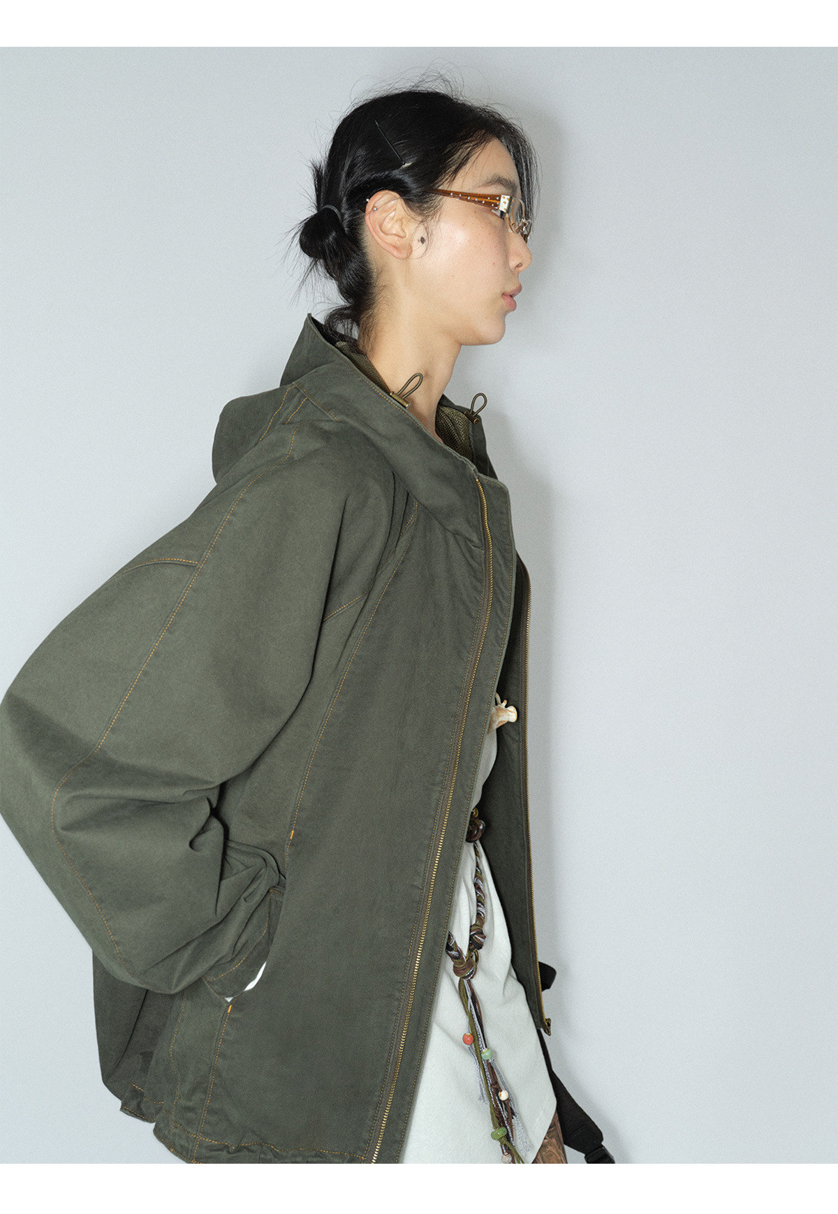 [시티] 새로운 레트로 워시 코튼 루즈 후드 메탈 버클 여성용 긴팔 재킷 V8030