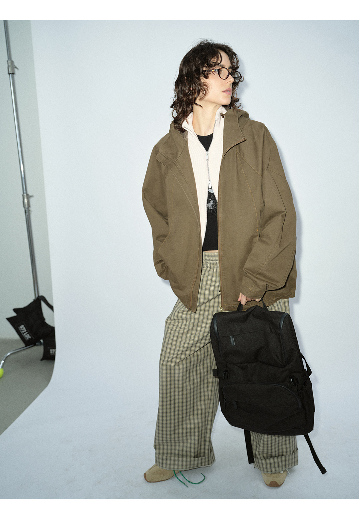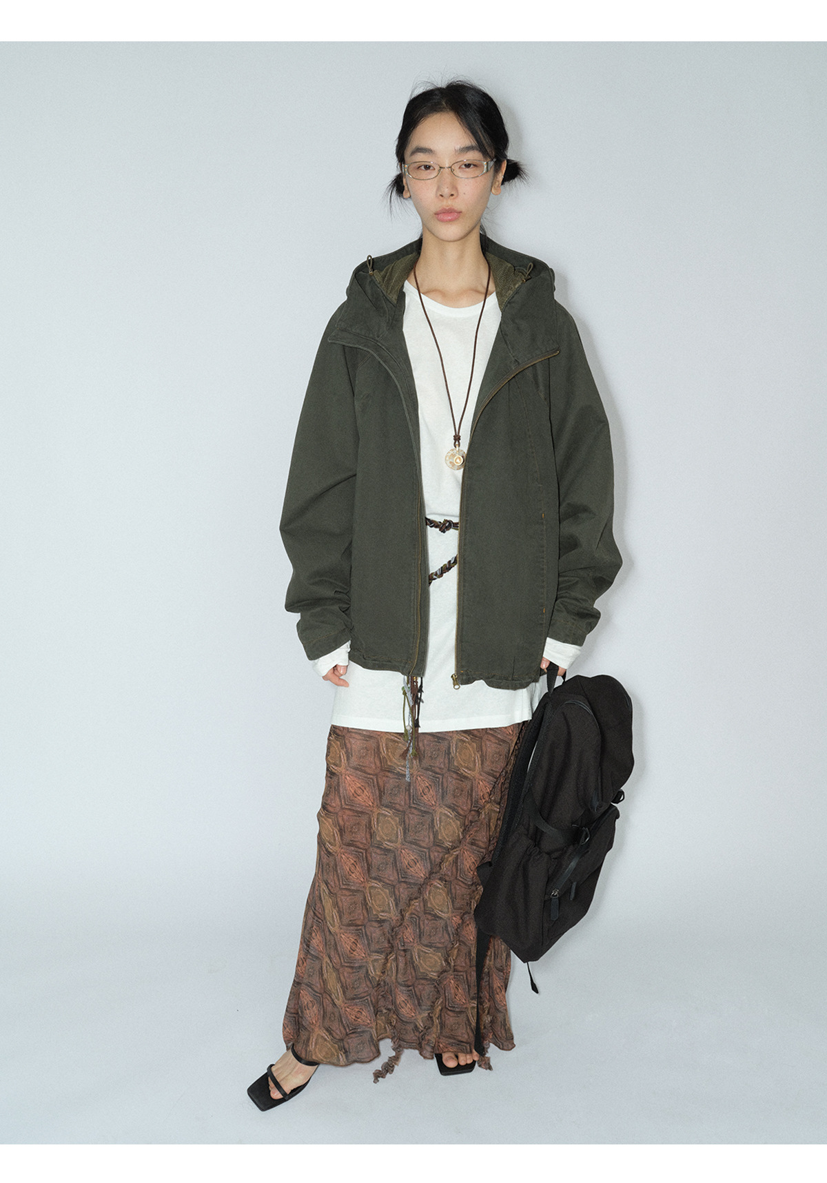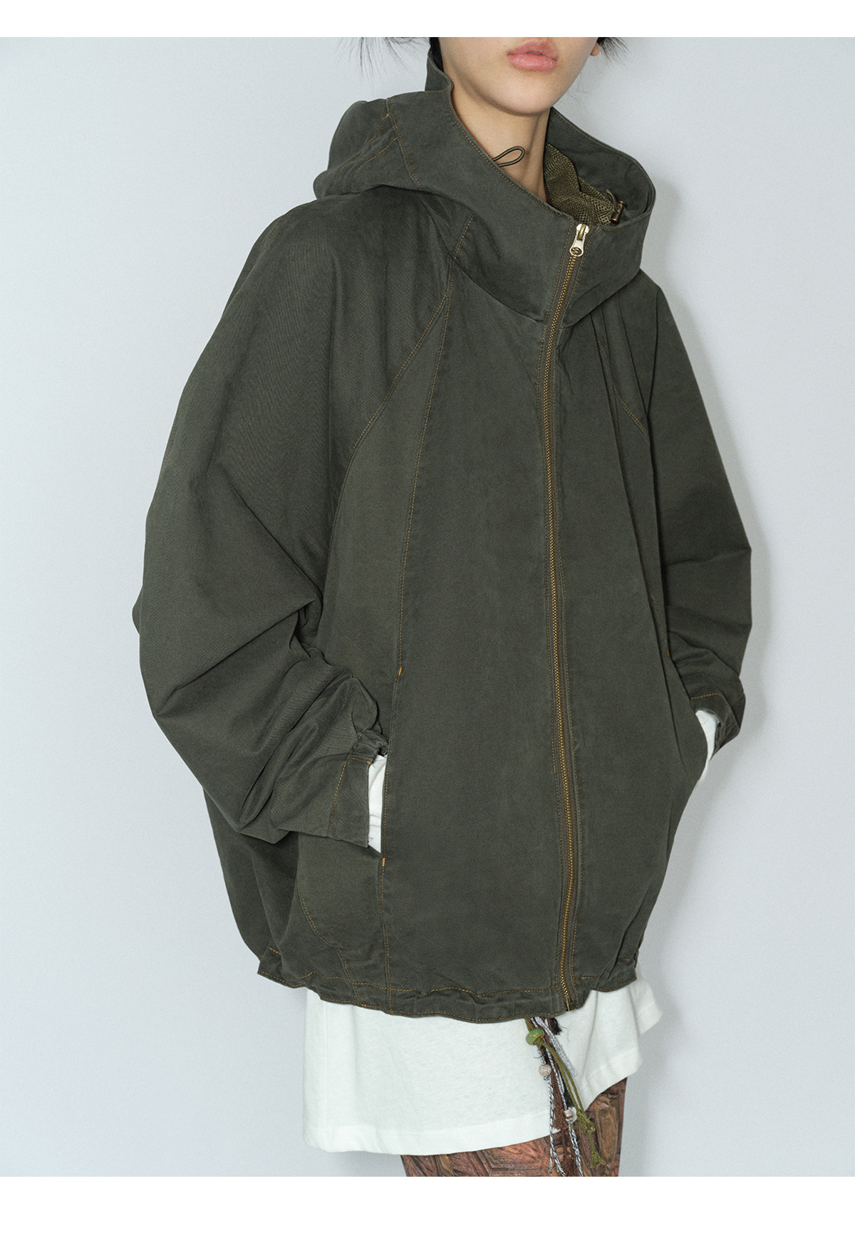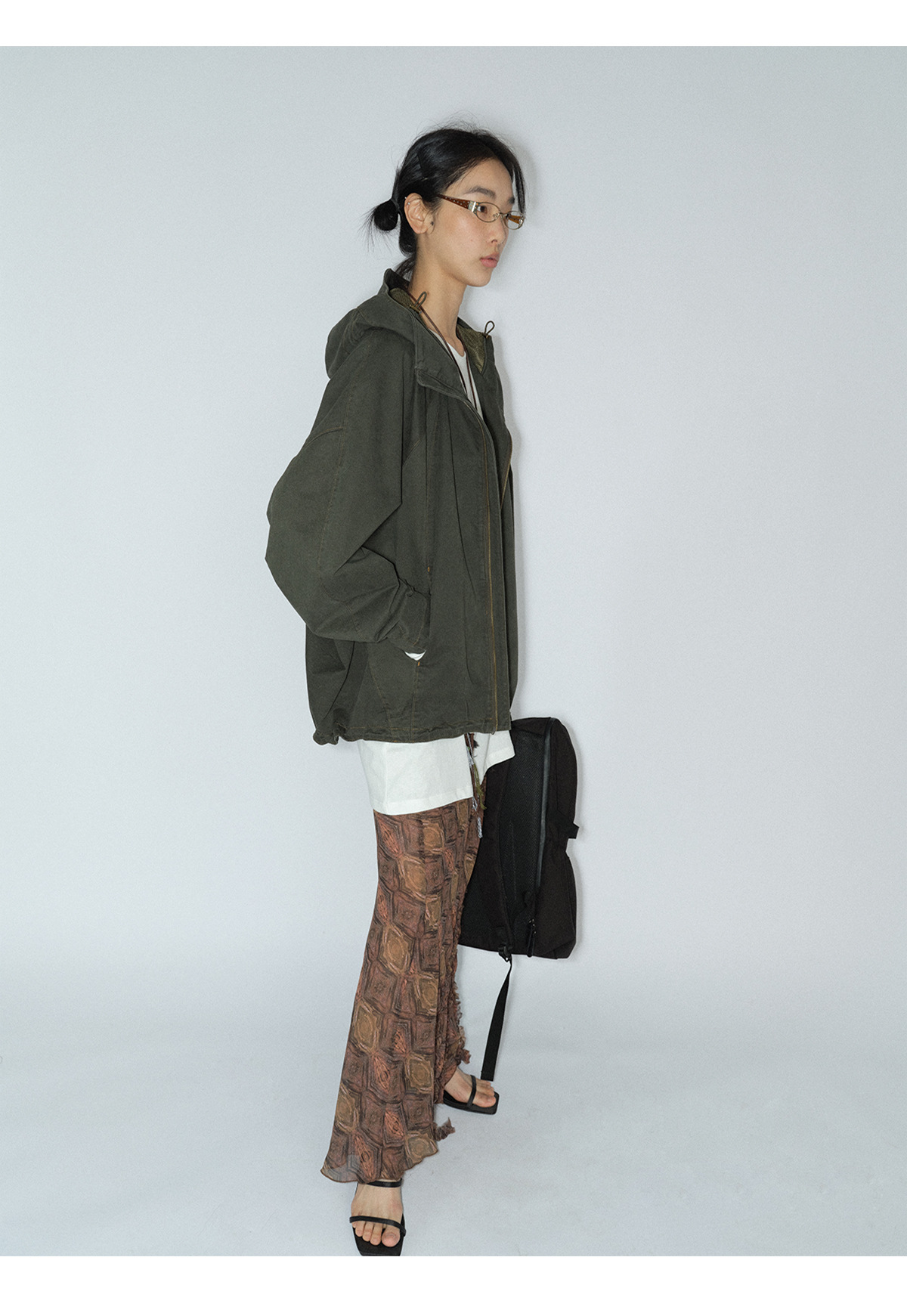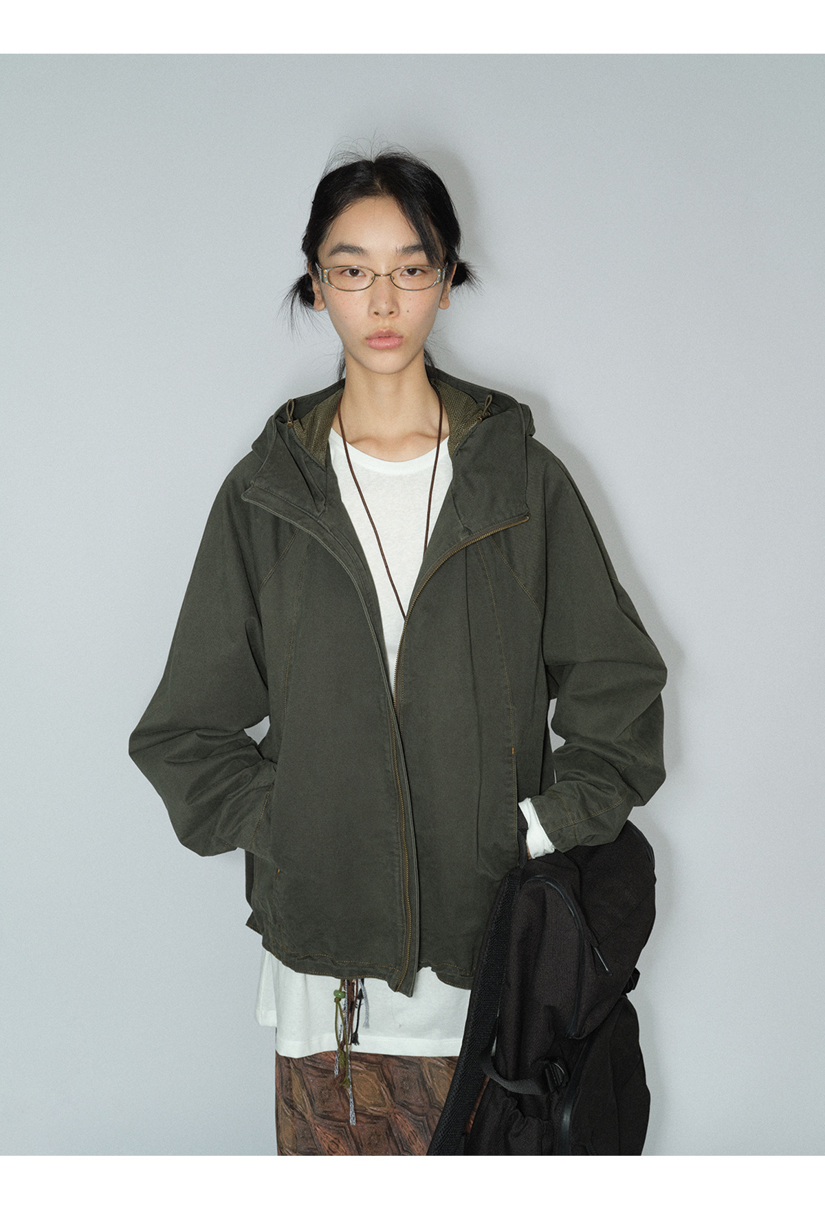[시티] 새로운 레트로 워시 코튼 루즈 후드 메탈 버클 여성용 긴팔 재킷 V8030