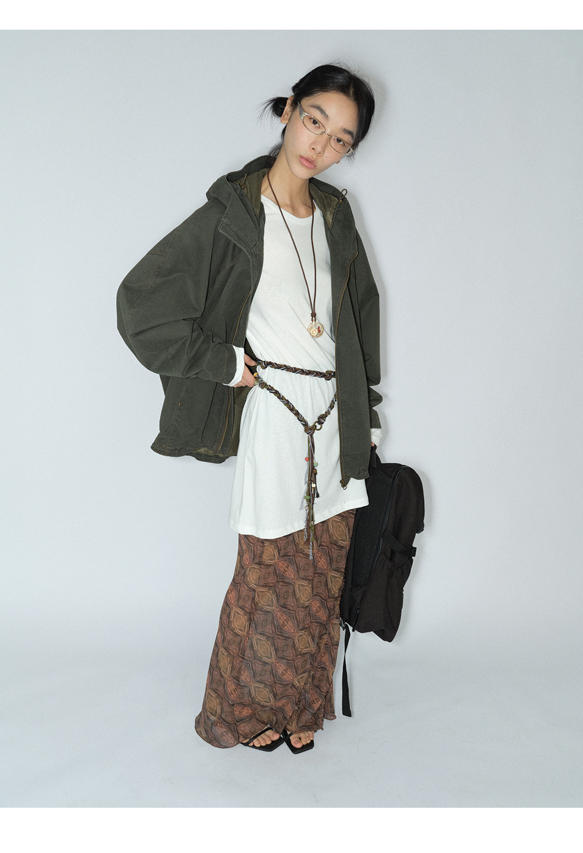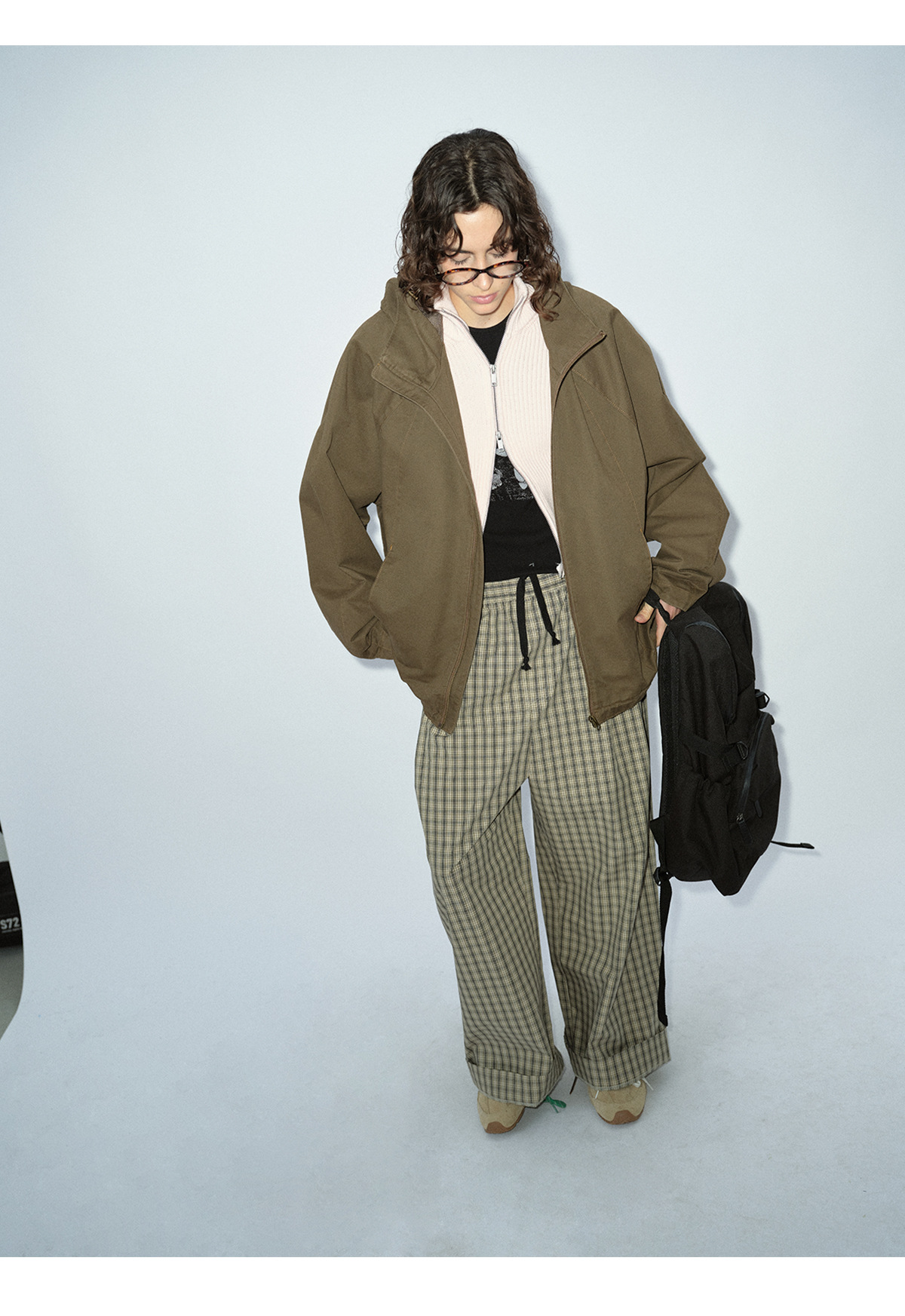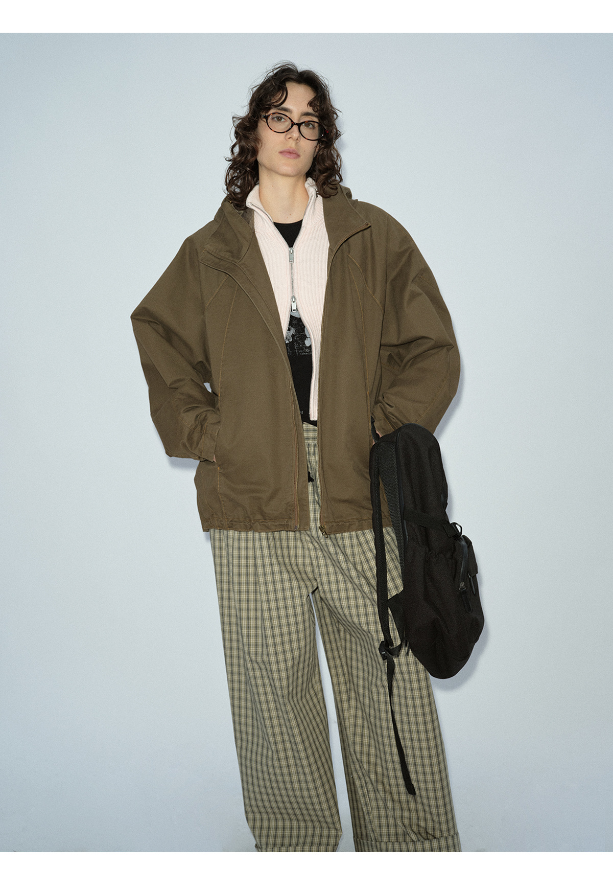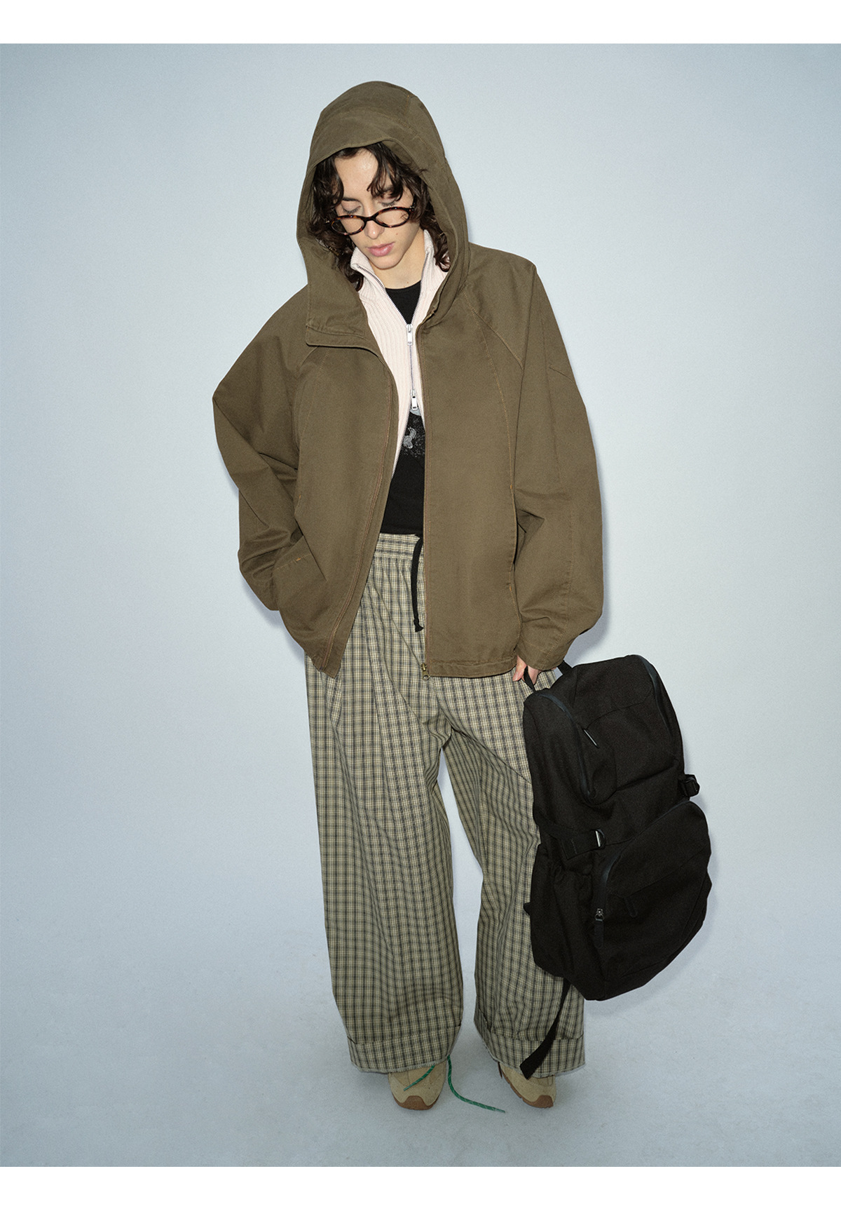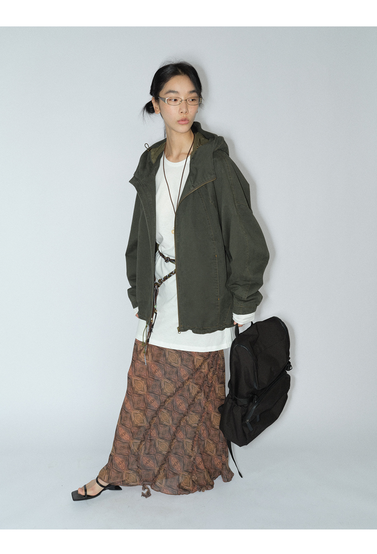 [시티] 새로운 레트로 워시 코튼 루즈 후드 메탈 버클 여성용 긴팔 재킷 V8030