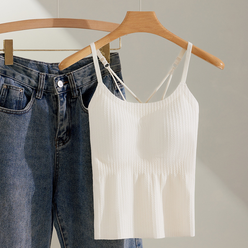 단색 아름다운 뒷면 속옷 여성용 슬림 핏 눈부심 방지 카미솔 조끼, 가슴 패드 트레이스리스 브래지어 원피스 베이스 탑스토어 가기