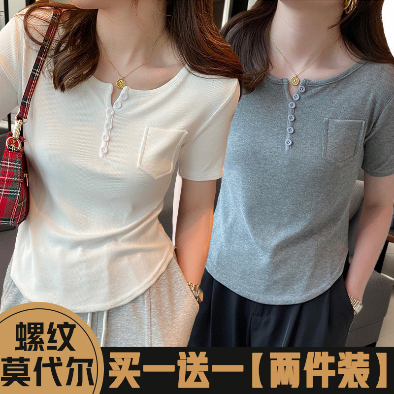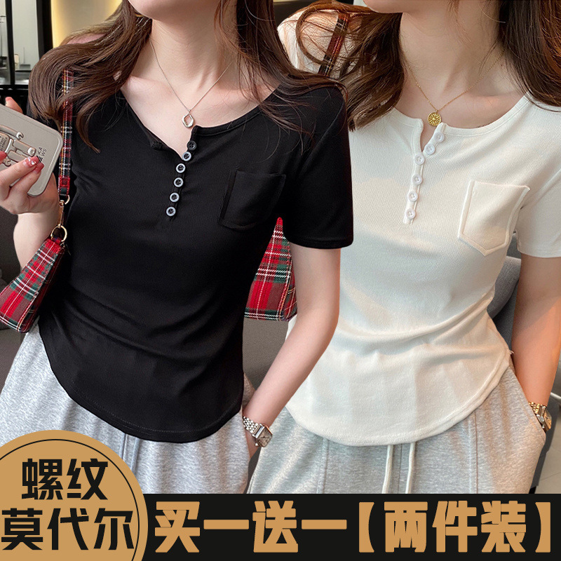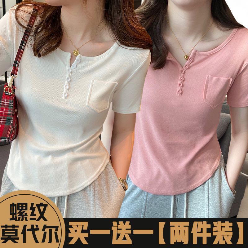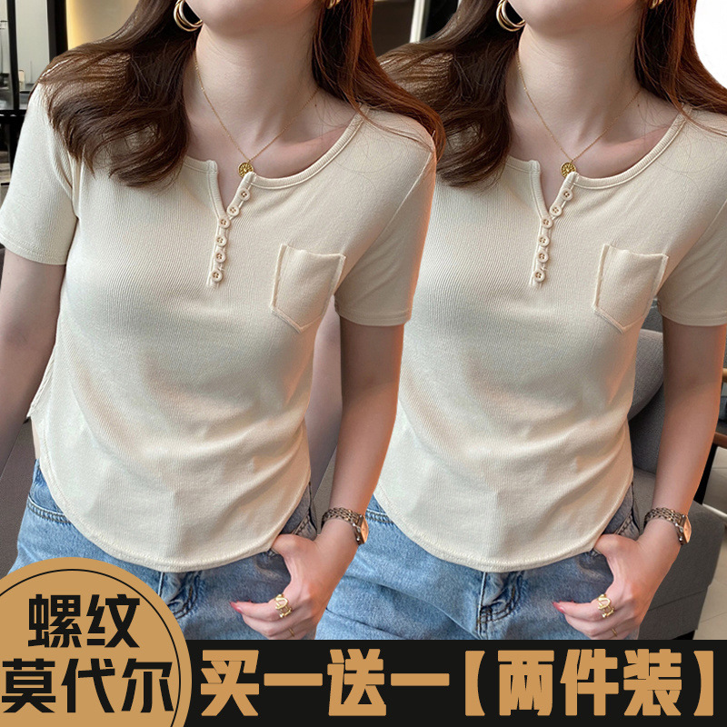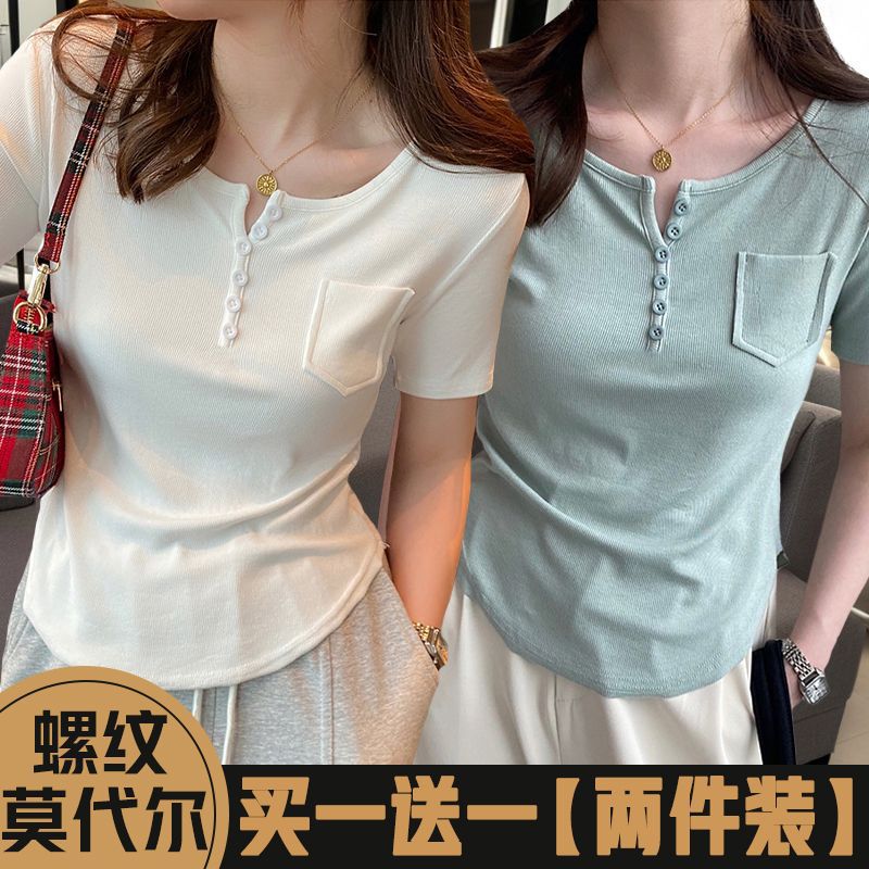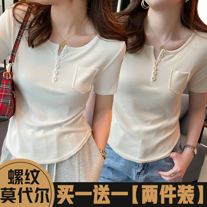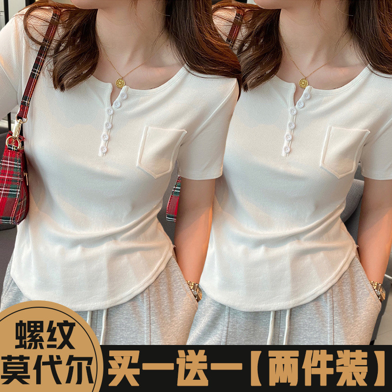 싱글/투피스 모달 반소매 티셔츠 새로운 스타일 어깨 실 슬림 핏 슬림 화이트 반팔 탑 여름 여성 패션스토어 가기