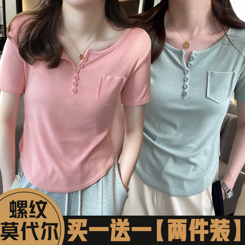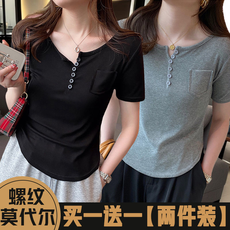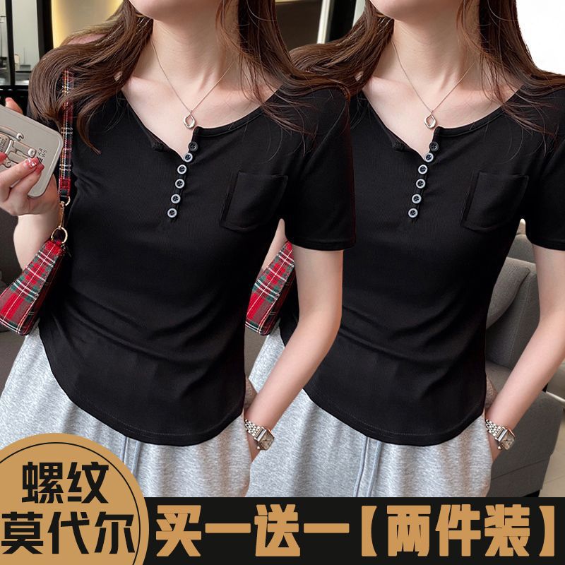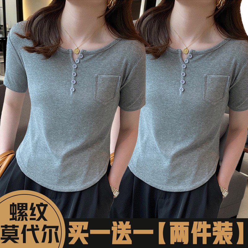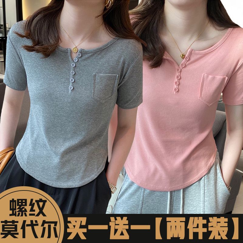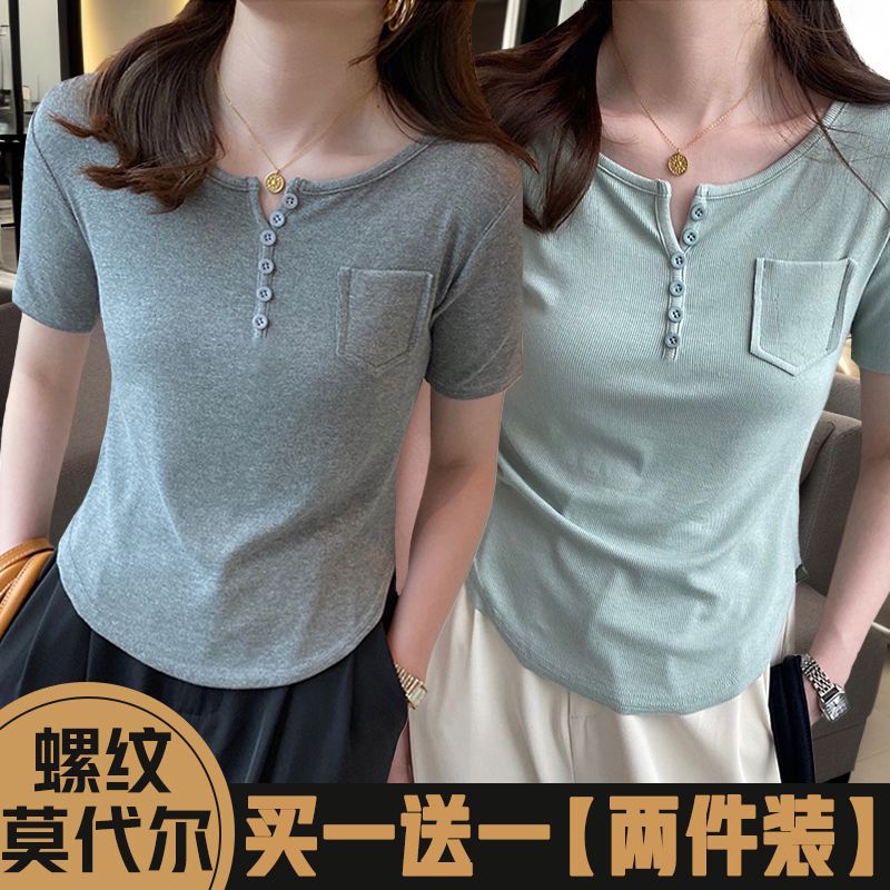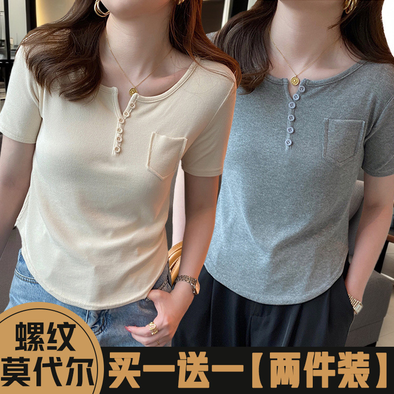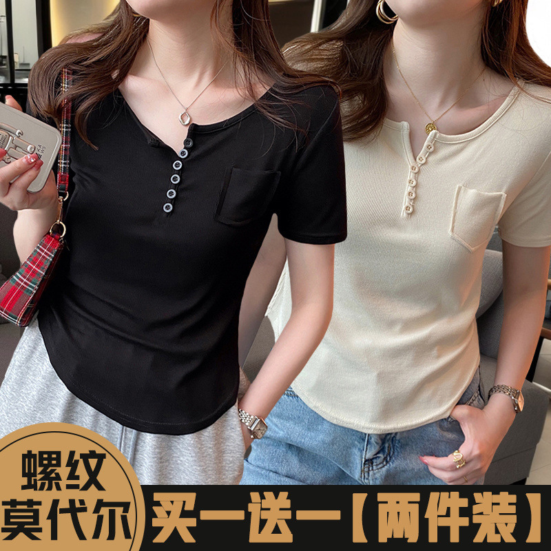 싱글/투피스 모달 반소매 티셔츠 새로운 스타일 어깨 실 슬림 핏 슬림 화이트 반팔 탑 여름 여성 패션스토어 가기