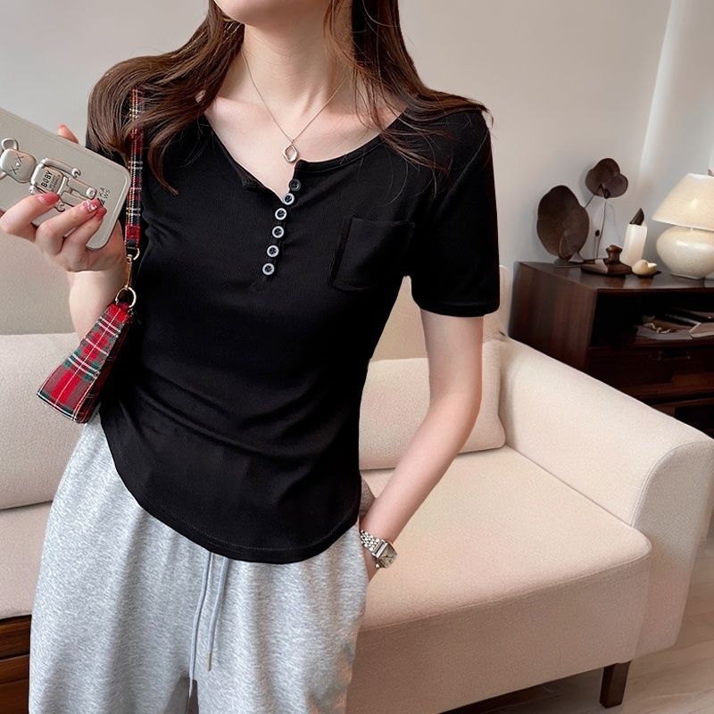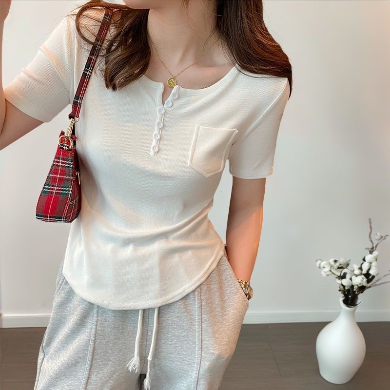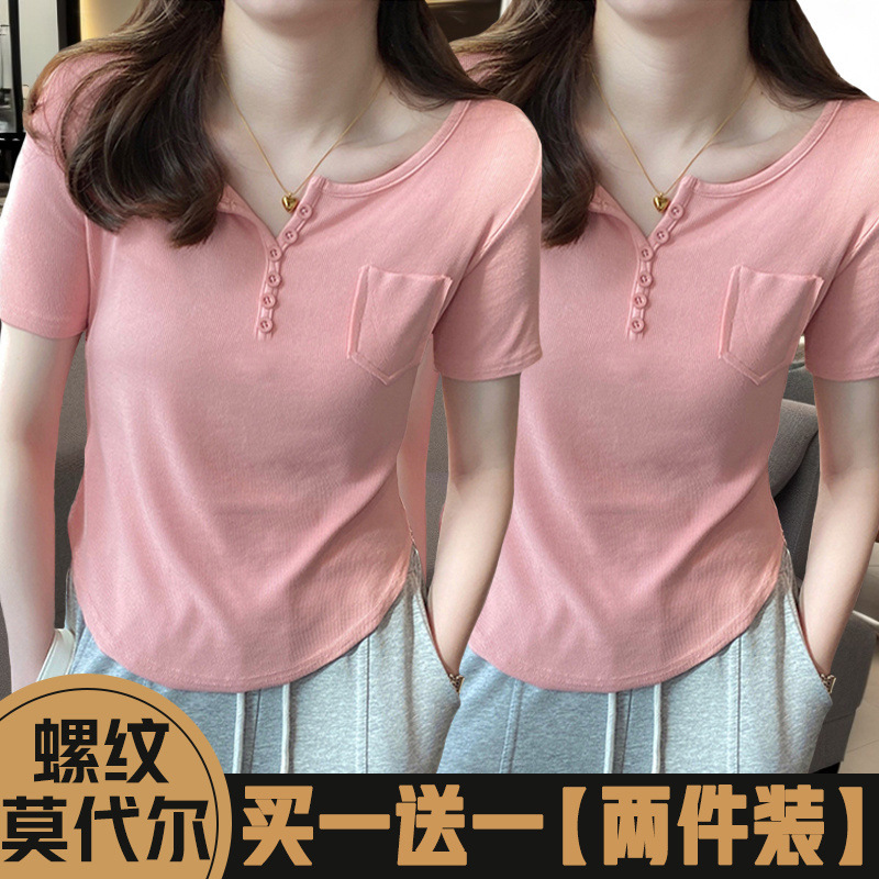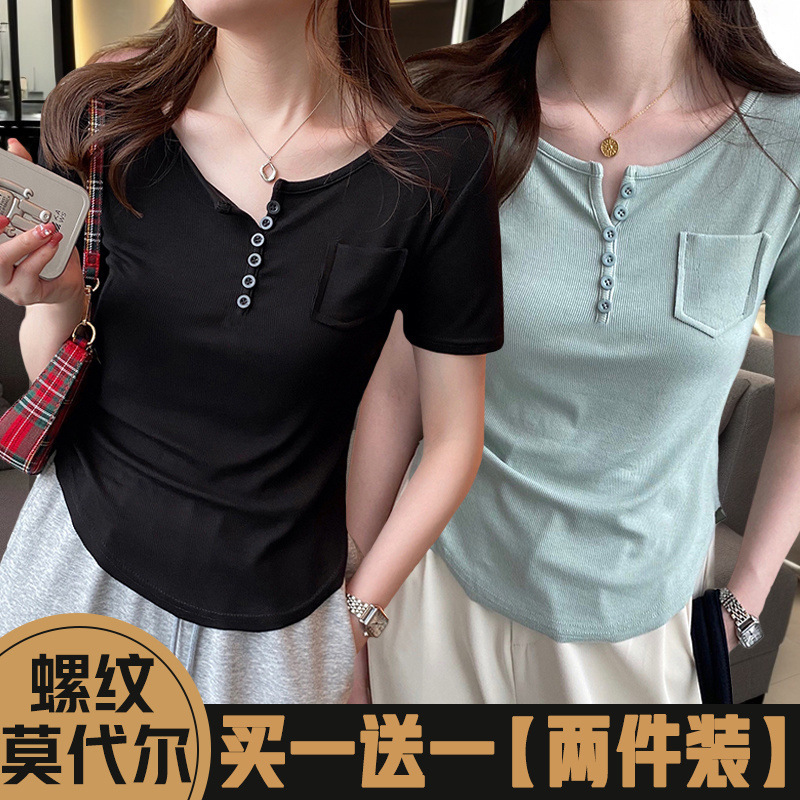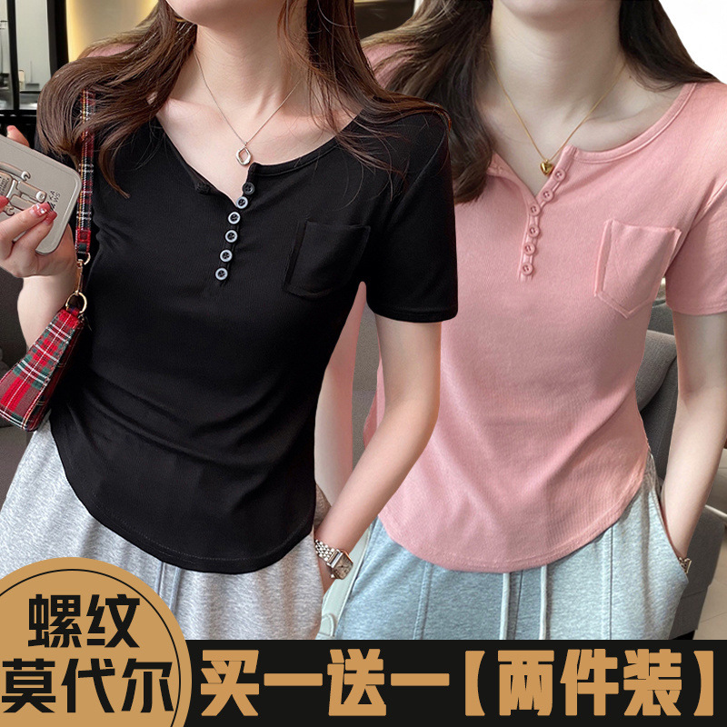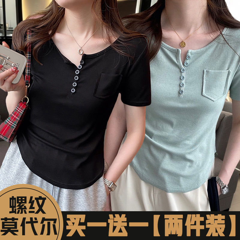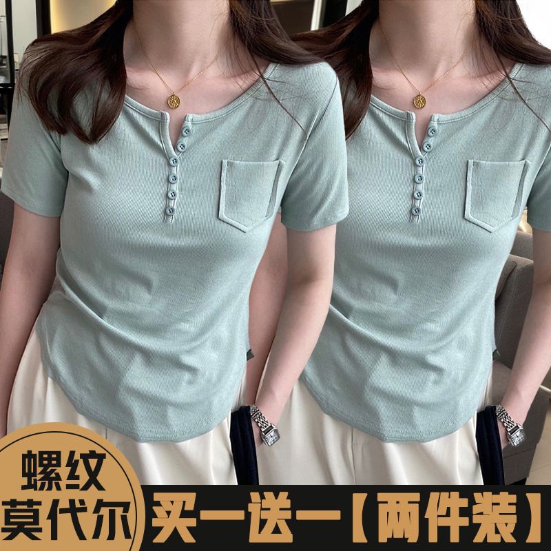 싱글/투피스 모달 반소매 티셔츠 새로운 스타일 어깨 실 슬림 핏 슬림 화이트 반팔 탑 여름 여성 패션스토어 가기