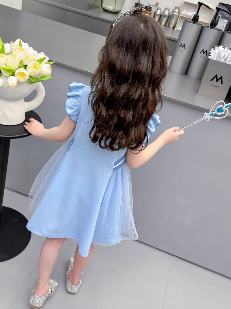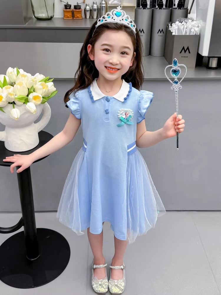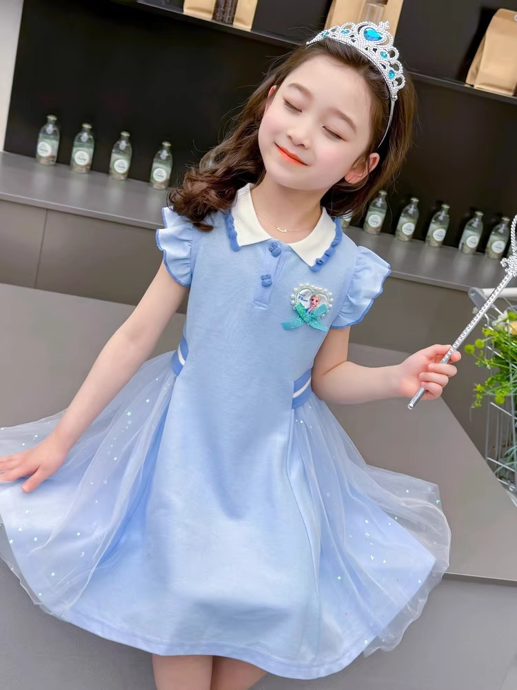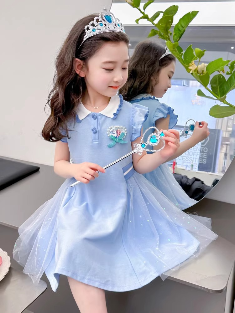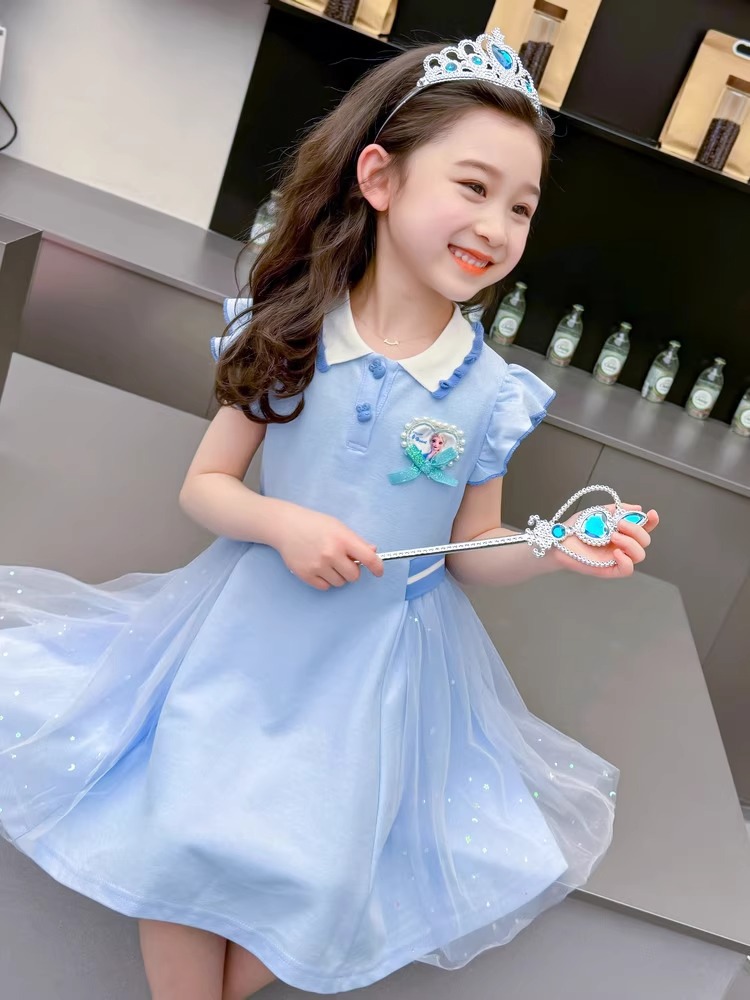 여자 엘사 공주 원피스 여름 2024 새로운 어린이 여름 원피스 서양식 원피스 아기 여름 원피스 엘사