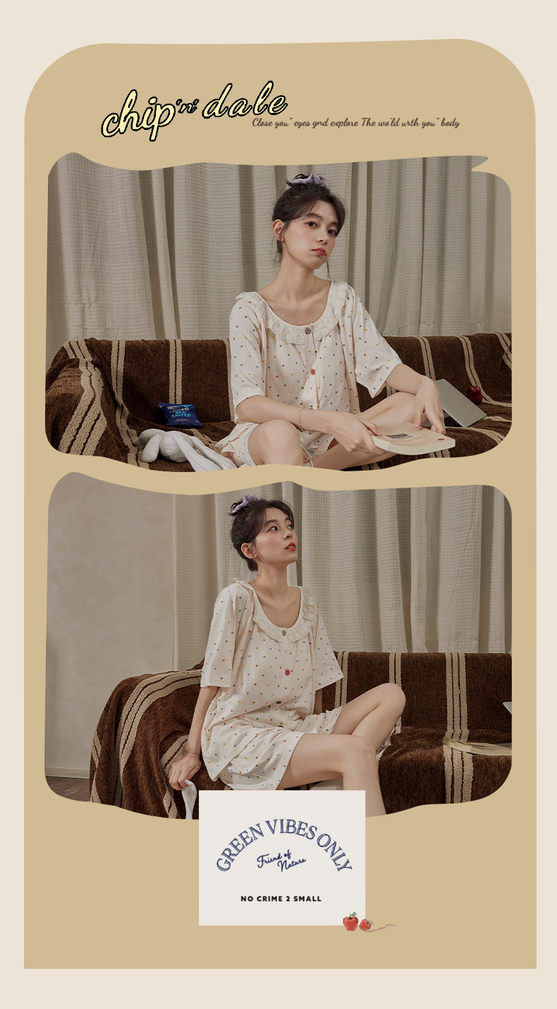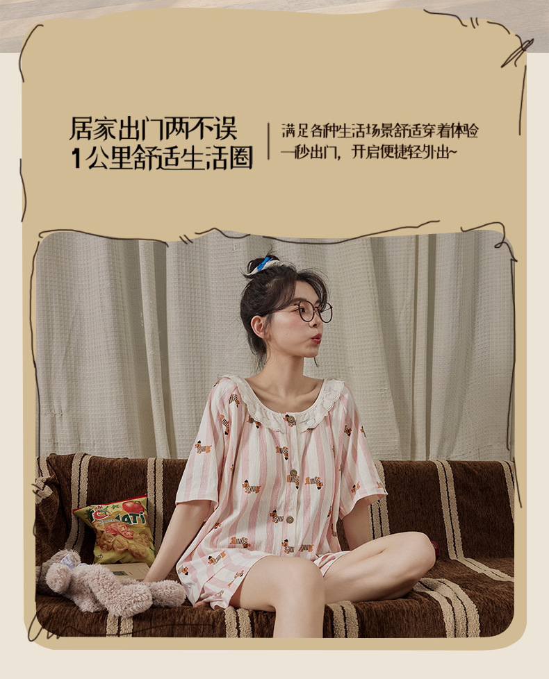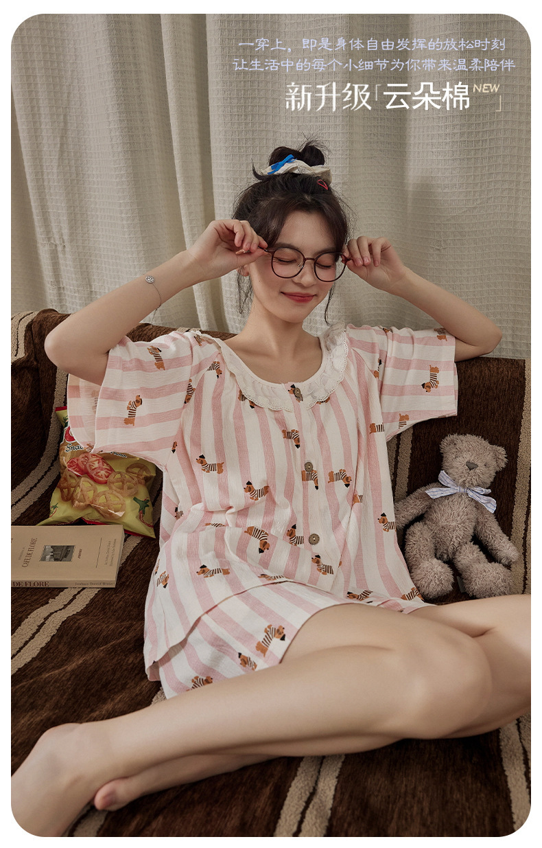 가슴 패드와 샤넬 스타일 잠옷 여성 여름 얇은 카디건 짧은 소매 반바지 인터넷 인기 달콤한 귀여운 느슨한 홈 옷스토어 가기