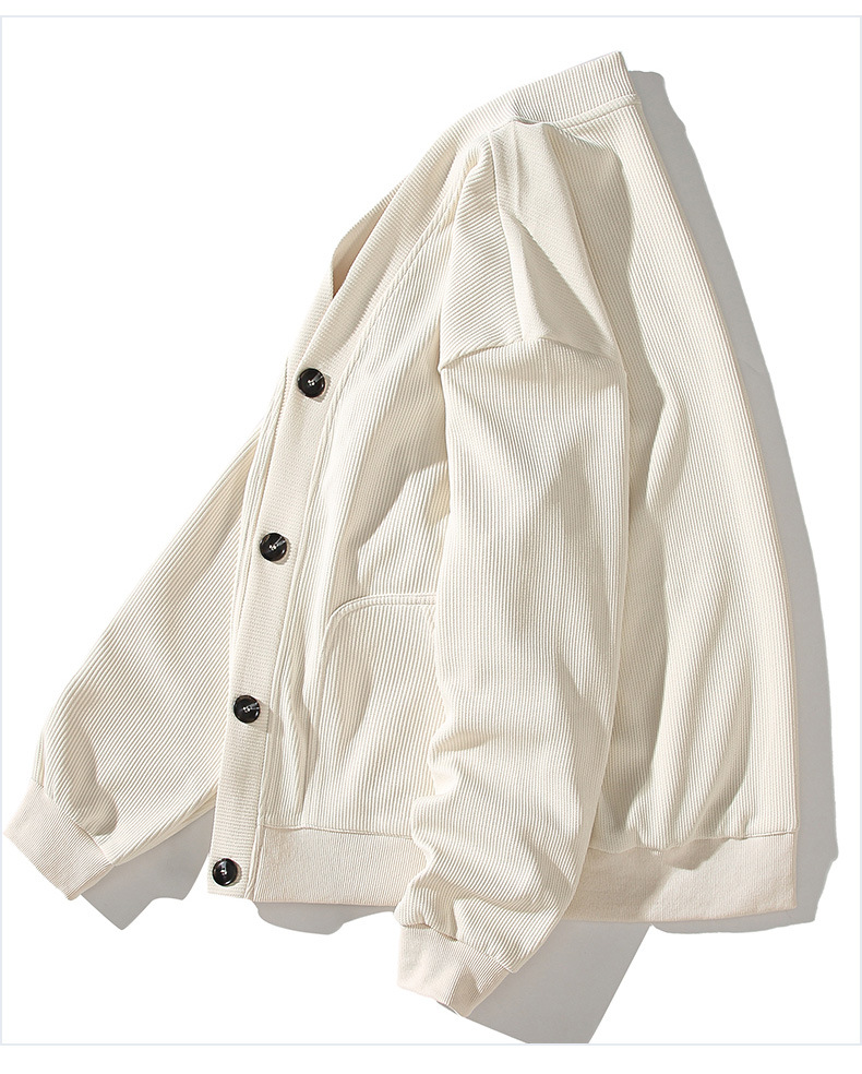봄과 가을 V 넥 카디건 니트 스웨터 남자의 새로운 Ins 패셔너블 탑 루즈 올 매치 게으른 자켓 남성복