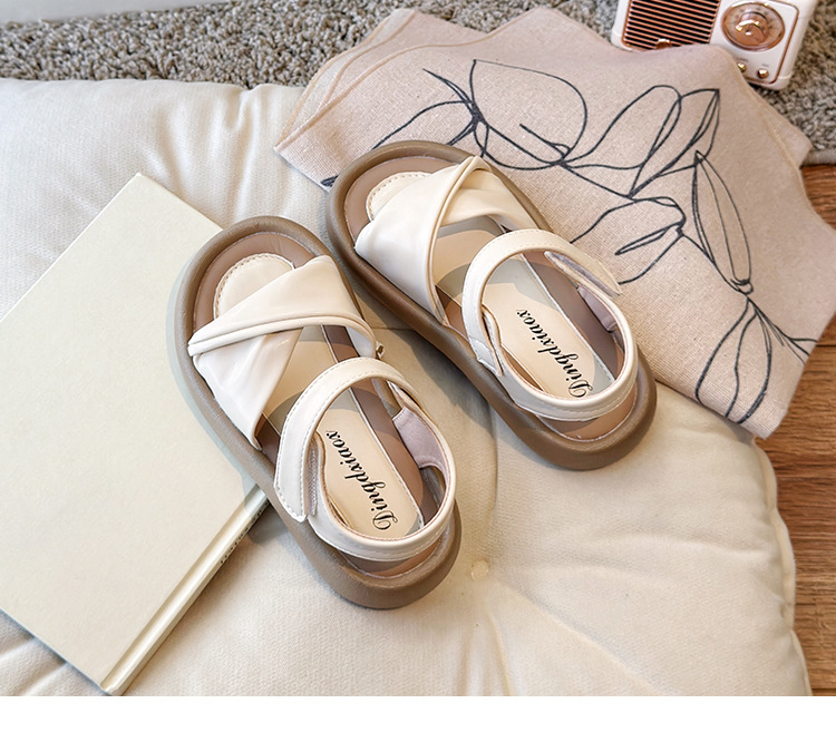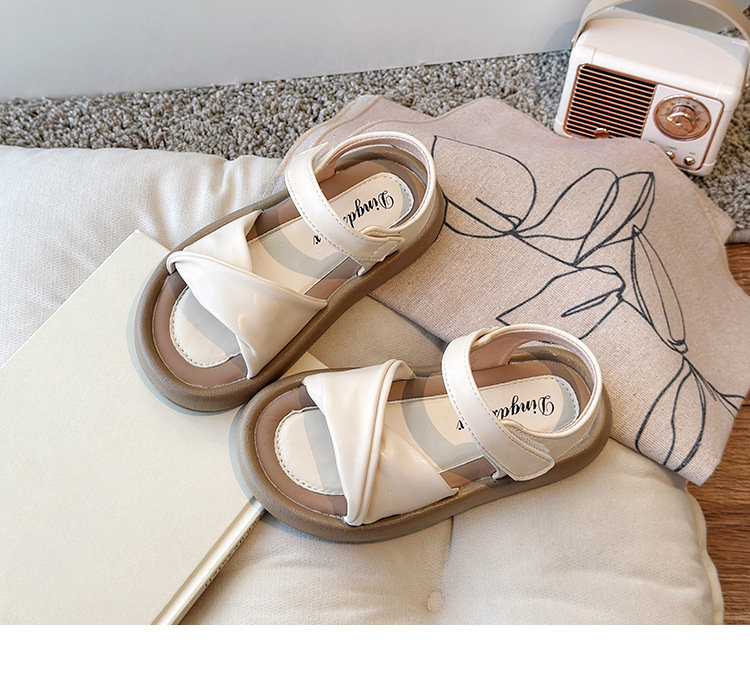 어린이 신발 소녀 샌들 2025 여름 한국 스타일 간단한 스타일 미끄럼 방지 어린이 신발 외부 착용 비치 가죽 신발 여자를위한스토어 가기