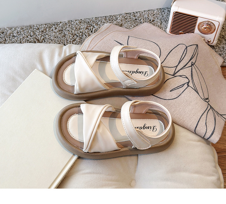 어린이 신발 소녀 샌들 2025 여름 한국 스타일 간단한 스타일 미끄럼 방지 어린이 신발 외부 착용 비치 가죽 신발 여자를위한