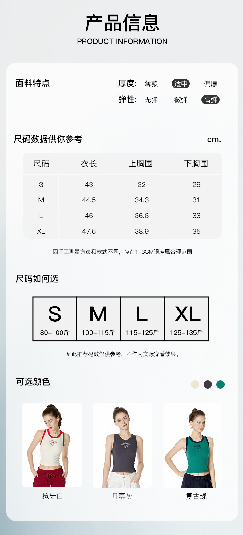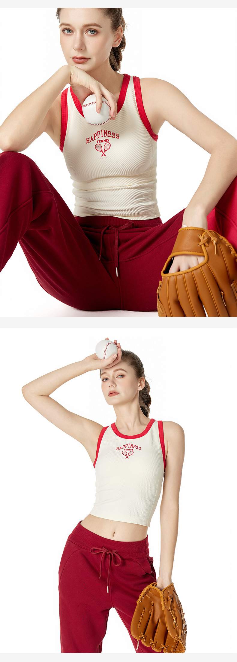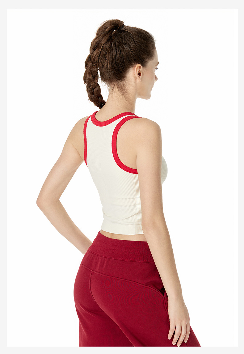 2025 새로운 원피스 짠 중간 강도 높은 탄성 대비 컬러 실 피부 친화적 인 통기성 스포츠 조끼 복고풍 스타일