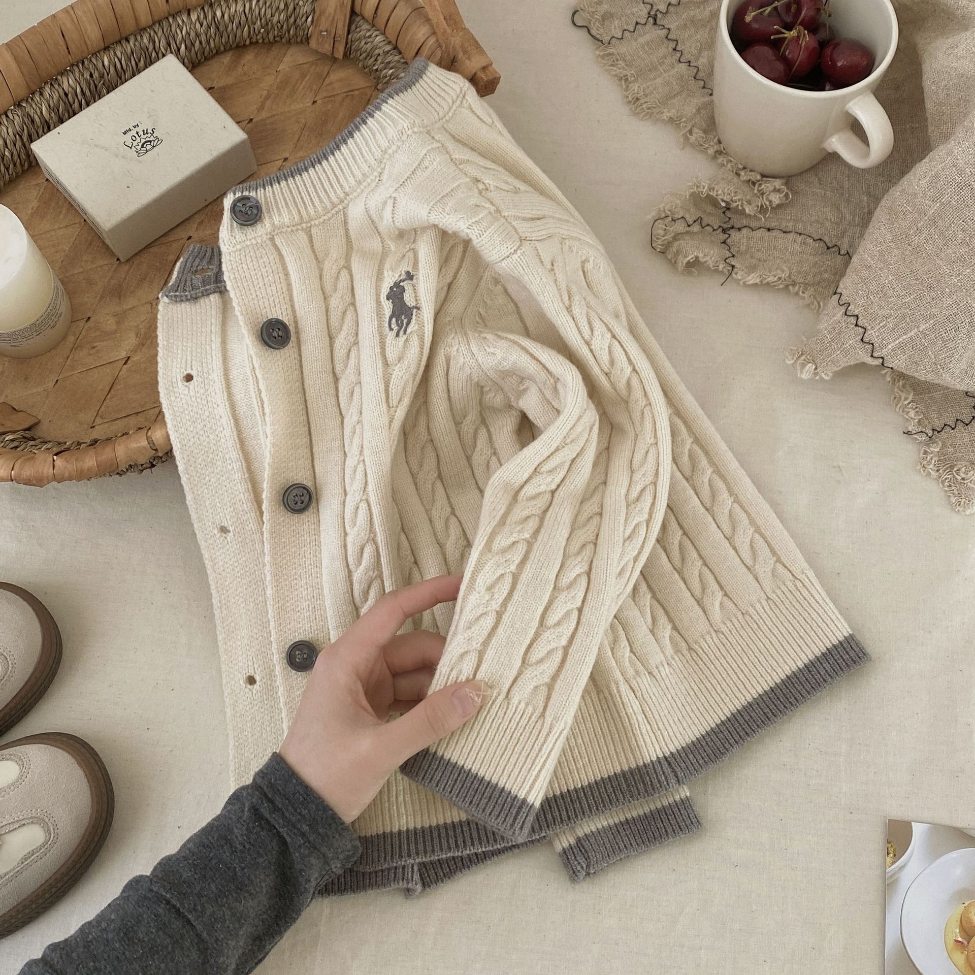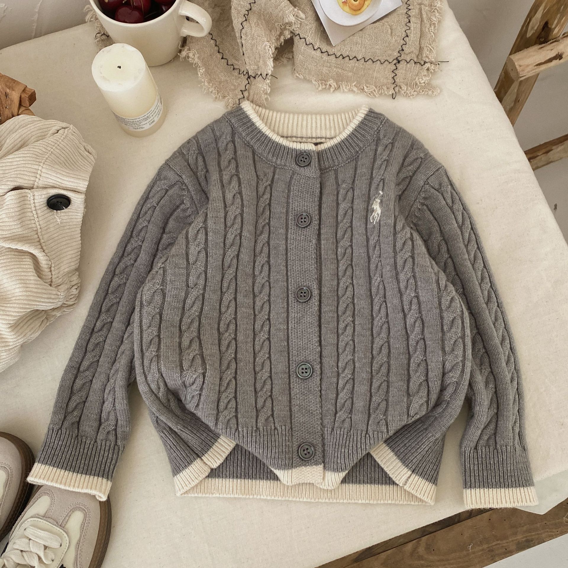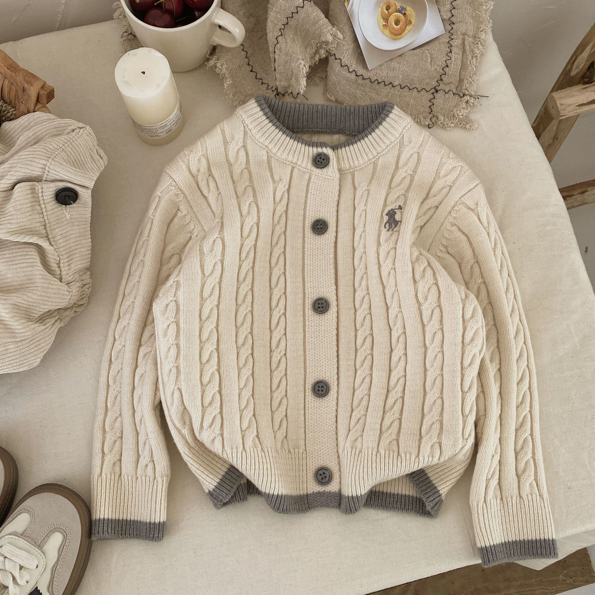 어린이 스웨터 2025 봄 한국 새 소년 소녀 컬러 대비 자수 스웨터 베이비 캐주얼 니트 카디건