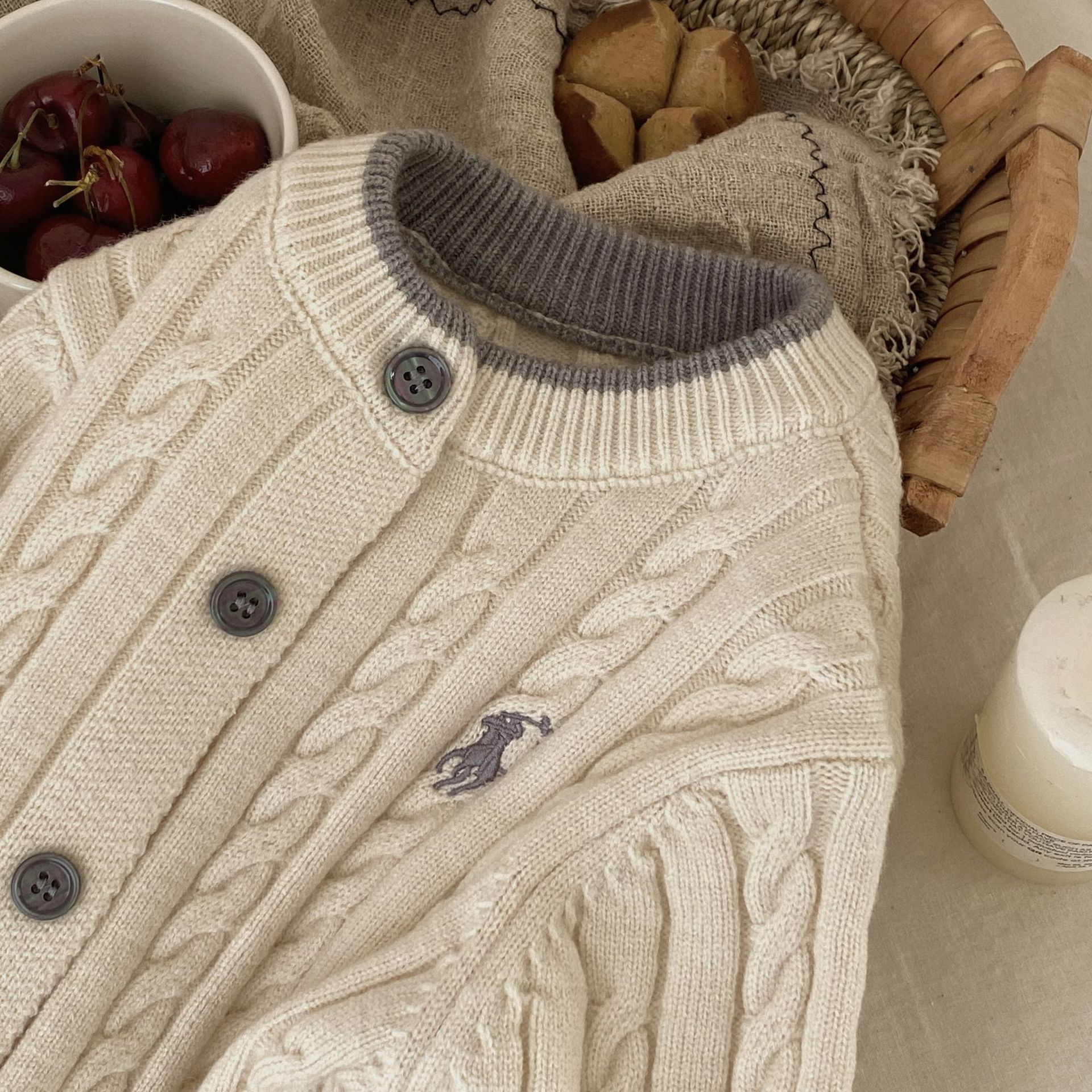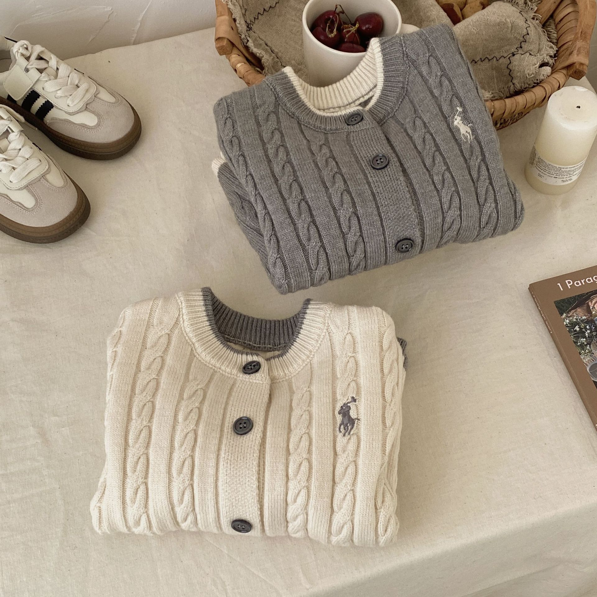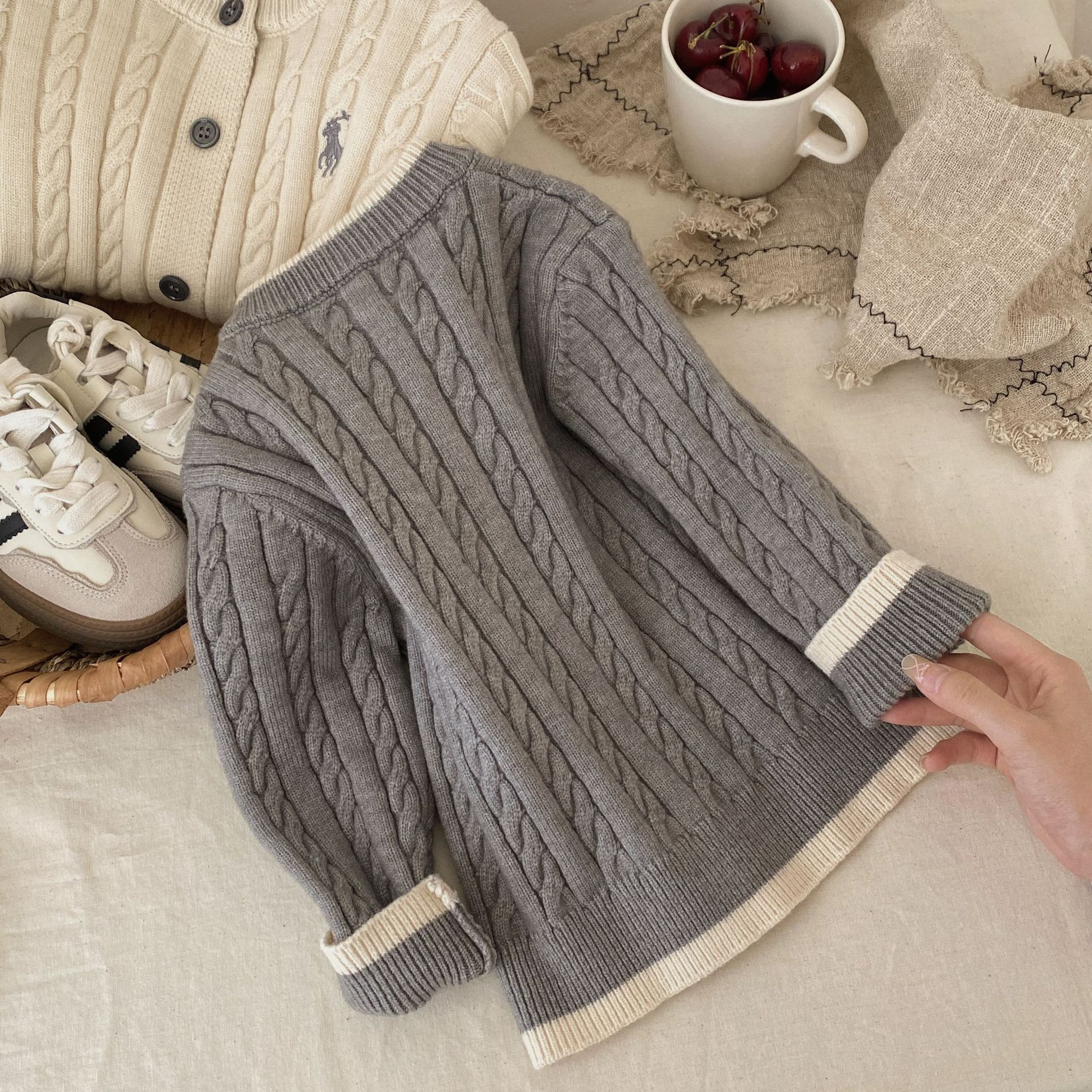 어린이 스웨터 2025 봄 한국 새 소년 소녀 컬러 대비 자수 스웨터 베이비 캐주얼 니트 카디건