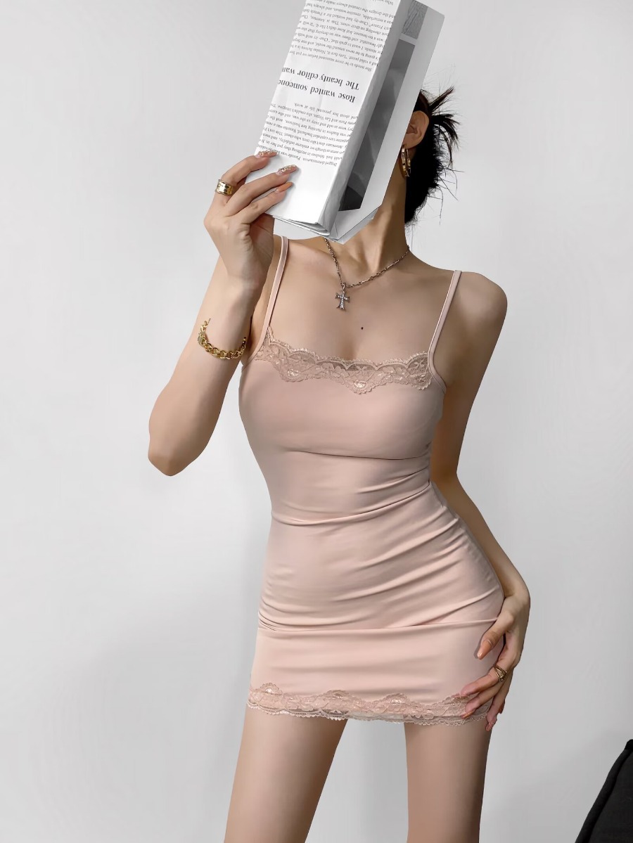 카드 2023 원피스 여름 레이스 엉덩이 뜨거운 소녀 새로운 순수한 바람 멜빵 스커트 화이트 코튼