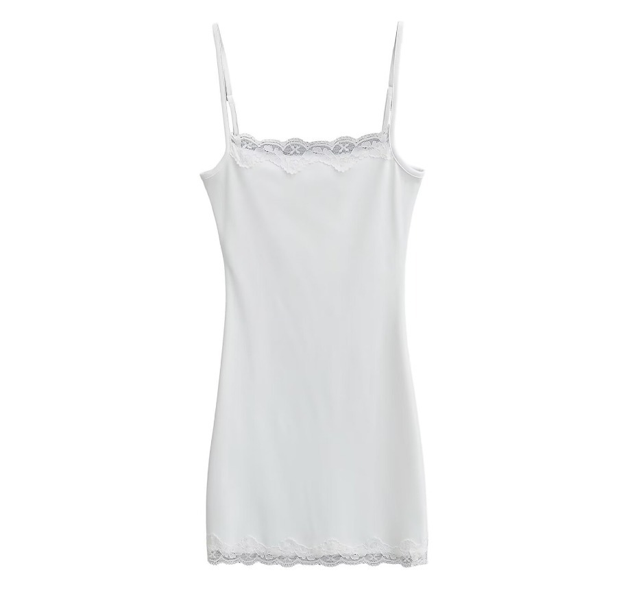 카드 2023 원피스 여름 레이스 엉덩이 뜨거운 소녀 새로운 순수한 바람 멜빵 스커트 화이트 코튼스토어 가기