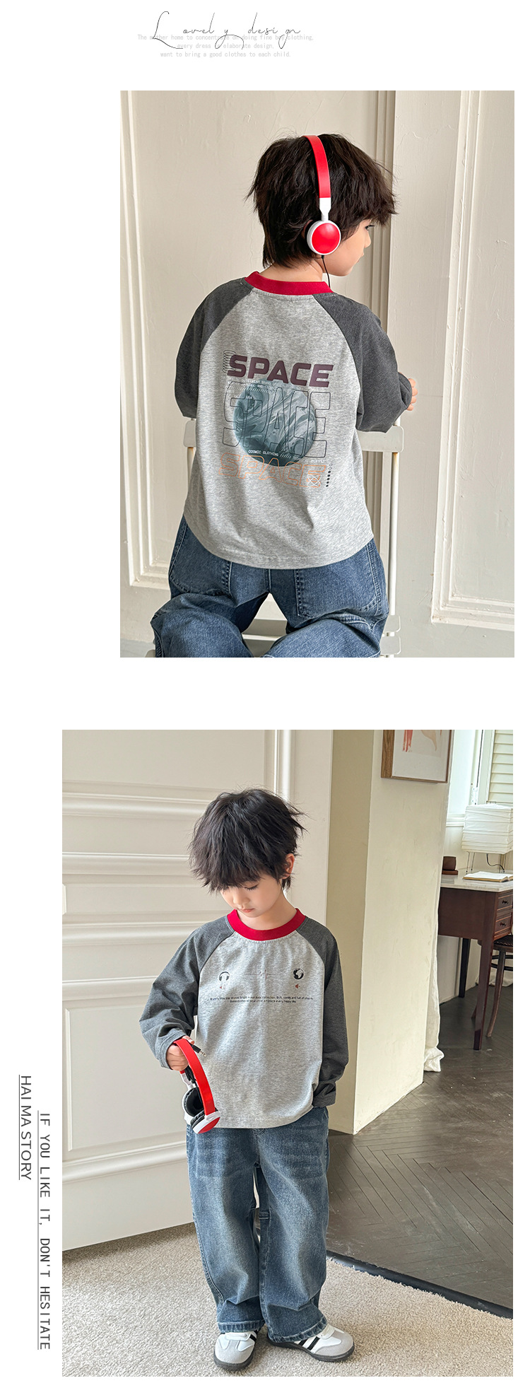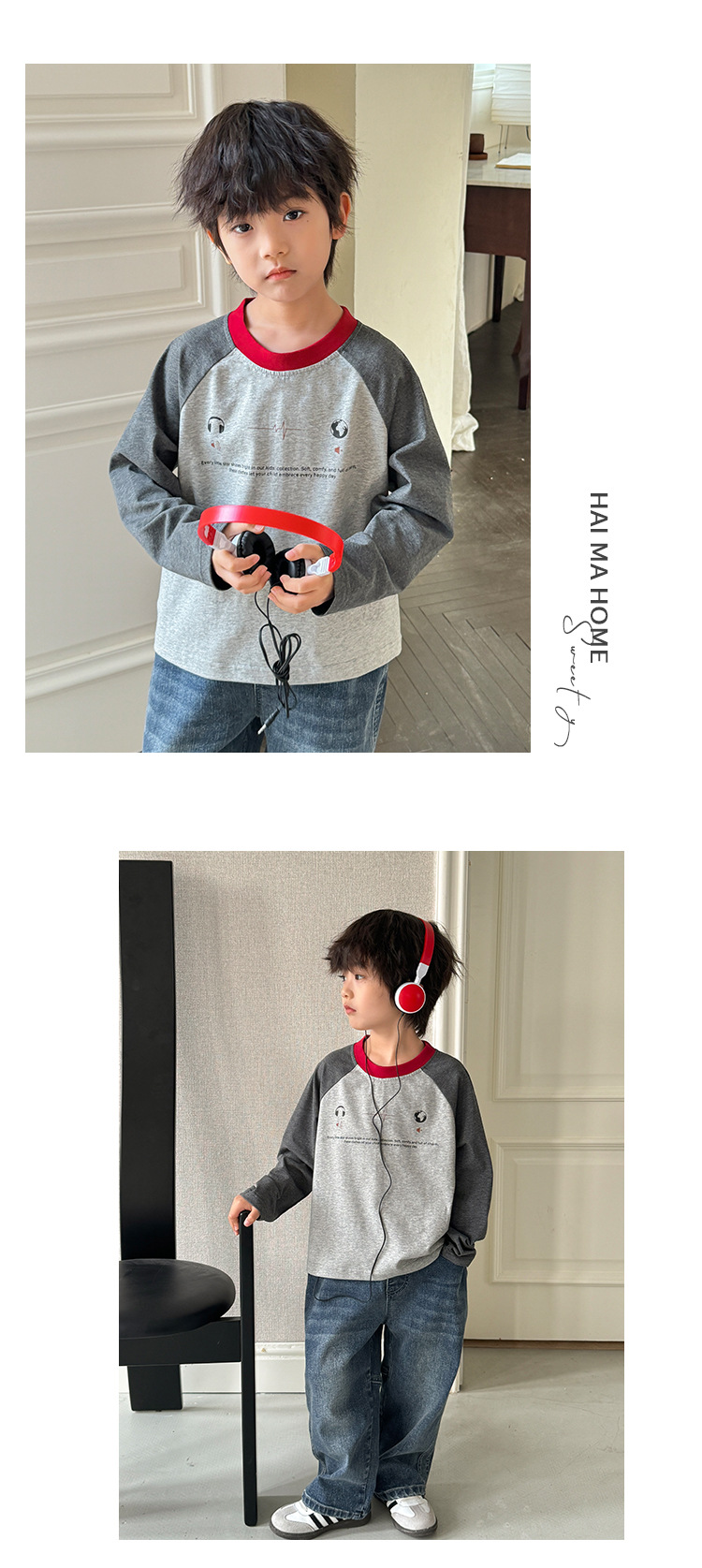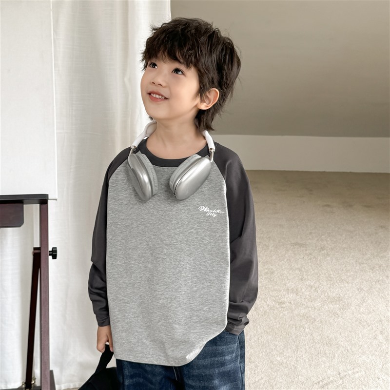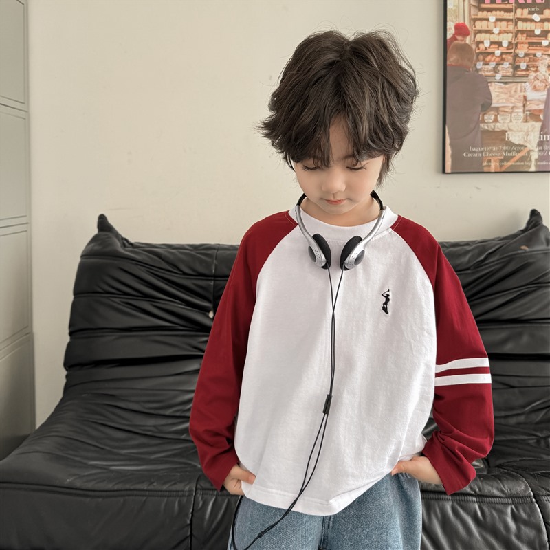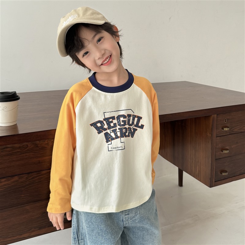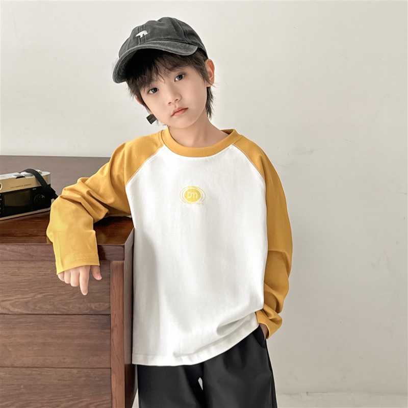 Haimajia 2025 새로운 가을 스타일 소년 순면 라글란 슬리브 긴팔 티셔츠 가을 옷 한국 스타일 아동복스토어 가기