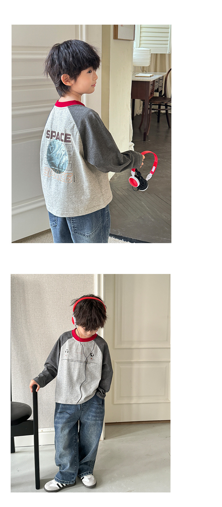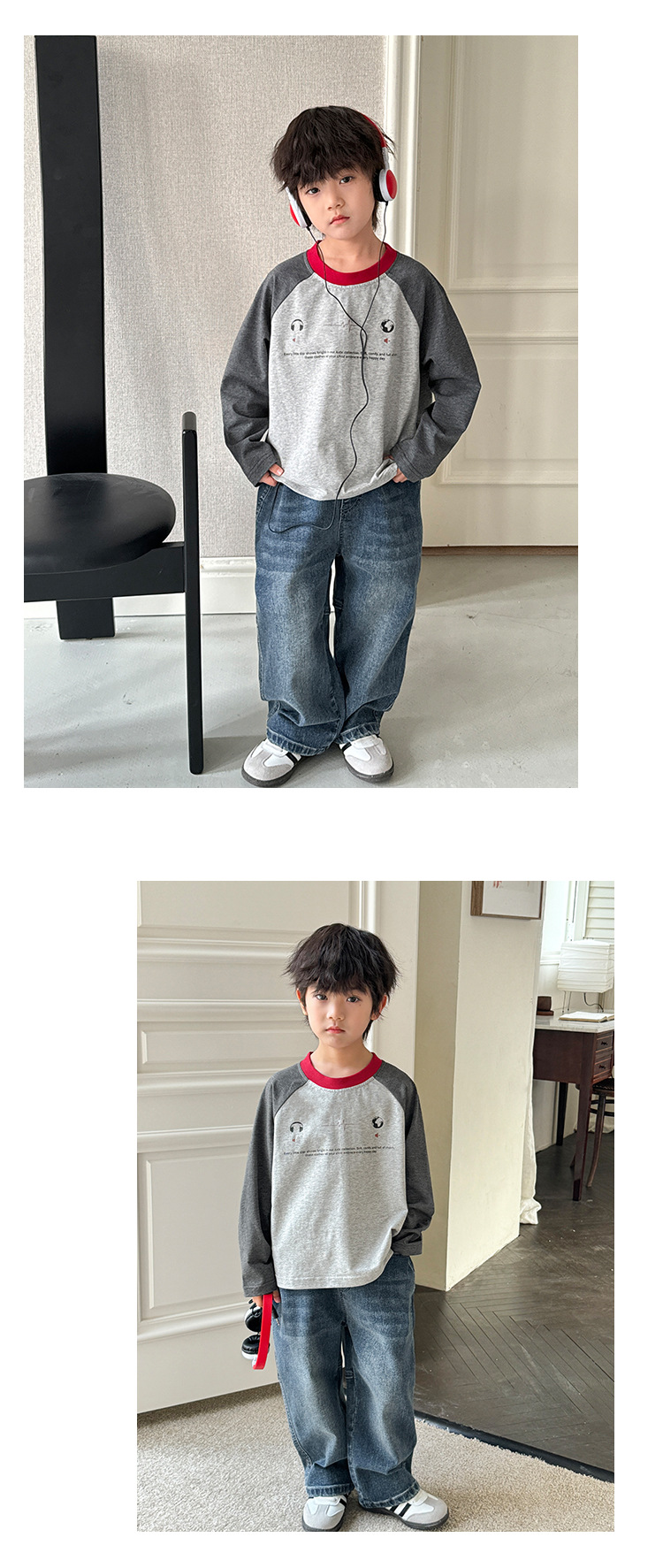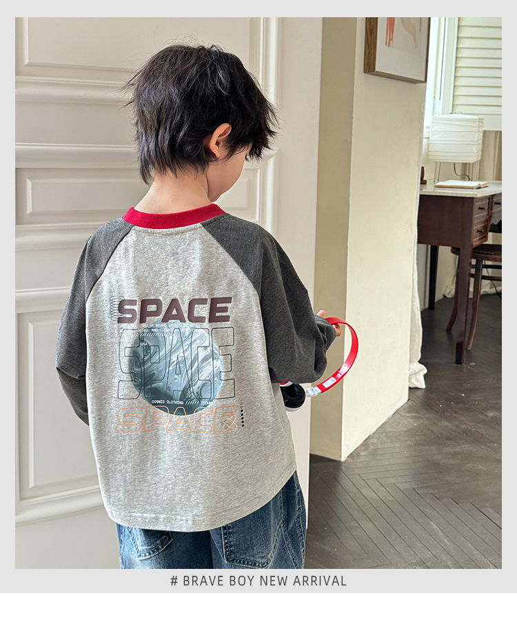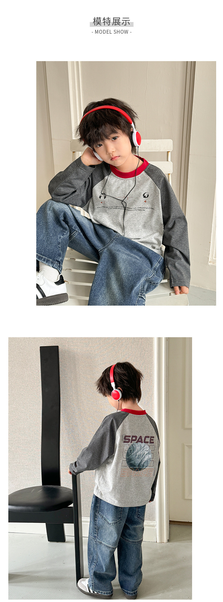 Haimajia 2025 새로운 가을 스타일 소년 순면 라글란 슬리브 긴팔 티셔츠 가을 옷 한국 스타일 아동복스토어 가기