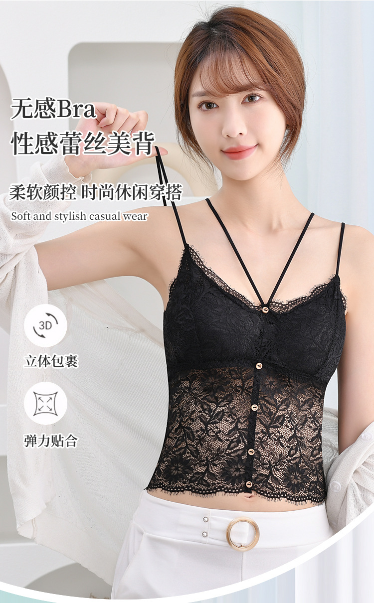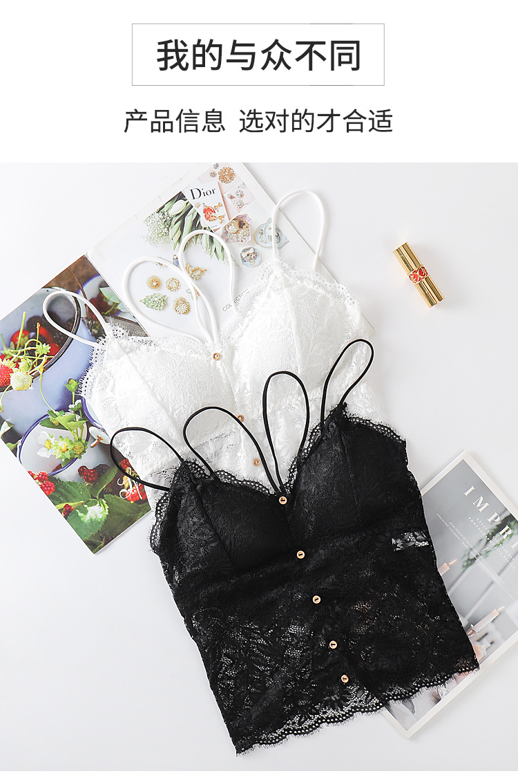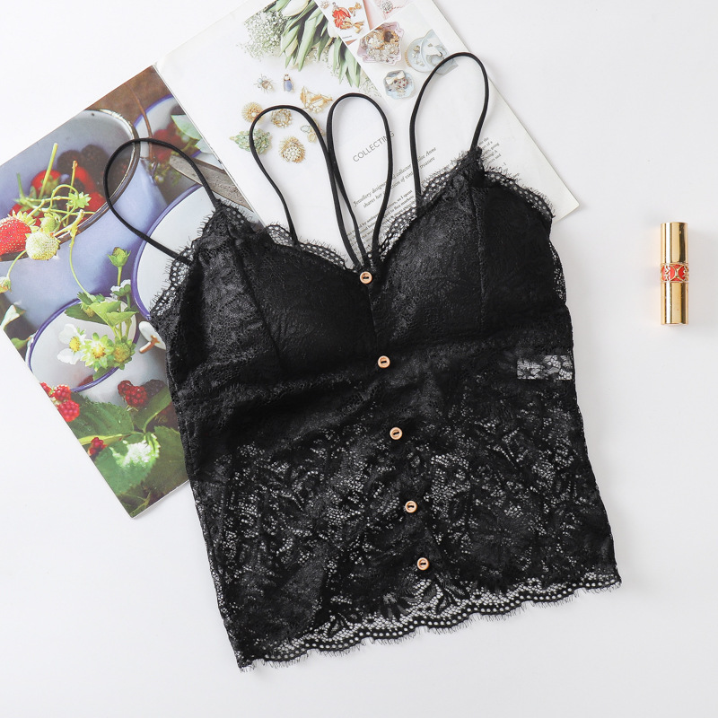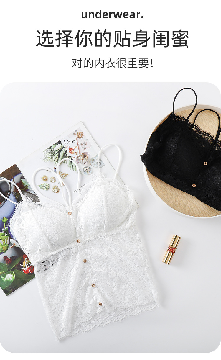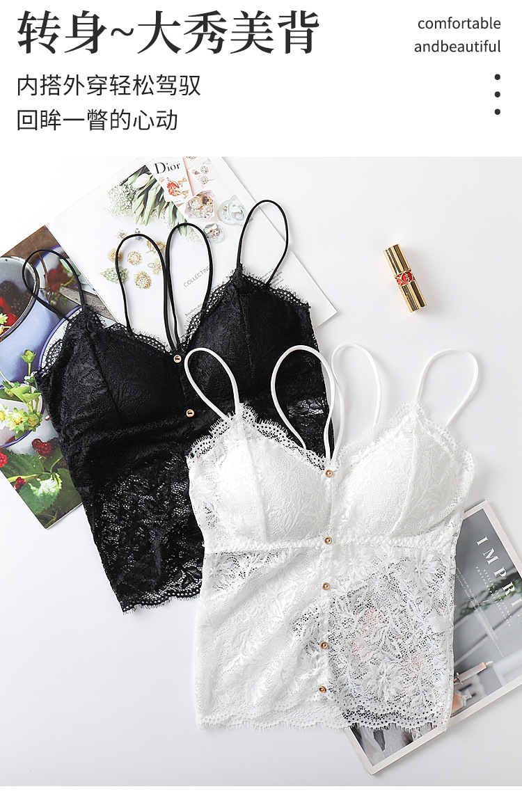 프랑스 스타일 레이스 슬링 조끼 가슴 패드 여성의 여름 내복 외복 버튼 긴 아름다운 뒷면 온라인 축하 라이브