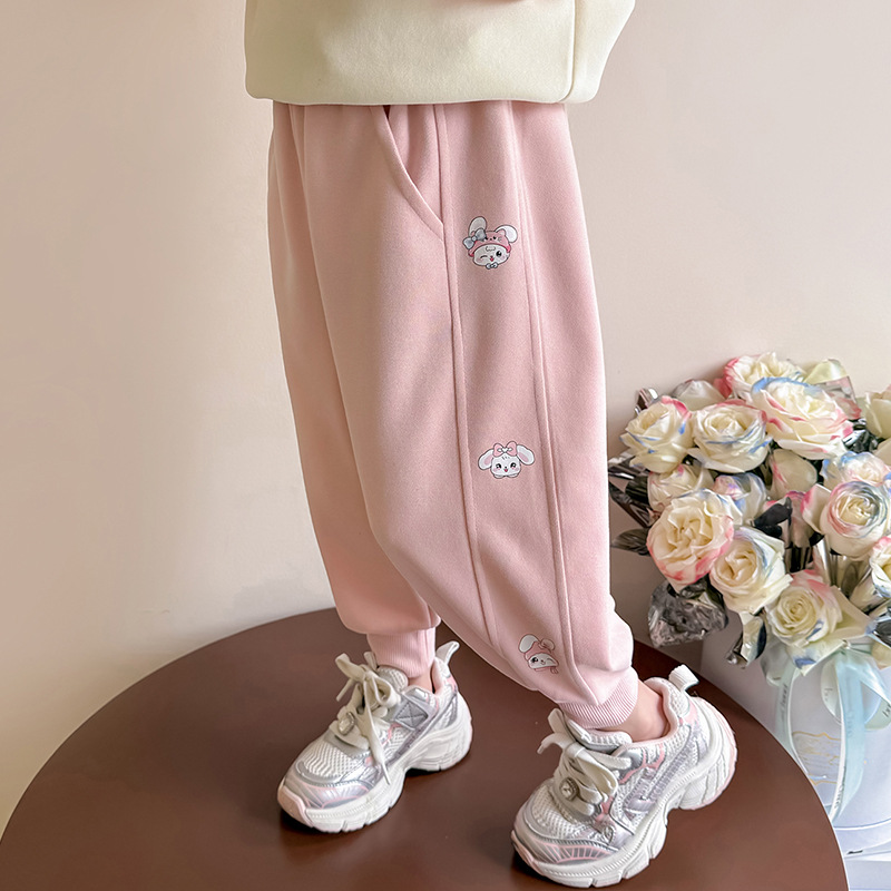 소녀 사이드 래빗 땀 바지 봄과 가을 2025 새로운 패션 어린 소녀 스포츠 캐주얼 바지 어린이 바지스토어 가기