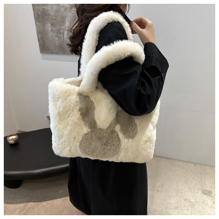2024 새로운 가을과 겨울 만화 어깨 가방 일본 휴대용 푹신한 가방 가방 대용량 인터넷 인기있는 여성용 푹신한 가방