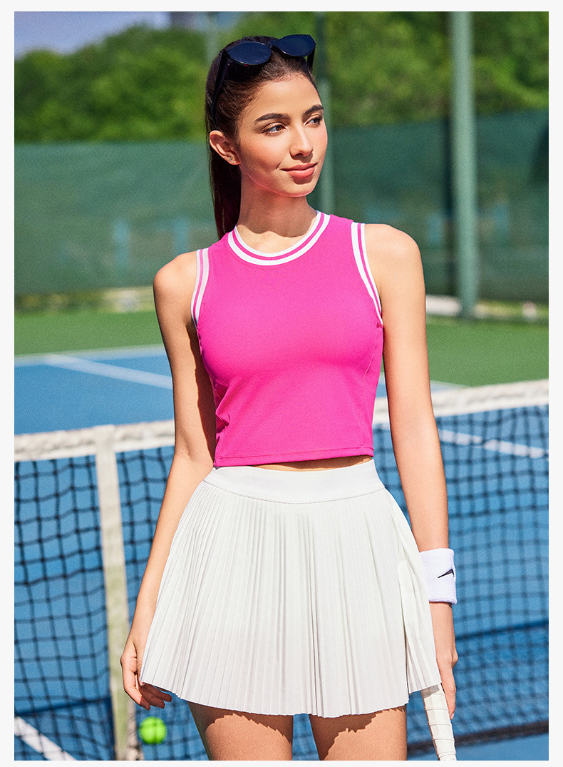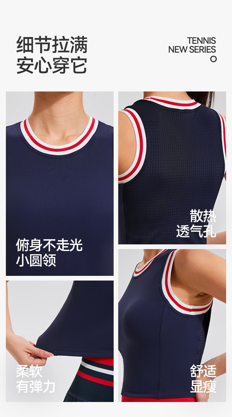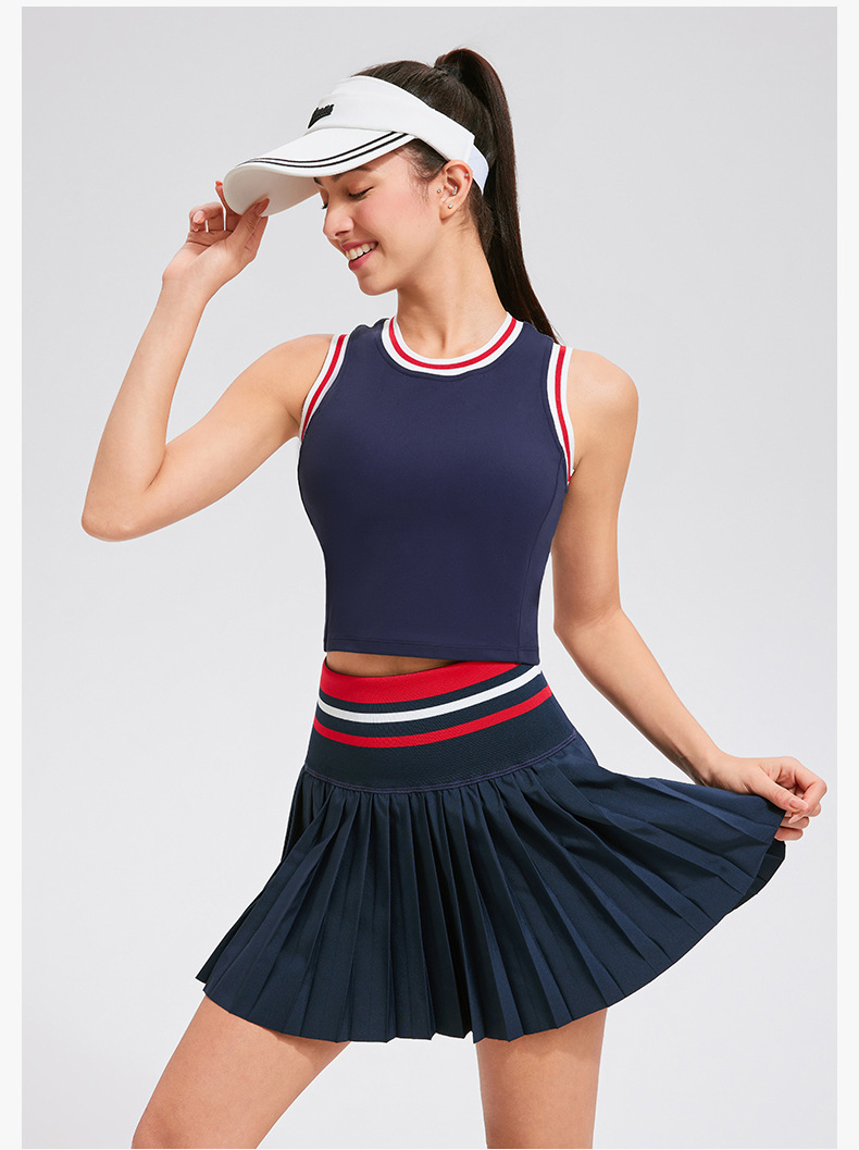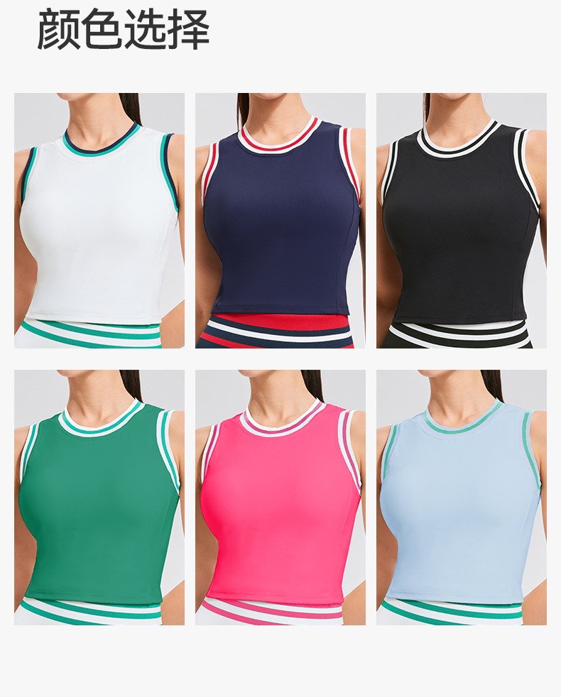 테니스 의류 스포츠 조끼 여성 원피스 컵 메쉬 스레드 레트로 대비 색상 피트니스 브래지어 요가 짧은 탑