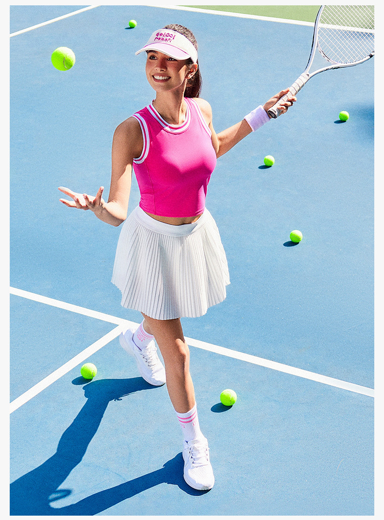 테니스 의류 스포츠 조끼 여성 원피스 컵 메쉬 스레드 레트로 대비 색상 피트니스 브래지어 요가 짧은 탑스토어 가기