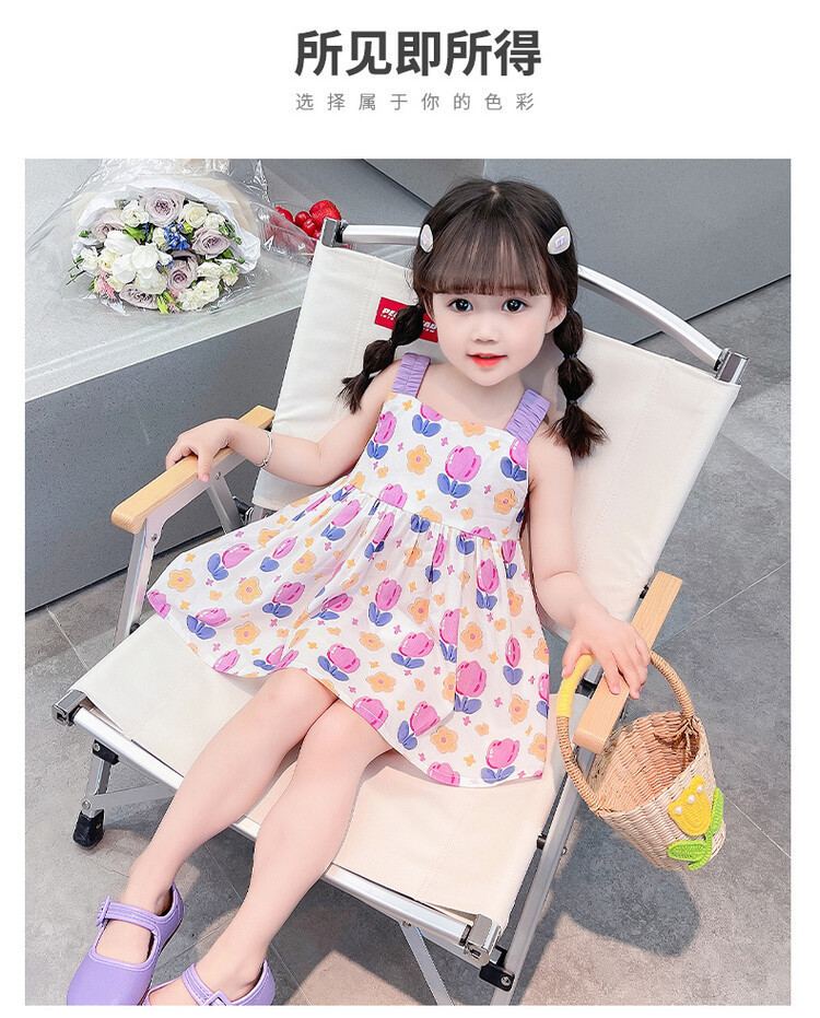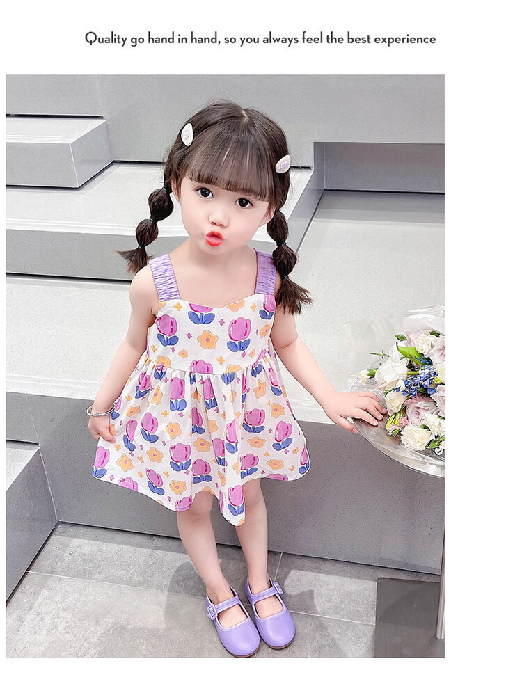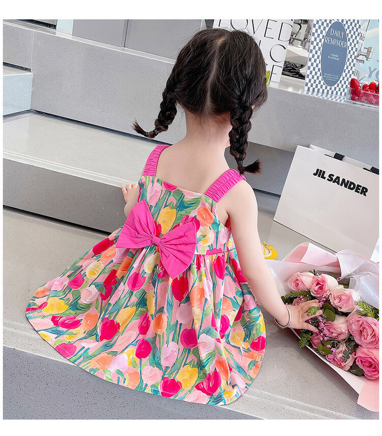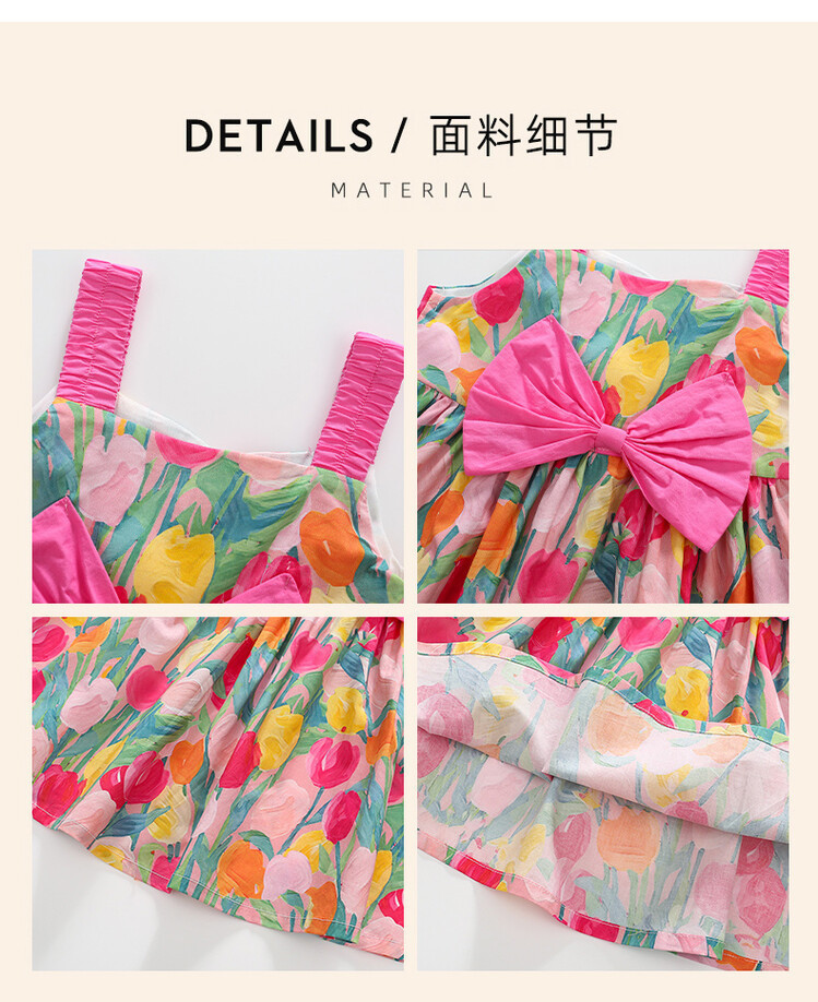 2025 여름 새 소녀 꽃 원피스 어린이 귀여운 공주 슬립 원피스 여성의 보물 외국 스타일 A-라인 원피스