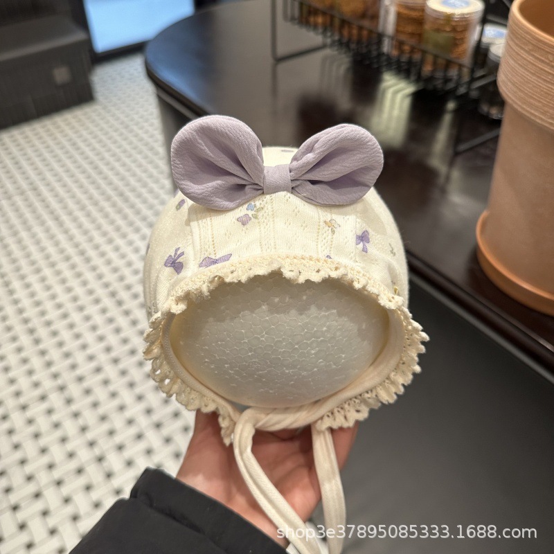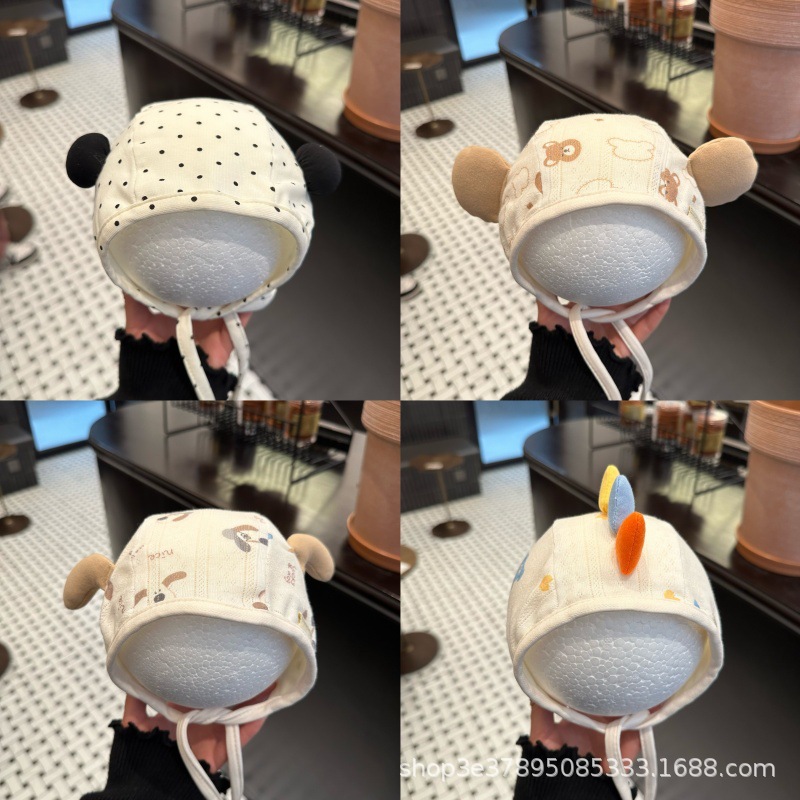 아기 모자 태아 모자 봄과 가을 얇은 귀 보호 모자 귀여운 토끼 귀 발가락 모자 아기 레이스 업 모자 한국 스타일스토어 가기