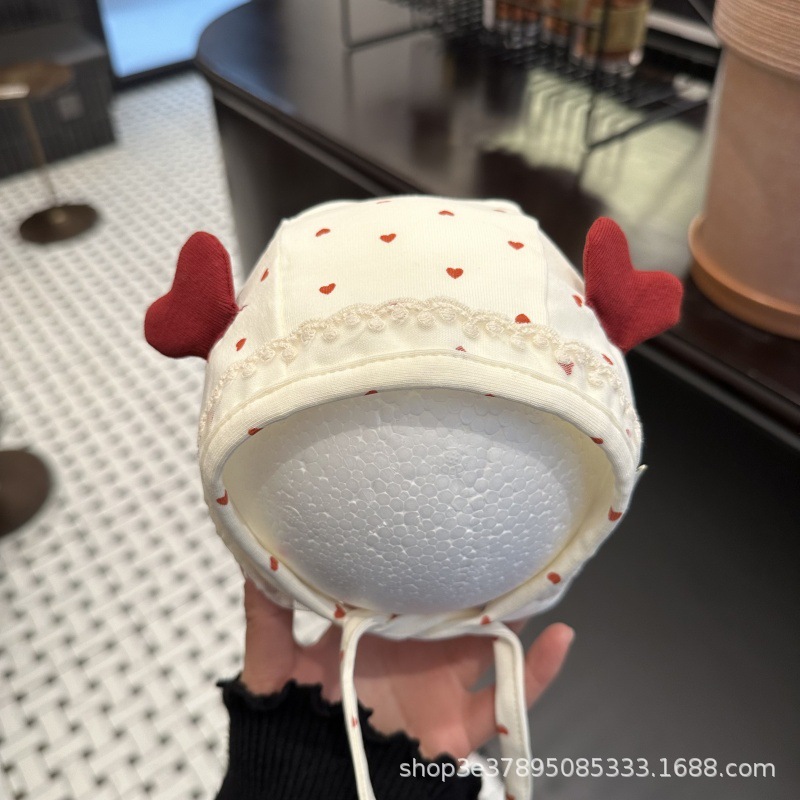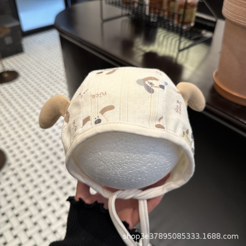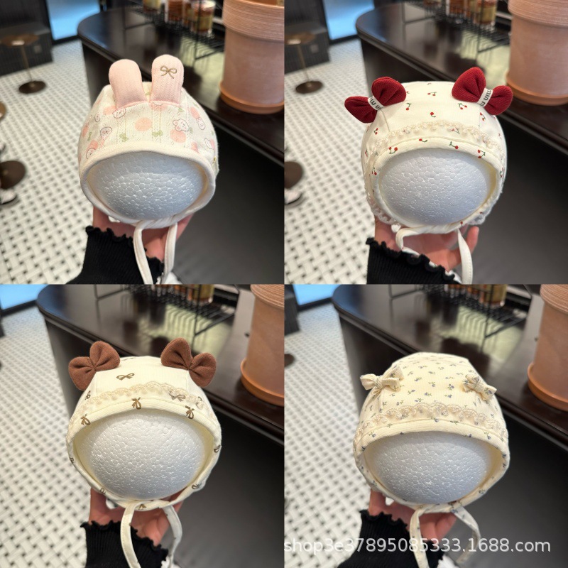 아기 모자 태아 모자 봄과 가을 얇은 귀 보호 모자 귀여운 토끼 귀 발가락 모자 아기 레이스 업 모자 한국 스타일
