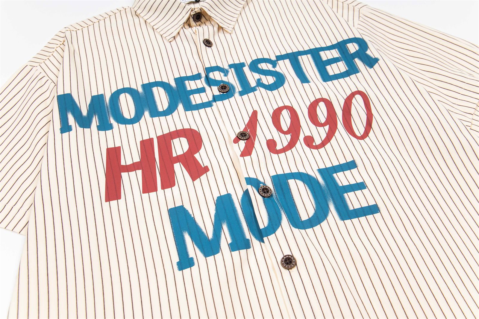 일본 복고풍 문자 프린트 스트라이프 넥타이 반팔 셔츠 남성 여름 루즈 캐주얼 다용도 커플 셔츠스토어 가기