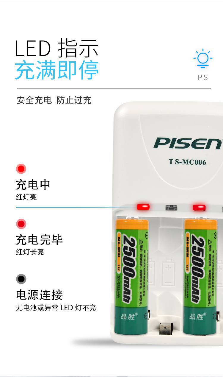 Pinsheng No.5 배터리 충전기 4 슬롯 Ni-Cd Ni-MH 충전식 배터리 충전 상자 표준 No.7/9v 충전기스토어 가기