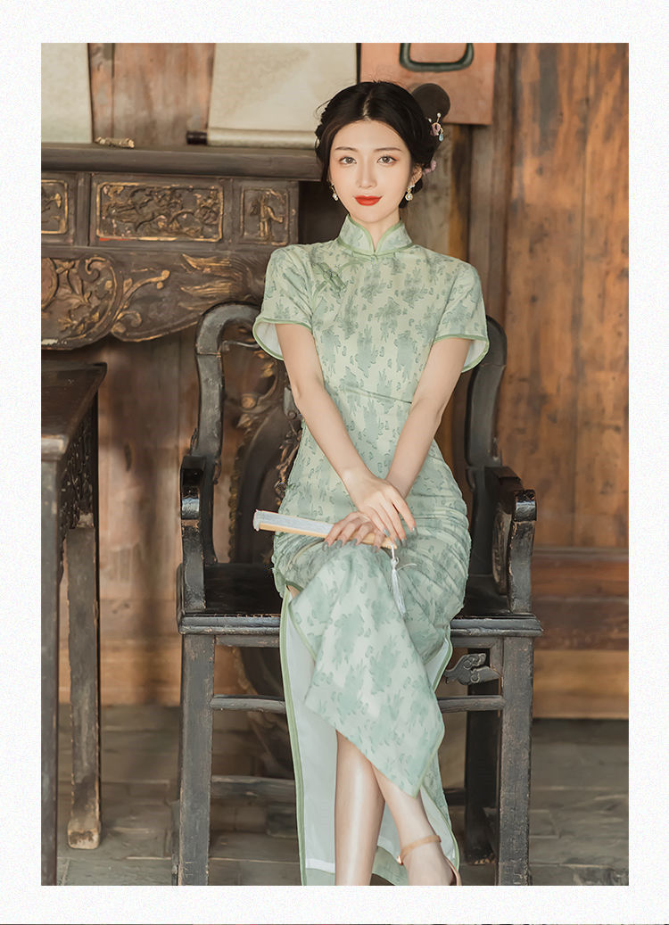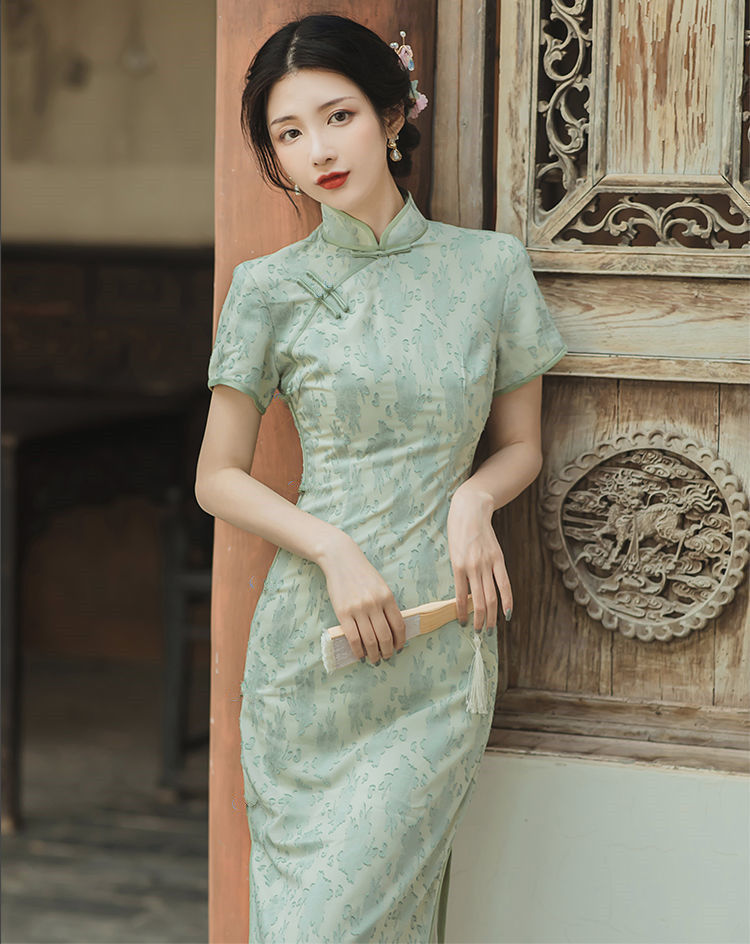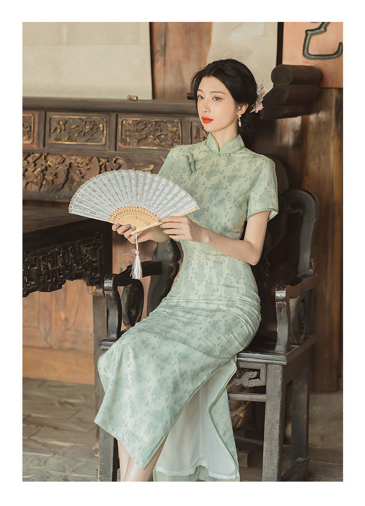 개선 된 청삼 복고풍 민속 스타일 우아한 슬림 핏 긴 원피스 인쇄 어린 소녀 원피스 쉬스 스트레이트 스커트 공장스토어 가기
