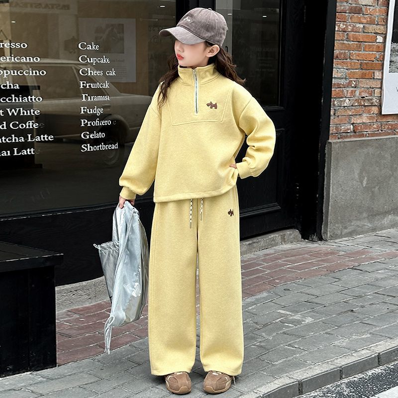 소녀의 봄 세트 2025 새로운 봄 옷 대형 어린이 서양식 유행 운동복 어린이 레저 2 조각 봄과 가을