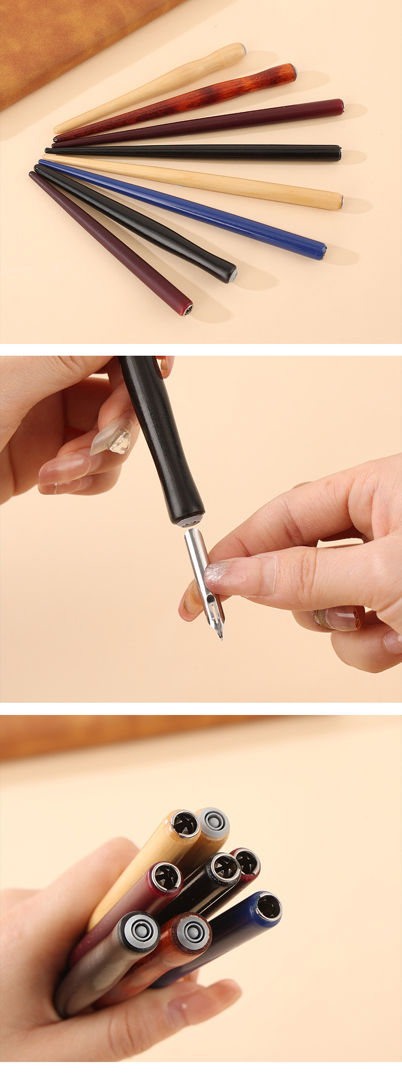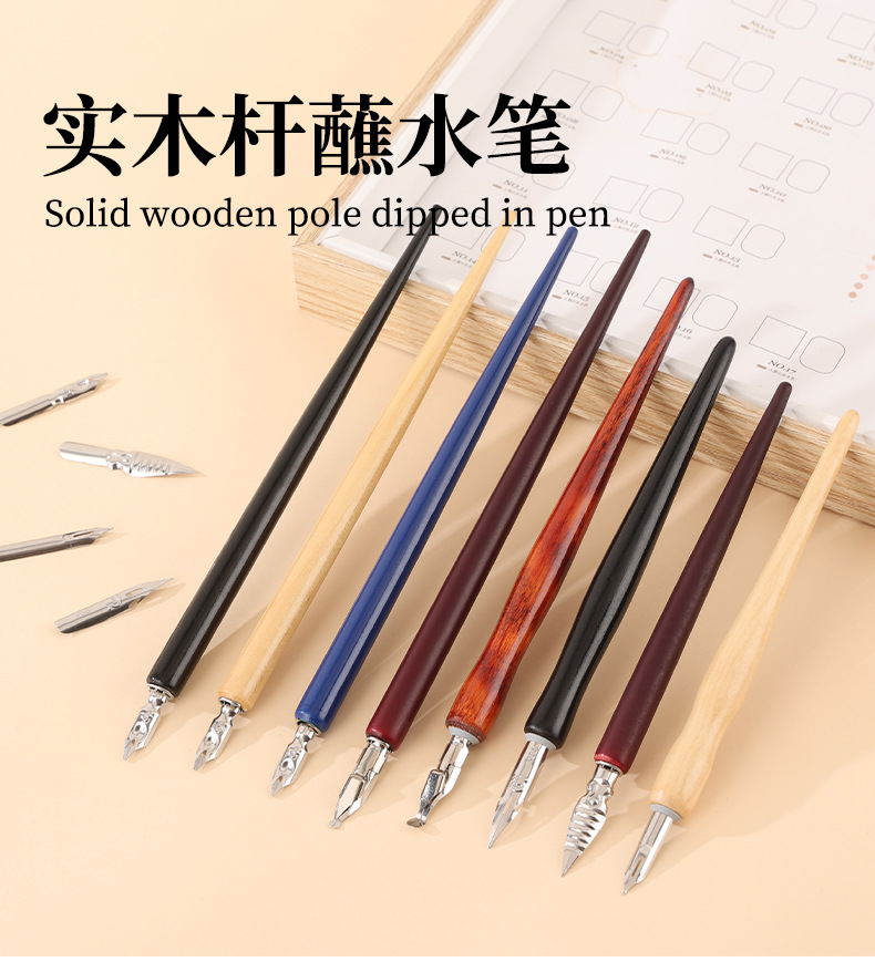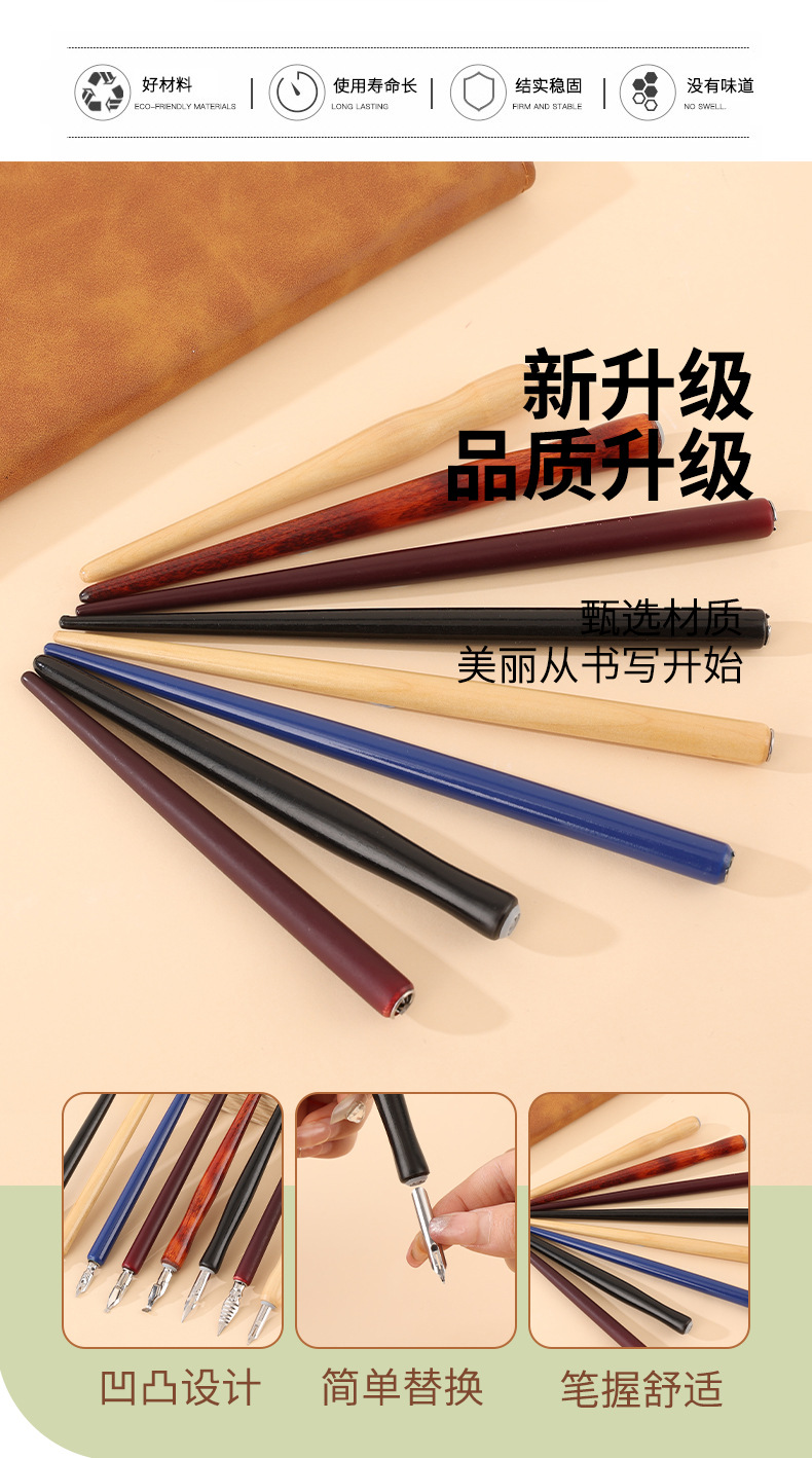 복고풍 원목 펜, 수성펜, 예술 영어 서예 만화 펜 세트, 교체 가능한 펜촉, 원목 손제작 펜, 맞춤 제작 가능스토어 가기