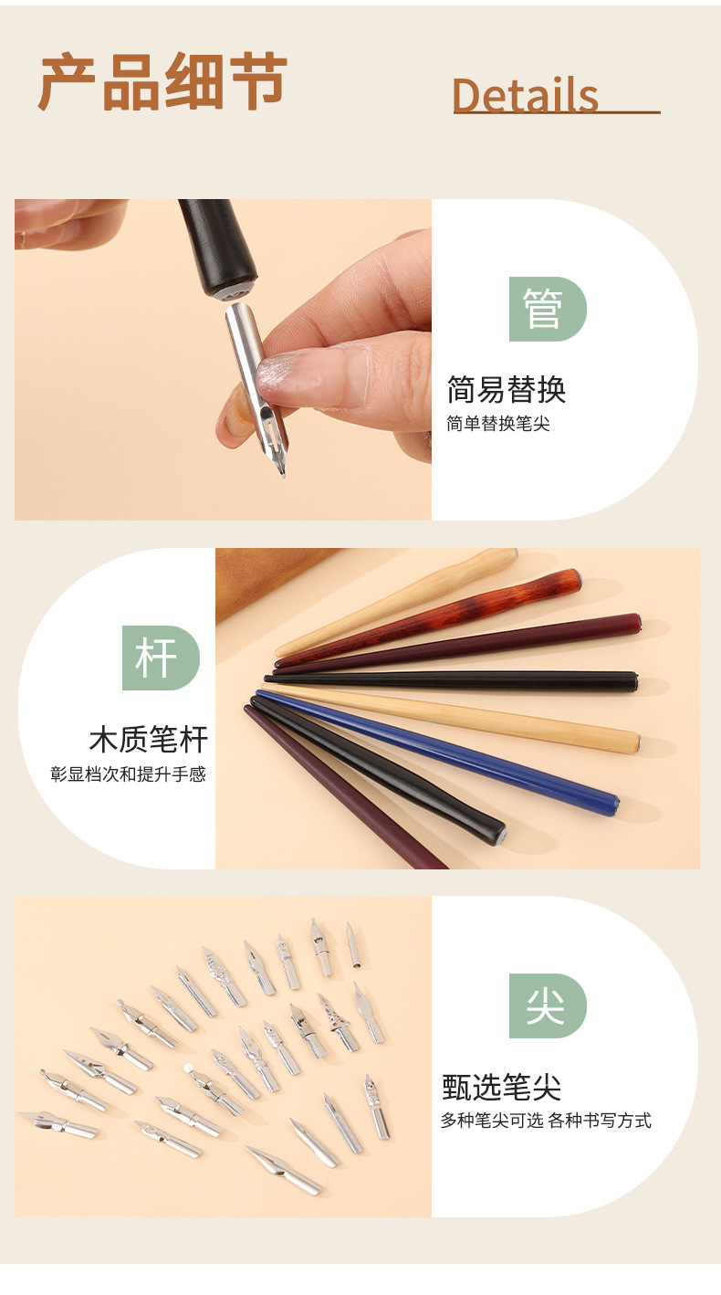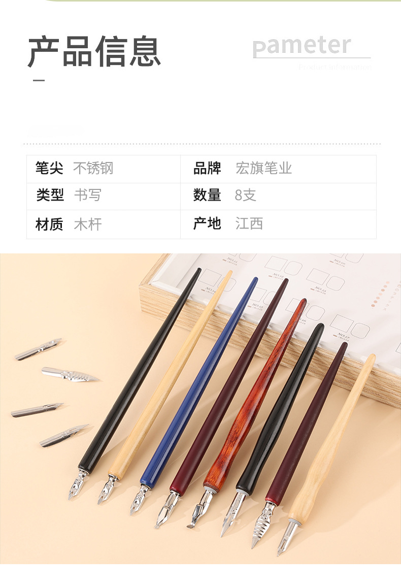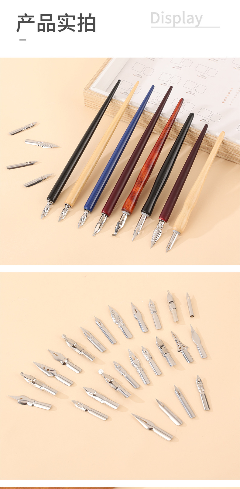 복고풍 원목 펜, 수성펜, 예술 영어 서예 만화 펜 세트, 교체 가능한 펜촉, 원목 손제작 펜, 맞춤 제작 가능스토어 가기