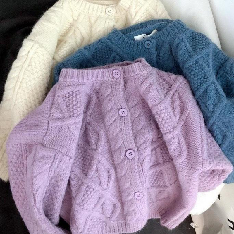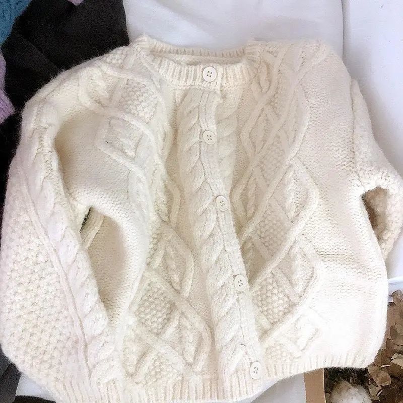 슈퍼 외국 가스 소프트 왁스 트위스트 스웨터 가을 한국 어린이 단색 구화 스웨터 느슨한 니트 카디건 트렌디스토어 가기