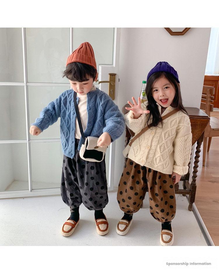 슈퍼 외국 가스 소프트 왁스 트위스트 스웨터 가을 한국 어린이 단색 구화 스웨터 느슨한 니트 카디건 트렌디