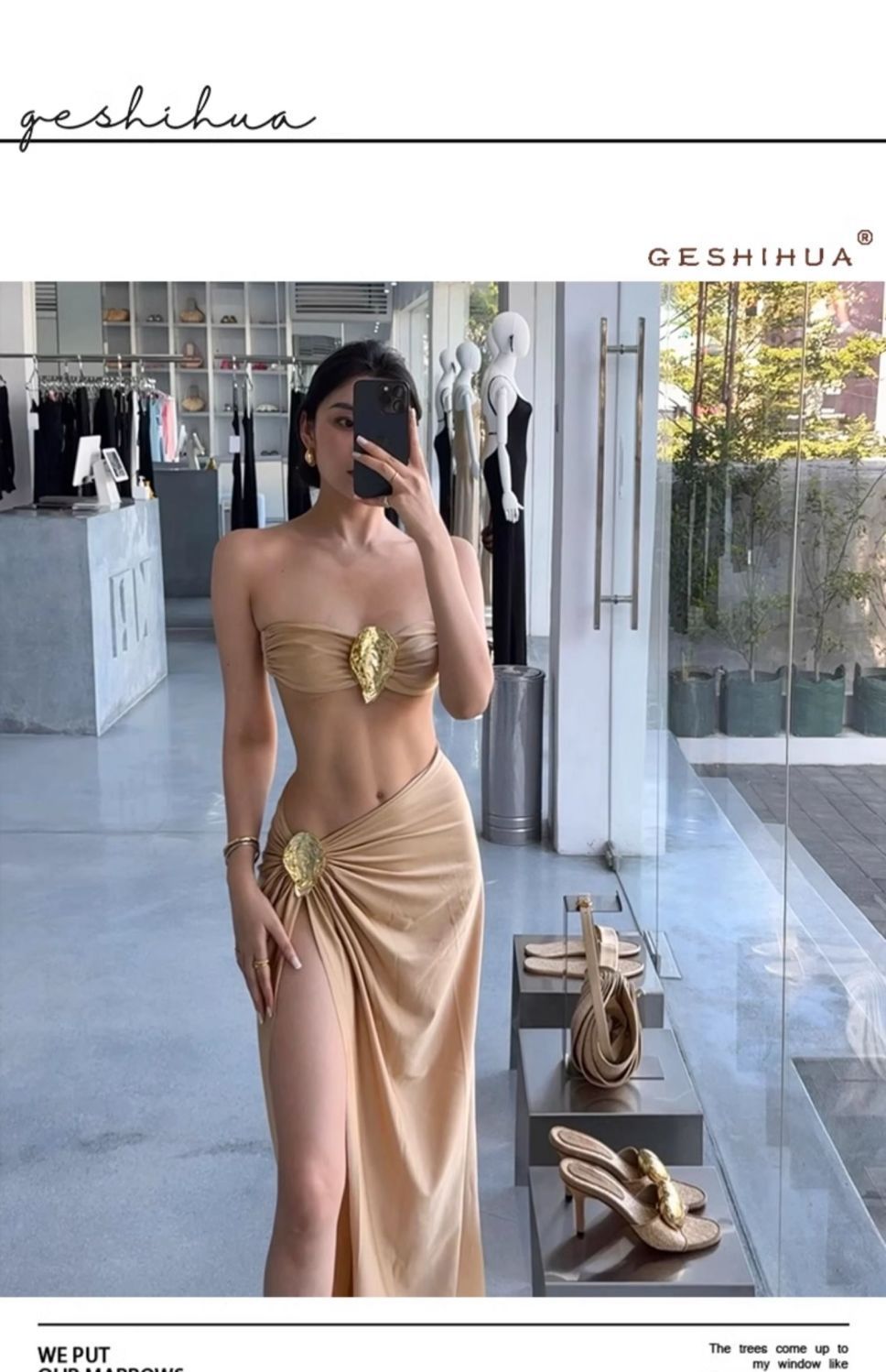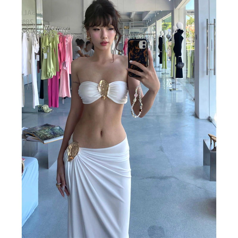 스파이스 걸스 수영복 섹시한 인어 메탈릭 스트랩리스 비키니 스플릿 스커트 세트 해변 홀리데이 비치 수영복스토어 가기