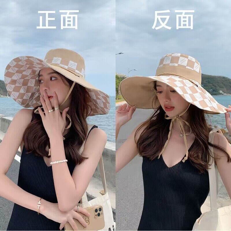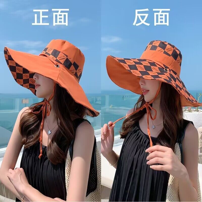 여름 모자 여자 한국식 트렌디 올매치 비치 모자 양면 얼굴 덮기 모자 야외 선 스크린 모자스토어 가기