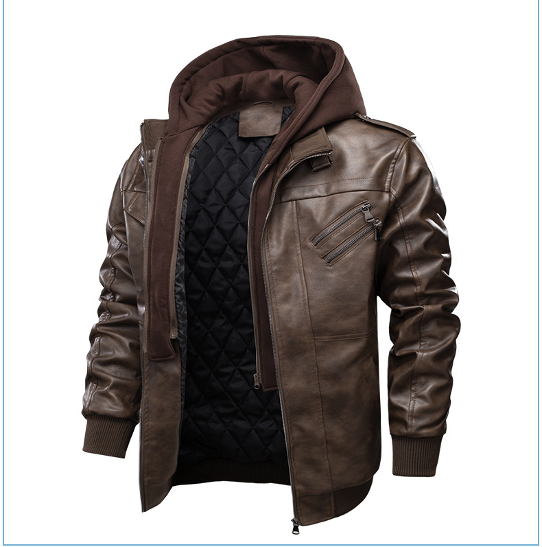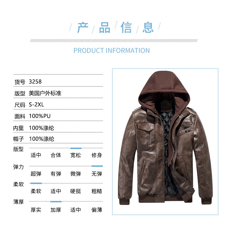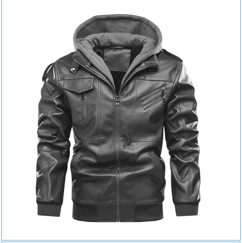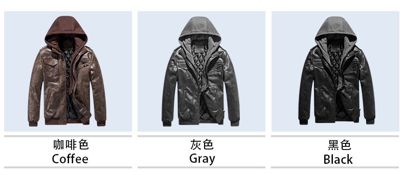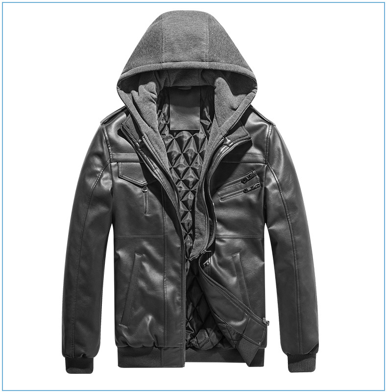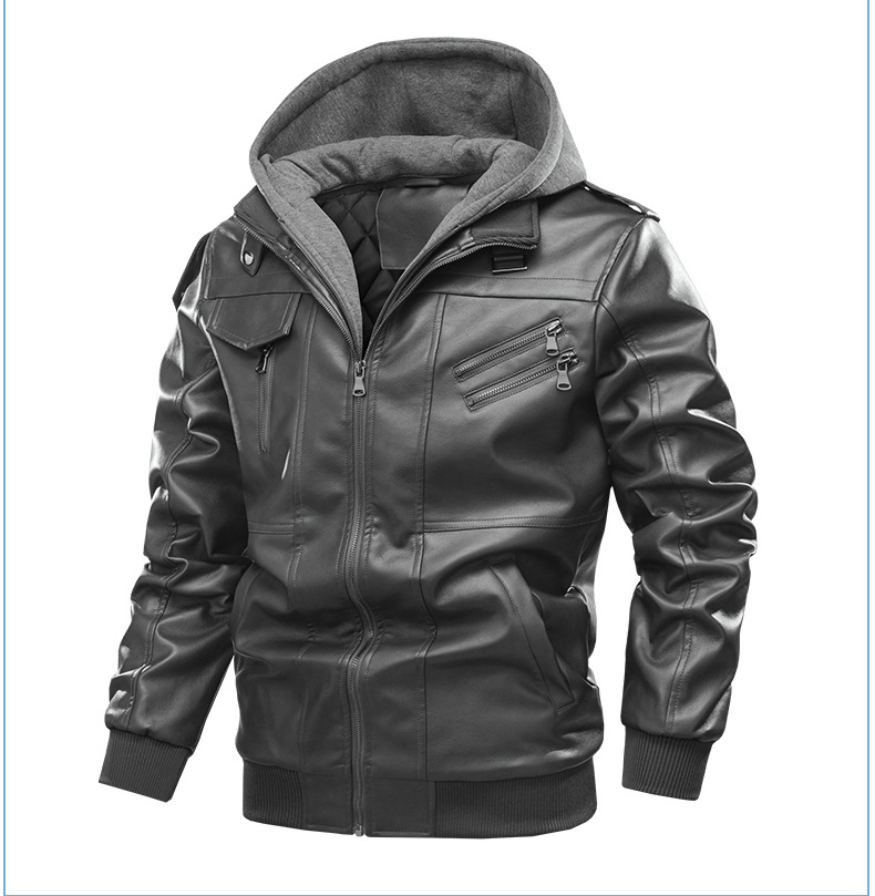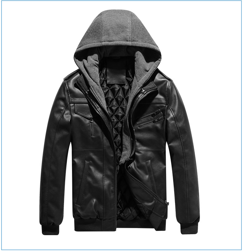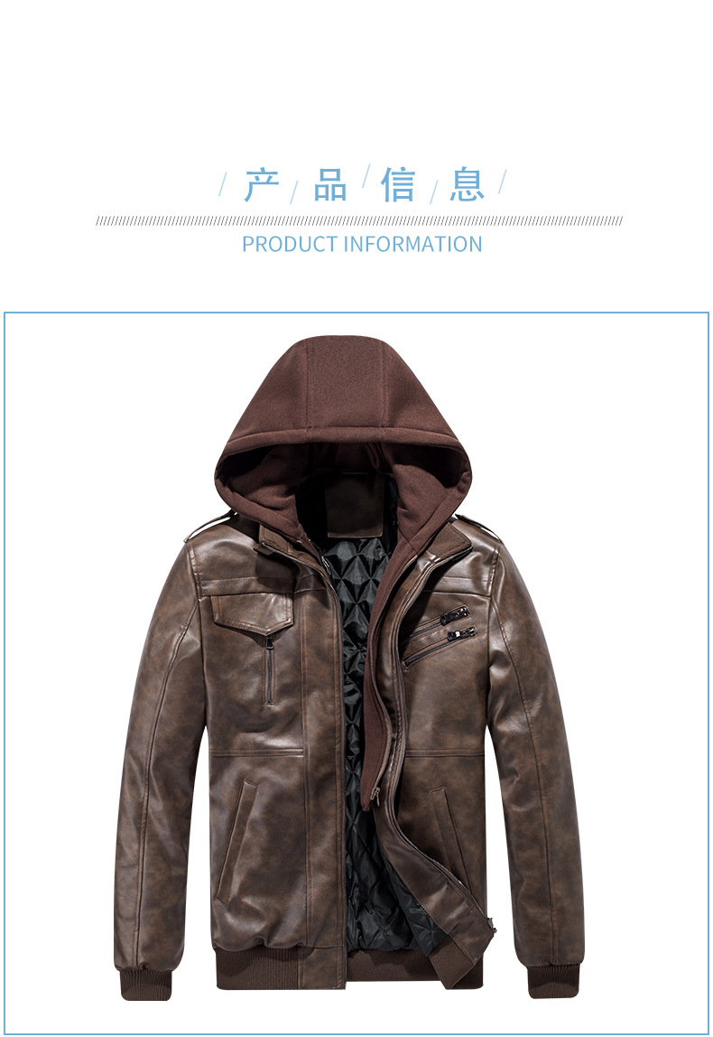 남성 캐주얼 대외 무역 오토바이 PU 가죽 의류 핀 코튼 따뜻한 재킷 두꺼운 이동식 후드 플러스 사이즈 재킷스토어 가기
