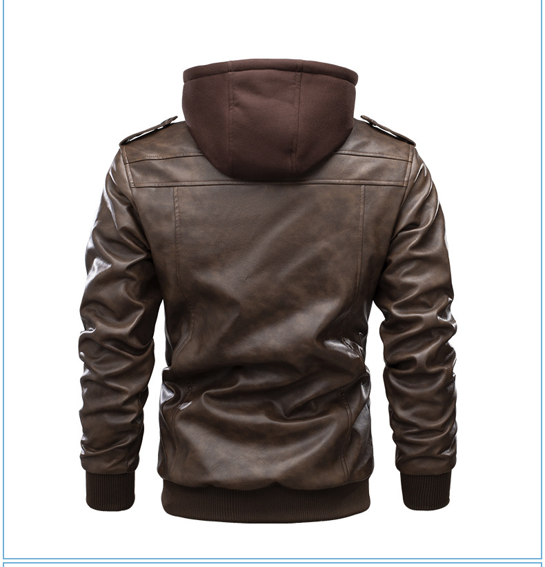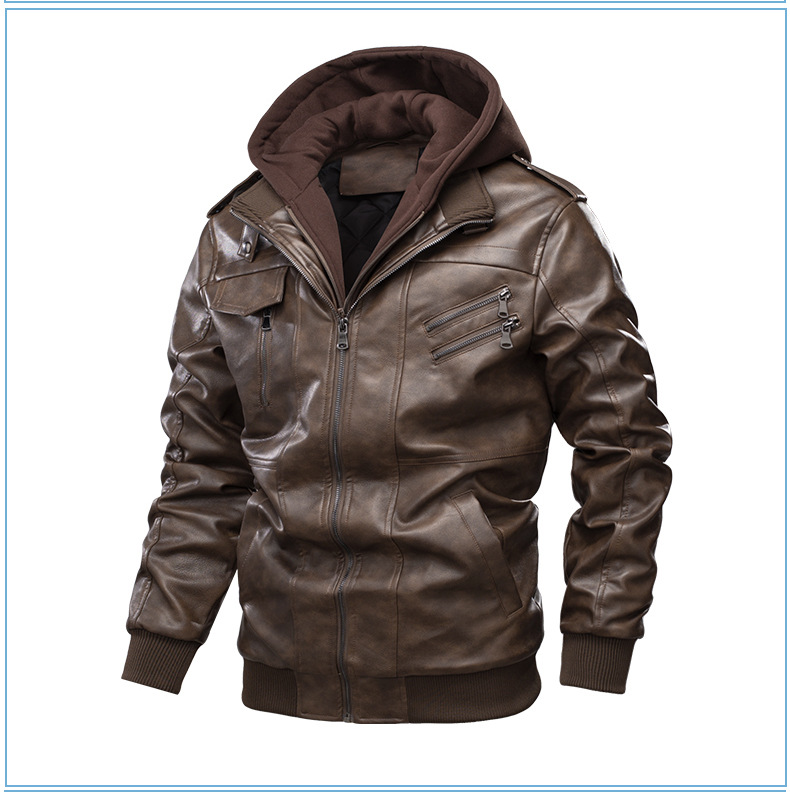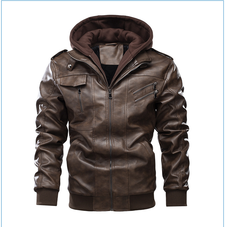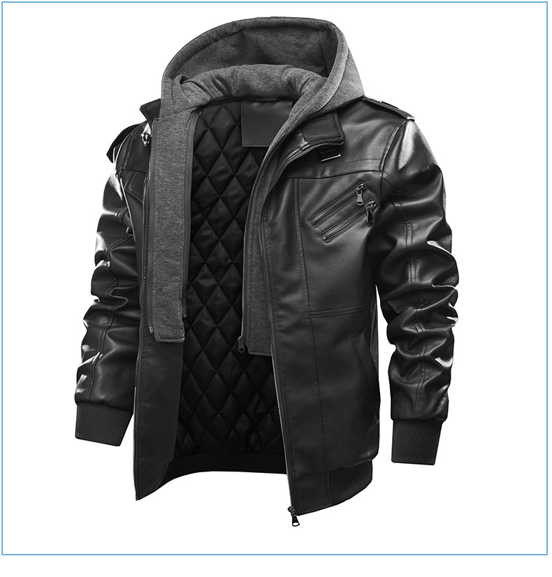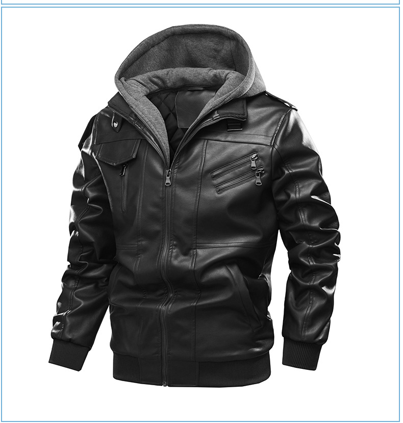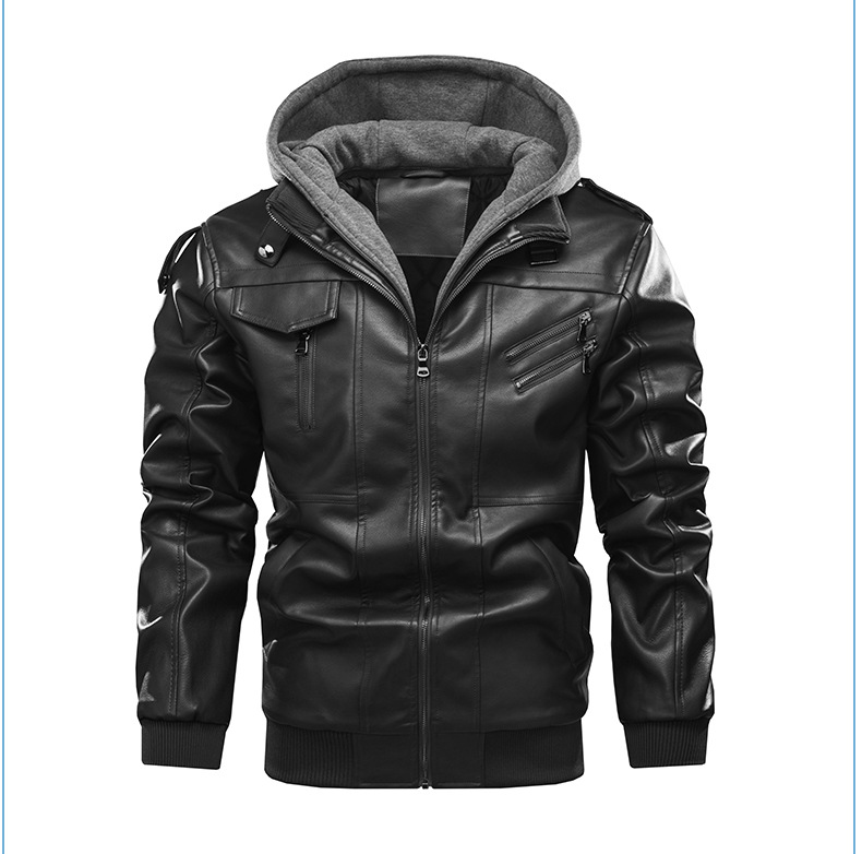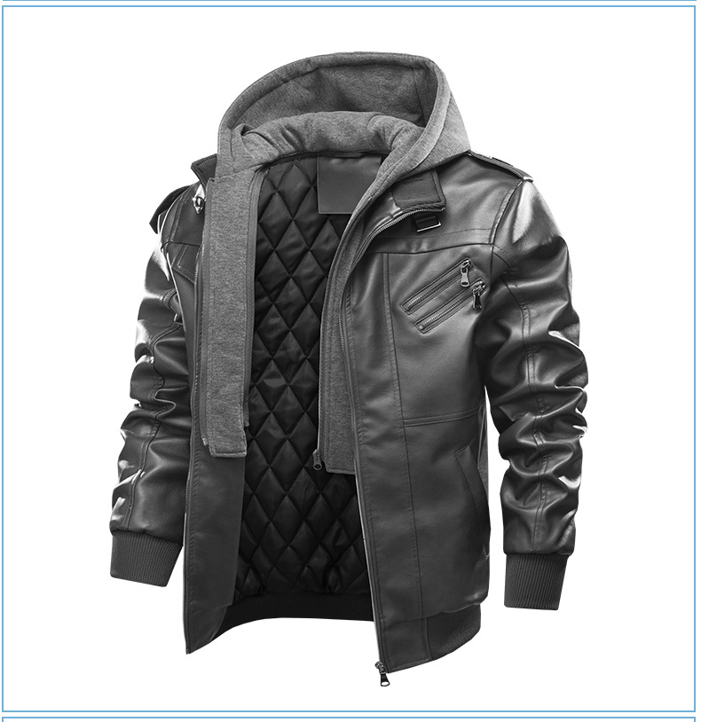 남성 캐주얼 대외 무역 오토바이 PU 가죽 의류 핀 코튼 따뜻한 재킷 두꺼운 이동식 후드 플러스 사이즈 재킷