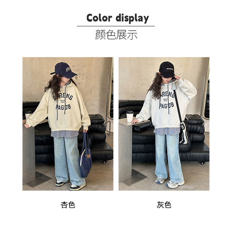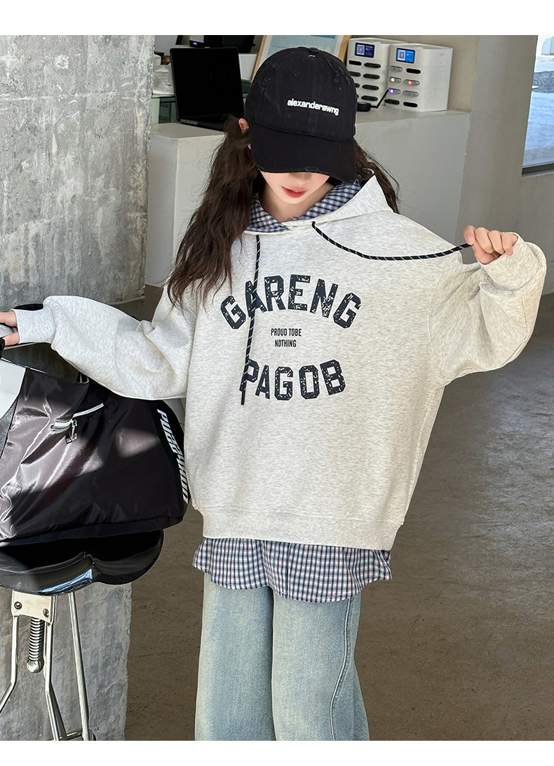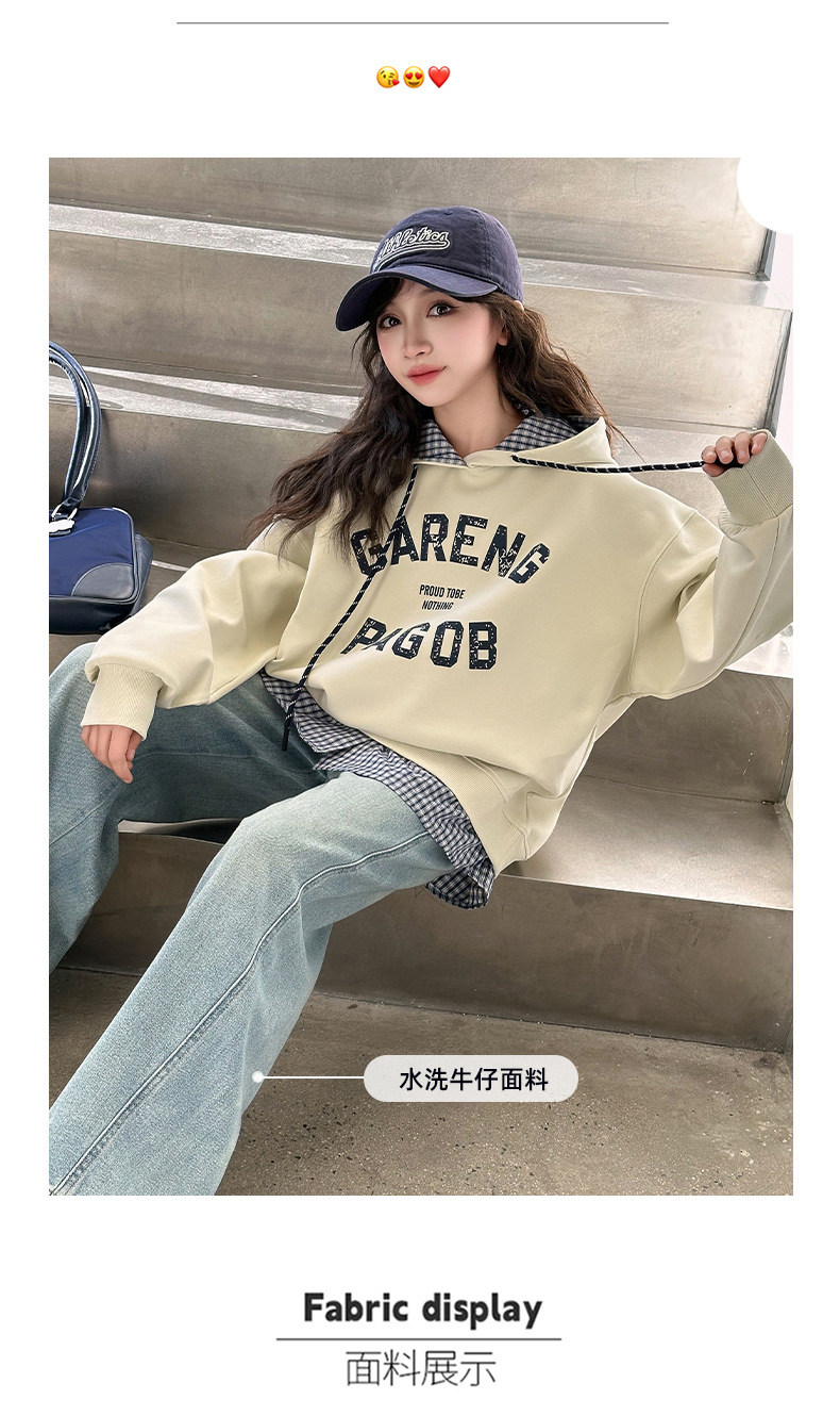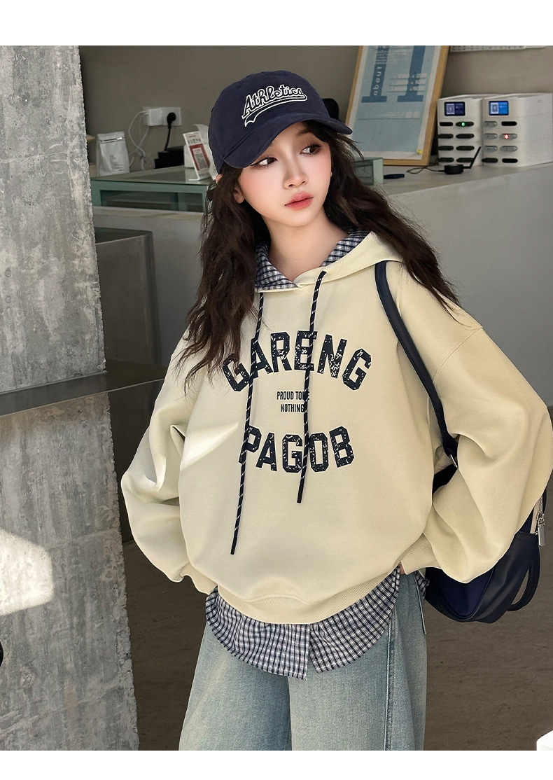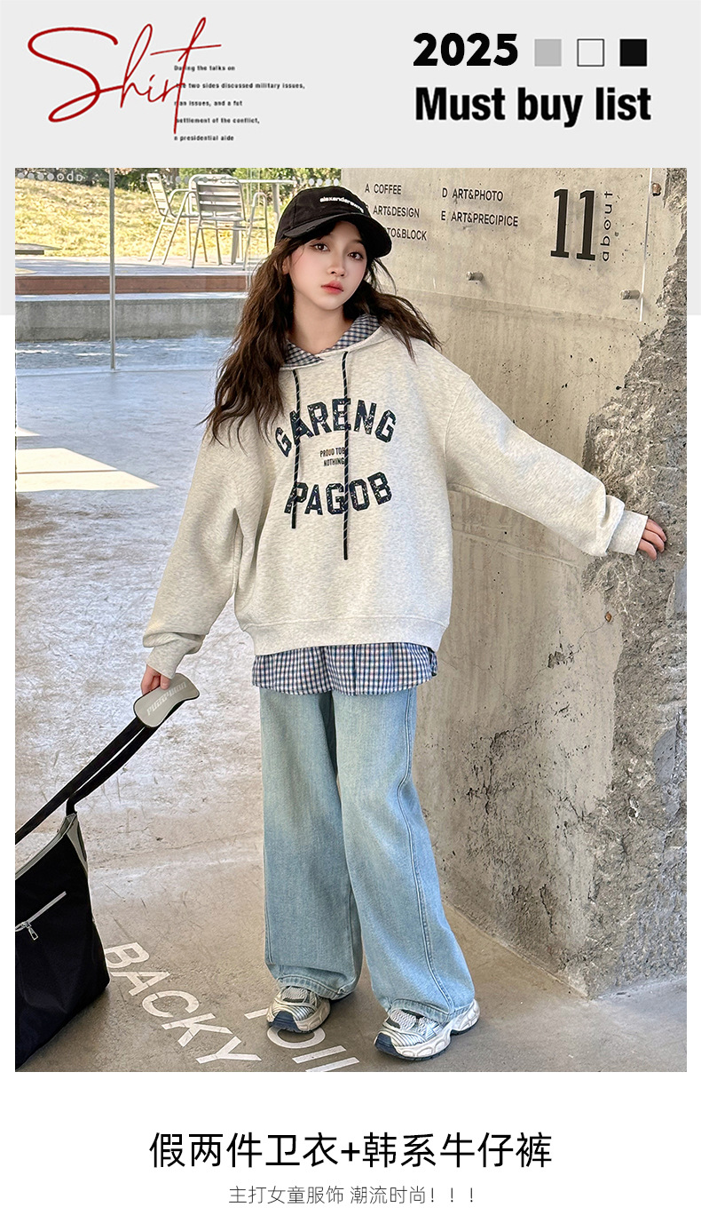 여자 후드 스웨터 봄 2025 새로운 스타일 한국 스타일 가짜 중학생을위한 2 피스 탑 유행 옷스토어 가기