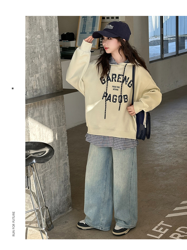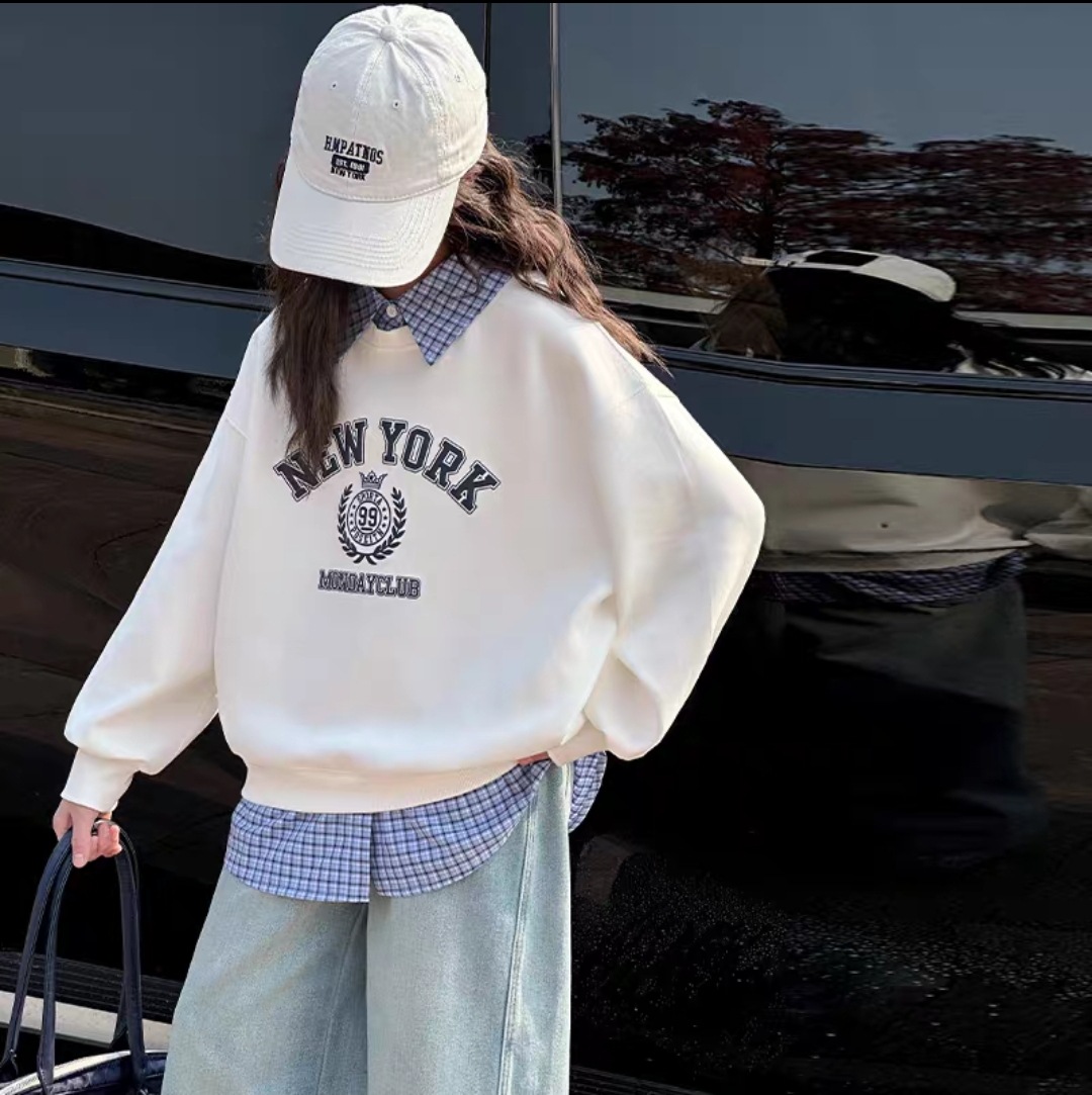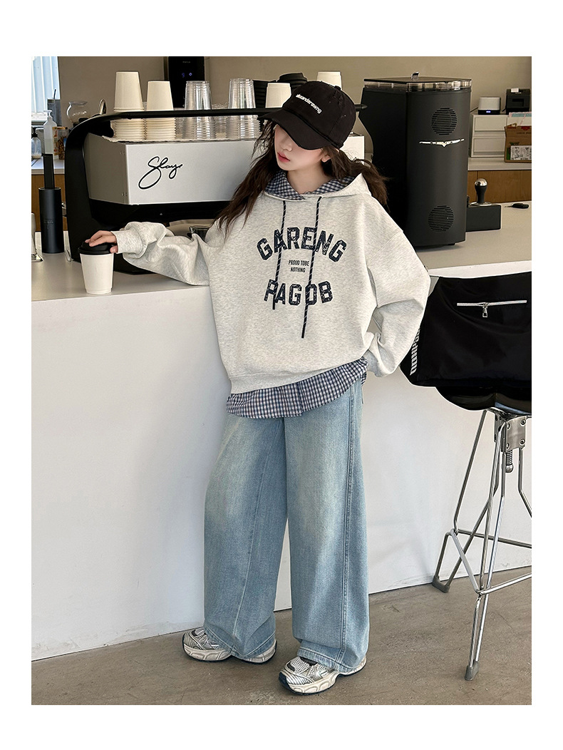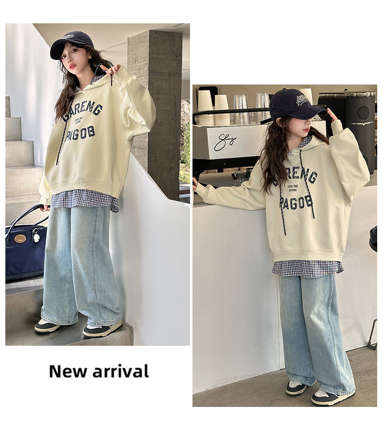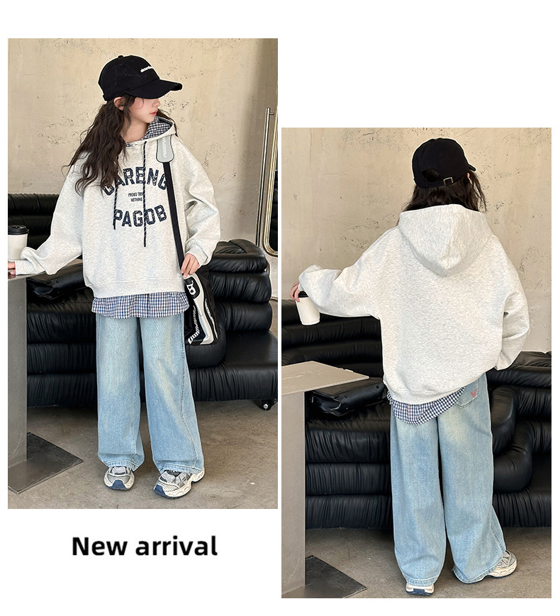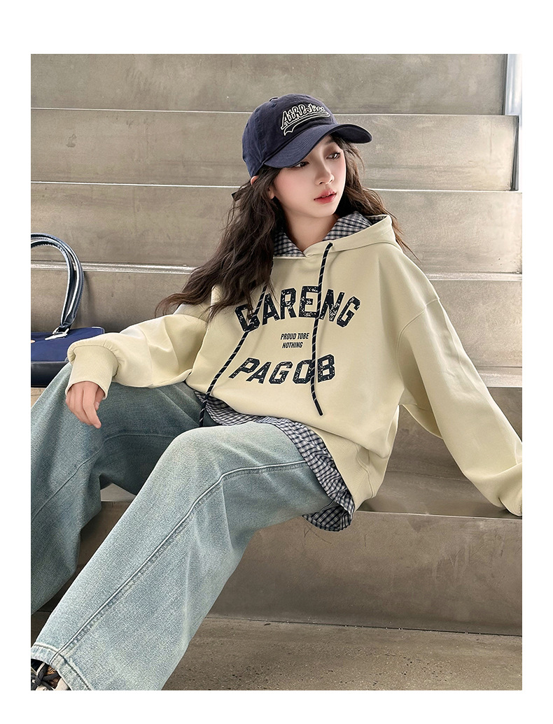 여자 후드 스웨터 봄 2025 새로운 스타일 한국 스타일 가짜 중학생을위한 2 피스 탑 유행 옷스토어 가기