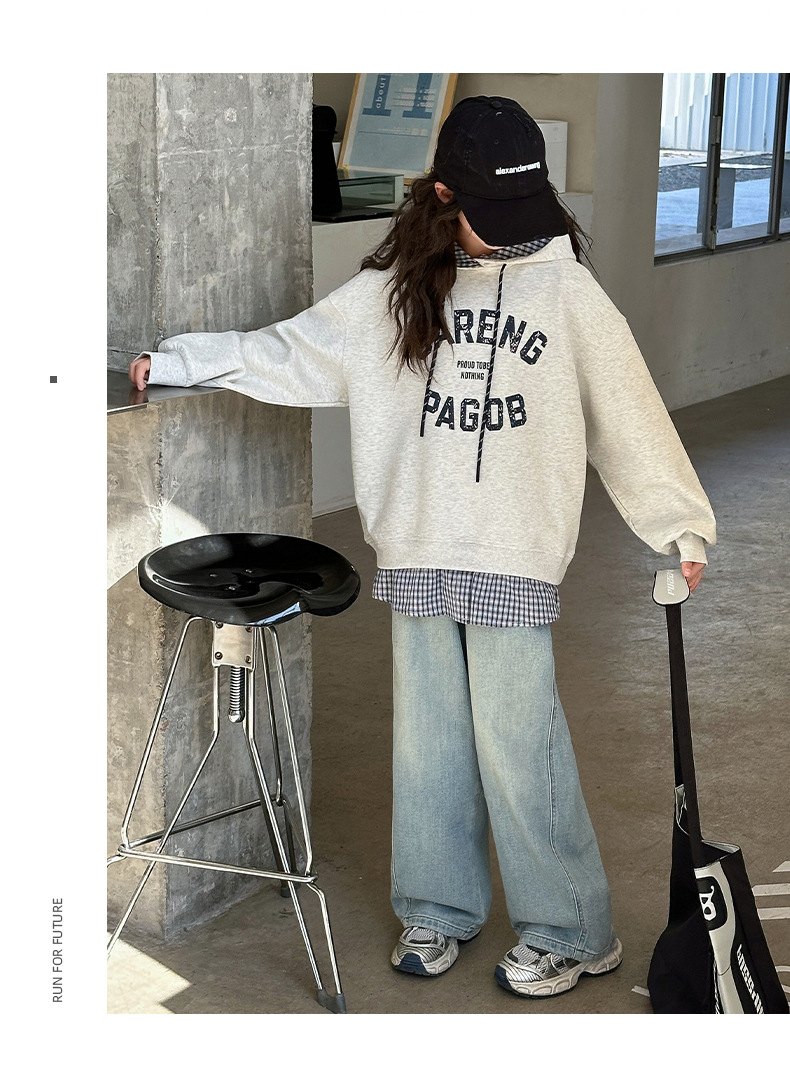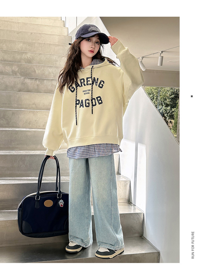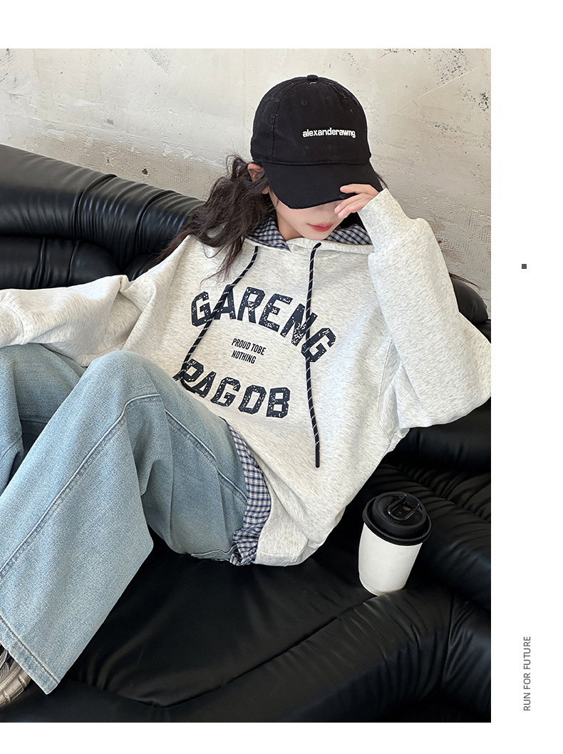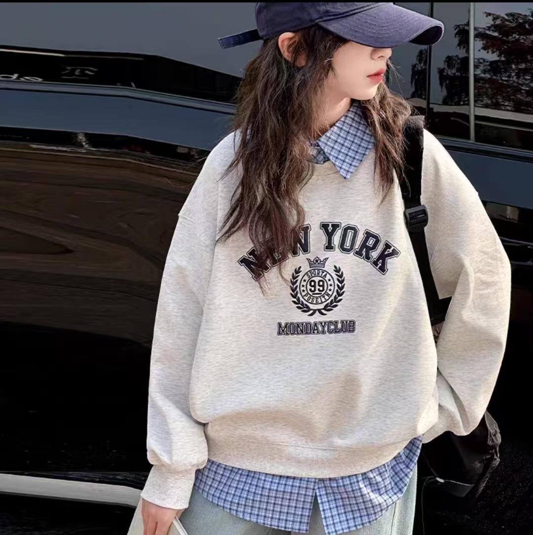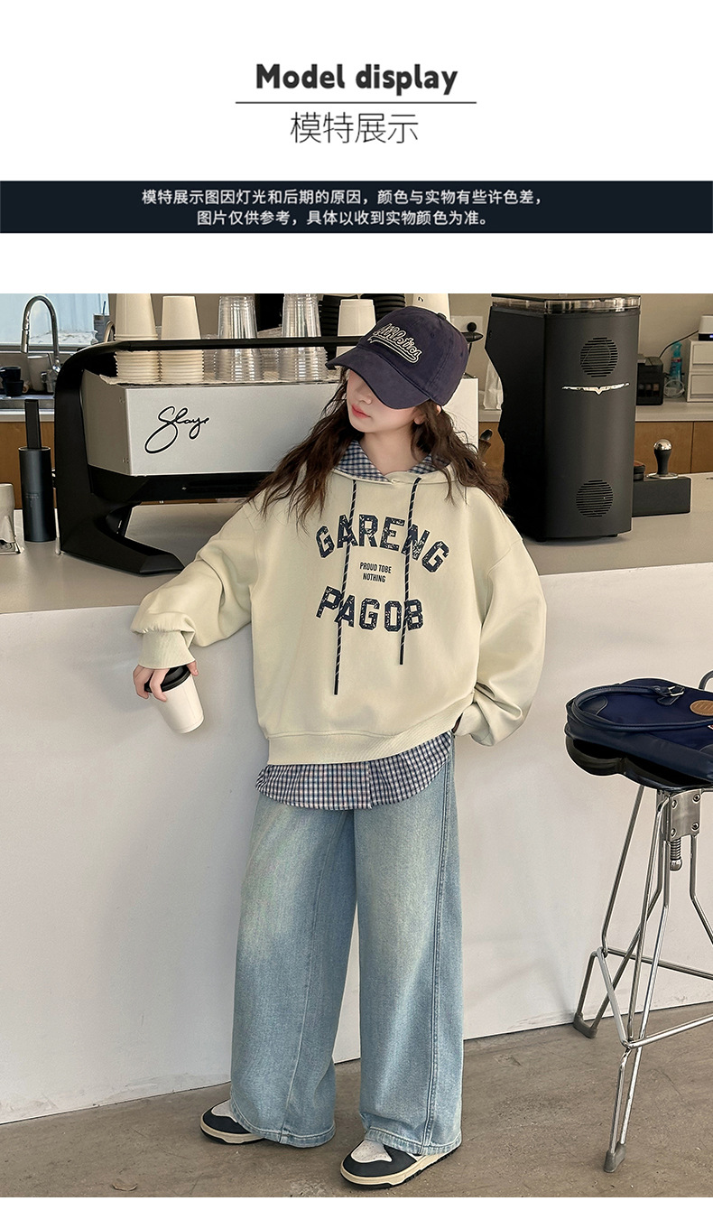 여자 후드 스웨터 봄 2025 새로운 스타일 한국 스타일 가짜 중학생을위한 2 피스 탑 유행 옷스토어 가기