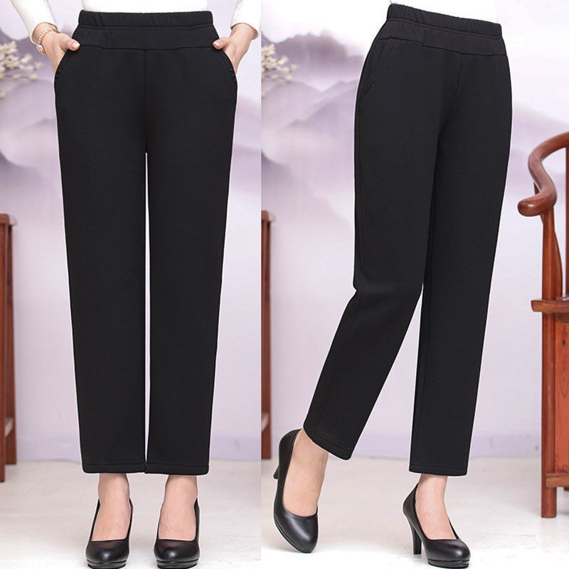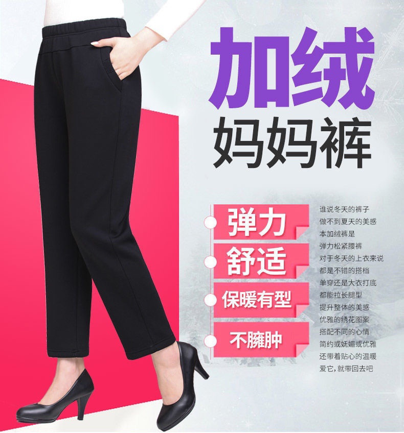 중년 및 노인 여성 바지 겨울 어머니 바지 기모 두꺼운 따뜻한 느슨한 스트레이트 캐주얼 노인 노인 바지스토어 가기