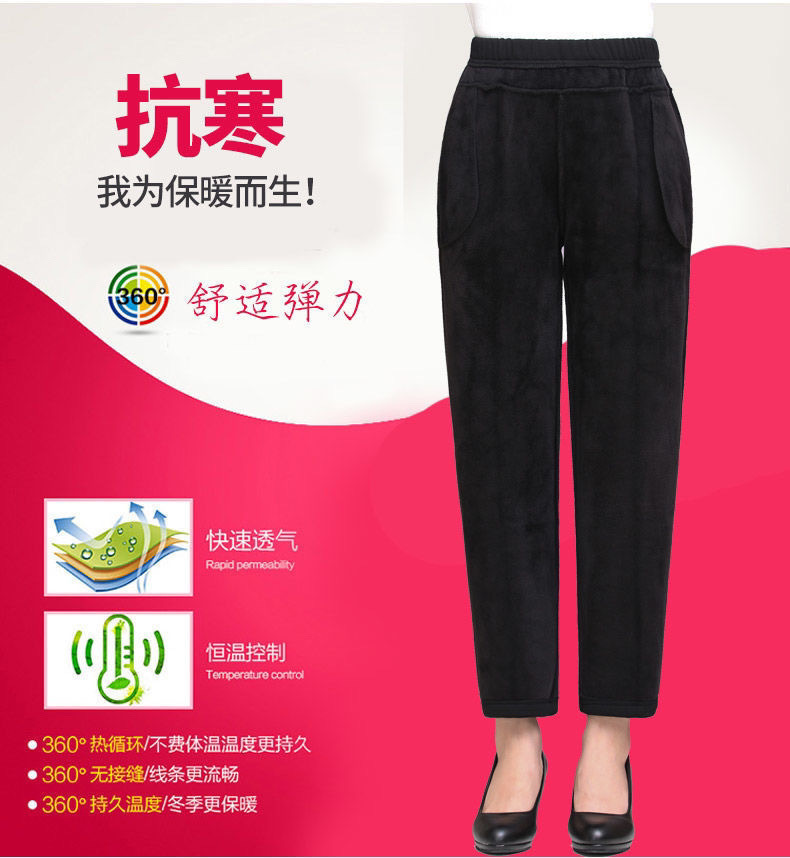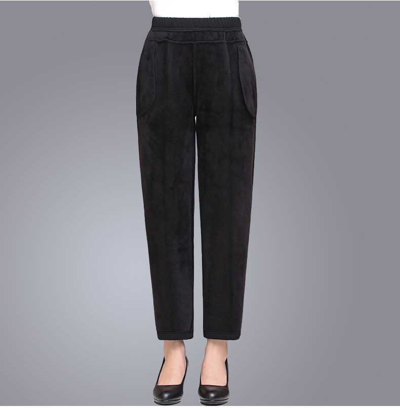 중년 및 노인 여성 바지 겨울 어머니 바지 기모 두꺼운 따뜻한 느슨한 스트레이트 캐주얼 노인 노인 바지