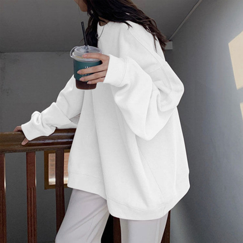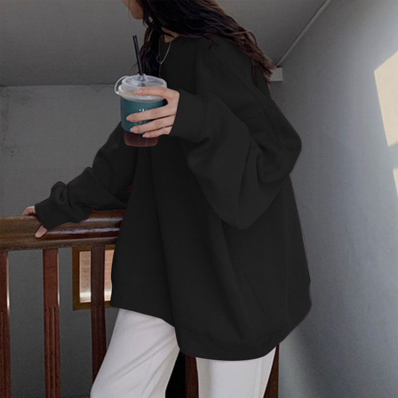 오버 사이즈 300kg 오버 사이즈 스웨터 여성 봄과 가을 한국 버전의 후드리스 얇은 지방 mm260 코트 느슨한 탑