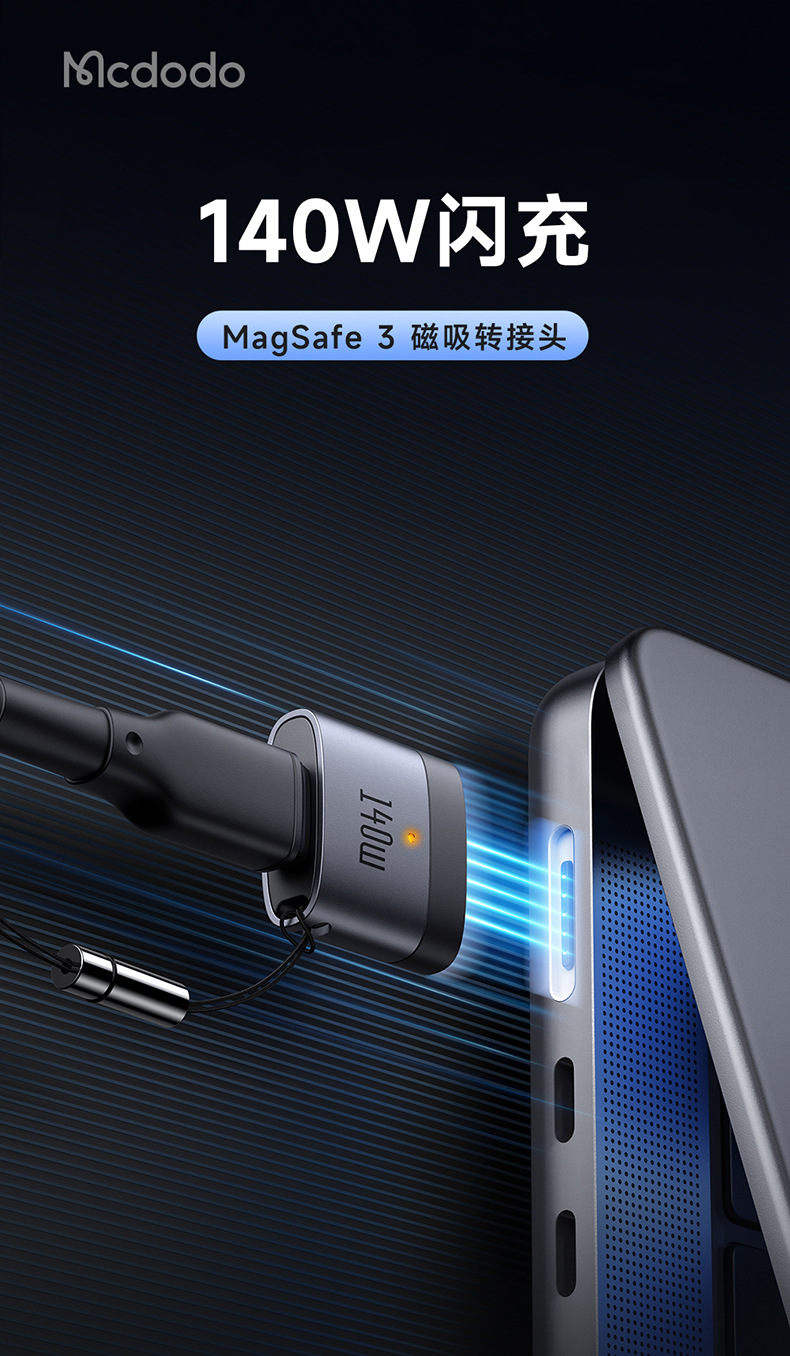 3. 140W 快速充电适用于 16 英寸 MacBook Pro(2021、2023、2024),并兼容 MacBook Pro 14 英寸和 MacBook Air 等 MagSafe 3 设备
