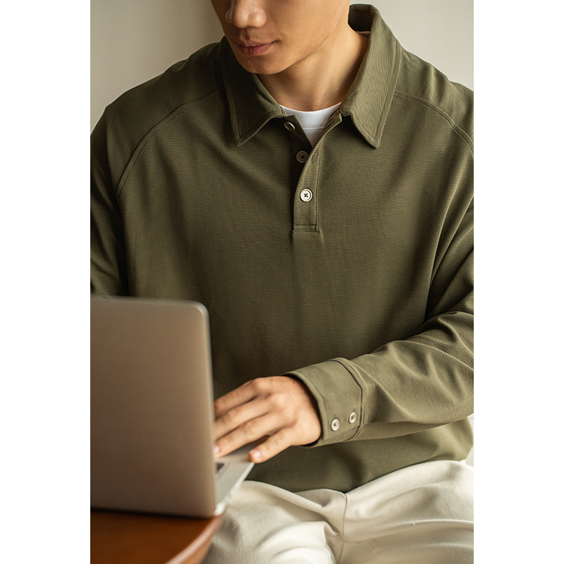 가벼운 사업 무거운 폴로 셔츠 남자 2025 봄 새로운 스포츠 통근 긴 소매 티셔츠 캐주얼 랩베이스 셔츠스토어 가기
